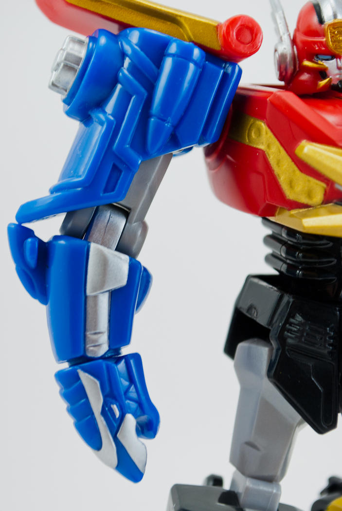 Bandai of America's line of articulated, 6-inch Megazords continues into 2013 with the release of the Gosei Great and Gosei Grand Megazords. While not officially packaged as 'Retrofire' figures, these two possess the stylized design and high articulation of previous releases in the line. The Gosei Great Megazord stands about 6 inches tall and has 20 points of articulation including 5 in each arm, 4 in each leg, a waist that can turn 360 degrees, and a ball-jointed head. There is a lot of sculpted detail on the figure and only some parts lack paint applications. Gosei Great comes with it's signature sword that can be held in either hand. Overall, this mini Gosei Great is a grand figure that takes the retrofire formula from figures past and improves upon it.