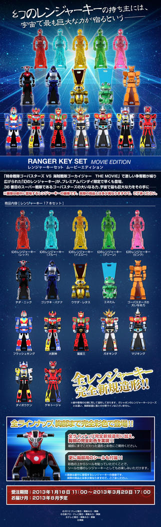 Potentially the last entry in the fan-favorite Ranger Key collector line, Bandai's Premium Web Page will soon be taking orders for a set of Keys featured prominently in the "Gokaiger VS Go-Busters" movie opening this weekend.