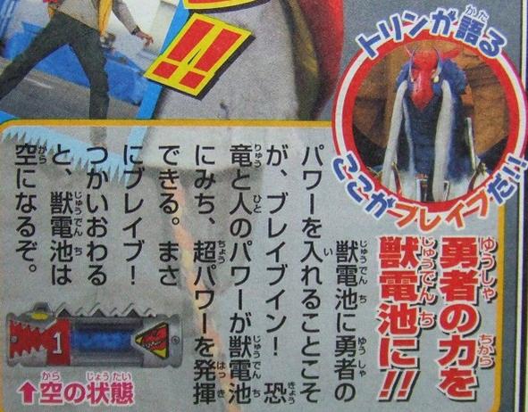 -In Ancient Times, the Ankokushuu Deibos (Darkness Species Deibos) landed on Earth. Those who fought against it at the time were the actual Dinosaurs! The Kyoryugers' mentor (Wise God Torin) chose 10 of these dinosaur protectors and crafted mechanical bodies to preserve them in. This confirms that Kyoryuger will features at least 10 individual dino mecha,and only 6 have been revealed so far! -These mechanical dinosaurs are known as the Zyudenryu! Deibos was defeated by the Zyudenryu and cast into the ocean, frozen in ice. -In the present, the Deibos are trying to revive the being they were created from, Master Deibos. Their plan involves taking the souls of humans, and offering them up to Deibos. -To stop the Deibos, Torin selects 5 modern humans as champions. They will be known as Kyou (strong) ryu (dino/dragon) Sha(person), the Kyouryuger! These chosen warriors are pitted against the dinosaur mecha Torin created, the Zyudenryu. If they win their battles they are bonded with their Zyudenryu and become Kyoryugers! On top of this information AlphaHeroShock has also posted extensive magazine scans of the Kyoryugers! Enjoy!