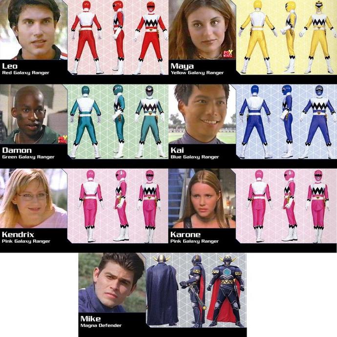 SENTAI: Seijuu Sentai Gingaman MAIN CAST Leo Corbett (Red Ranger): Danny Slavin Kai Chen (Blue Ranger): Archie Kao Damon Hendersen (Green Ranger): Reggie Rolle Maya (Yellow Ranger): Cerina Vincent Kendrix Morgan (Pink Ranger #1): Valerie Vernon Karone (Pink Ranger #2): Melody Perkins Mike Corbett (Magna Defender): Russell Lawrence Trakeena: Amy Miller SUPPORTING CAST Commander Stanton: Tom Whyte Bulk: Paul Schrier Professor Phenomenous: Jack Banning SPECIAL GUEST STARS Skull: Jason Narvy Andros: Christopher Khaymen Lee TJ: Selwyn Ward Carlos: Roger Velasco Ashley: Tracy Lynn Cruz Cassie: Patricia Ja Lee VOICE CAST Scorpius - Kim Strauss Deviot - Ed Neil Magna Defender #1 voice - Kerrigan Mahan Villamax - David Lodge Zords Lion Galactabeast Gorilla Galactabeast Condor Galactabeast Wolf Galactabeast Wildcat Galactabeast The above five combine together to form THE GALAXY MEGAZORD! Torozord - combines with Magna Defender to become the The Defender Torozord! The Phoenix Galactabeast becomes the Stratoforce Megazord! The Rhino Galactabeast becomes the Centaurus Megazord! The Shark Galactabeast becomes the Zenith Carrier Zord, which carries the Centaurus Megazord as well as the Stratoforce Megazord! BRIEF STORY RECAP: Through the joys of being a rebellious youth, Leo Corbett is able to get aboard Terra Venture, a traveling space station set out to explore the vast reaches of the galaxy and maybe, just maybe, find a new place for humanity to live. Because being a rebellious youth always leads you to random adventures, Leo finds himself on a distant planet in a distant galaxy ... the planet Miranoi, to assist alien-that-looks-human Maya against the invasion of Scorpius ... along with his brother Mike and the member of the science team, Kendrix. Kai and Damon arrive later ... in the Astro Megaship, which had been serving as a museum on Earth. Through fate - Mike, Kendrix, Kai, Maya, and Damon pull the mysterious Quasar Sabers, which grant whomever pulls them immense power to defeat evil. If you can pull the sword it is because you were destined to - until Mike shatters that thought by falling in to a crevasse, giving his Quasar Saber to Leo, who then, along with the others, use them to morph in to the Power Rangers of the Lost Galaxy! Later, Scorpius is looking for the Lights of Orion, an object(s) that can grant immense power. The only thing between him and the power? The mysterious Magna Defender ... and the Power Rangers too, but they seem to arrive late to the show. But who is the Magna Defender? What is his big deal and why is he both an ally and an enemy to the Power Rangers? You'll have to watch the show for that spoiler! The biggest and most talked-about point of the series is the return of the Psycho Rangers, the villains who tormented the Power Rangers In Space in the previous season. Trakeena manages to unleash the Psycho Rangers once again and the Lost Galaxy Rangers are no match. They fall, one by one, until Leo is saved ... by the Red Space Ranger?! Andros returns to lend Leo and the Magna Defender a helping hand in saving their friends. When the going gets rough, the rough have friends who break in to a flying museum and steal their morphers, as TJ, Cassie, Carlos, and Ashley return to help the Galaxy Rangers! The Power Rangers are victorious ... except Psycho Pink has managed to survive, and attacks the two Pink Rangers with a fury. In the ultimate sacrifice, Kendrix, the Pink Galaxy Ranger, sacrifices her life to save the Pink Space Ranger Cassie, and the Galaxy Rangers are down to four (plus the Magna Defender). To top it off, the Quasar Saber took off when Kendrix died, so like good friends, the Space Rangers take this time to leave (!??!). The Quasar Saber shows up at an auction ... and is purchased by ASTRONEMA?!?! Except it's really Karone, the good girl version of Astronema, and the sister of the Red Space Ranger Andros! Because she's awesome, she saves the day and is given the power of the Pink Galaxy Ranger. There's even more adventures after that, including an actual adventure IN TO the Lost Galaxy where the Power Rangers face Captain Mutiny! The Red Galaxy Ranger receives his Battleizer, and the final battle with Trakeena takes place! You can catch Power Rangers Lost Galaxy airing on The Vortexx, as an entire series on Netflix Streaming, or you can be a good patron and purchase From MMPR to Lost Galaxy via TimeLife.com! FUN FACTS: - Hoping to capture the same magic that was captured with Power Rangers In Space, Saban chose to make Lost Galaxy a space-themed show as well. - The Magna Defender morpher is actually a retooled Diaranger Aurachanger (which is from Dairanger, the series that brought us the White Mighty Morphin Power Ranger but none of the other Ranger suits) - Valerine Vernon had to cease production after it was discovered she had leukemia - Patricia Ja Lee was reportedly to become the new Pink Galaxy Ranger, but due to contractual disputes, Melody Perkins returned to fill that role. There are rumors that there is an actual episode that was filmed of Patricia Ja Lee as the Pink Galaxy Ranger, but no evidence (other than testimonials) have ever surfaced - Lost Galaxy was one of the most expensive Power Rangers series ever produced - Reggie Rolle and Amy Miller went on to get married off-screen, becoming the first (and only) married Power Rangers couple (the Green Ranger married a bug, yikes!) - Kickback hated the "orchestrated" music that this series played, and missed the more "rock" melodies of previous series