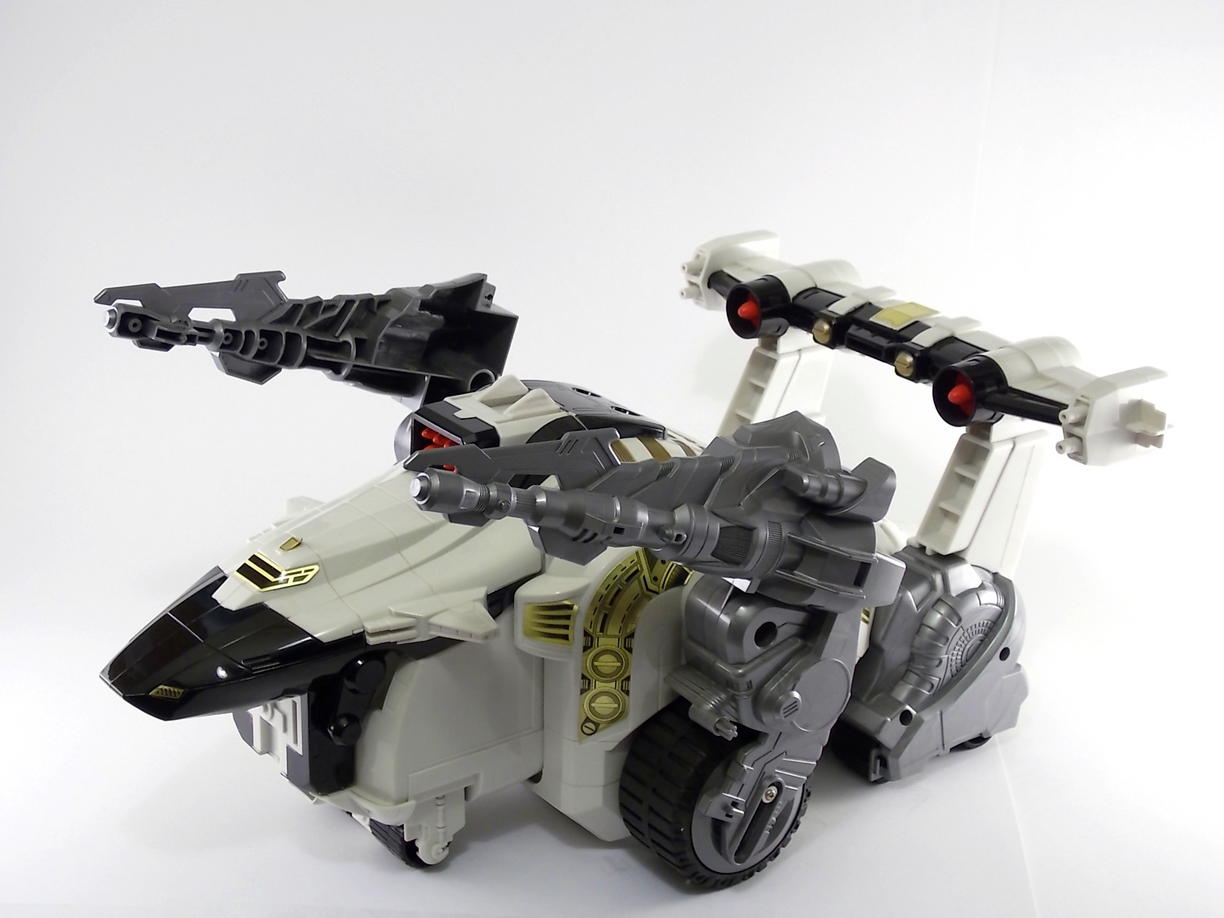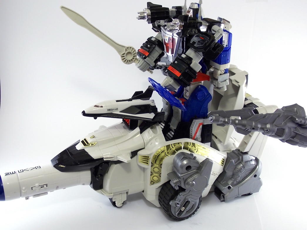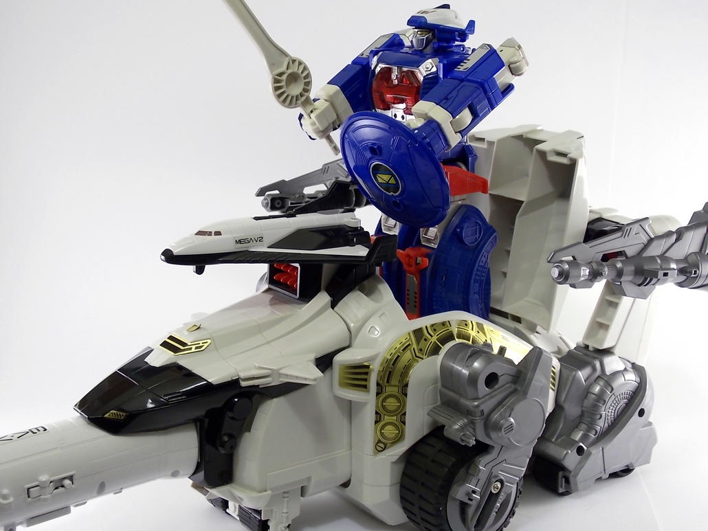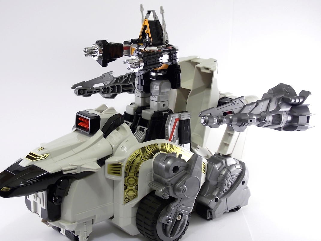 Tokunation.com is back with it's final tribute to Power Rangers In Space and this time it's a big one! Today we have a complete gallery the DX Silver Titanus figure, a rare piece that came out at the tail end of the In Space toyline. Rumor has it that Silver Titanus was originally meant to have a brief appearance in the shows final 2 episodes, Countdown to Destruction, for the epic final battle! It only has 2 official combinations, one with the Mega Winger, and one with the standard non-winged Mega Voyager. The others pictured here are just there for fun.