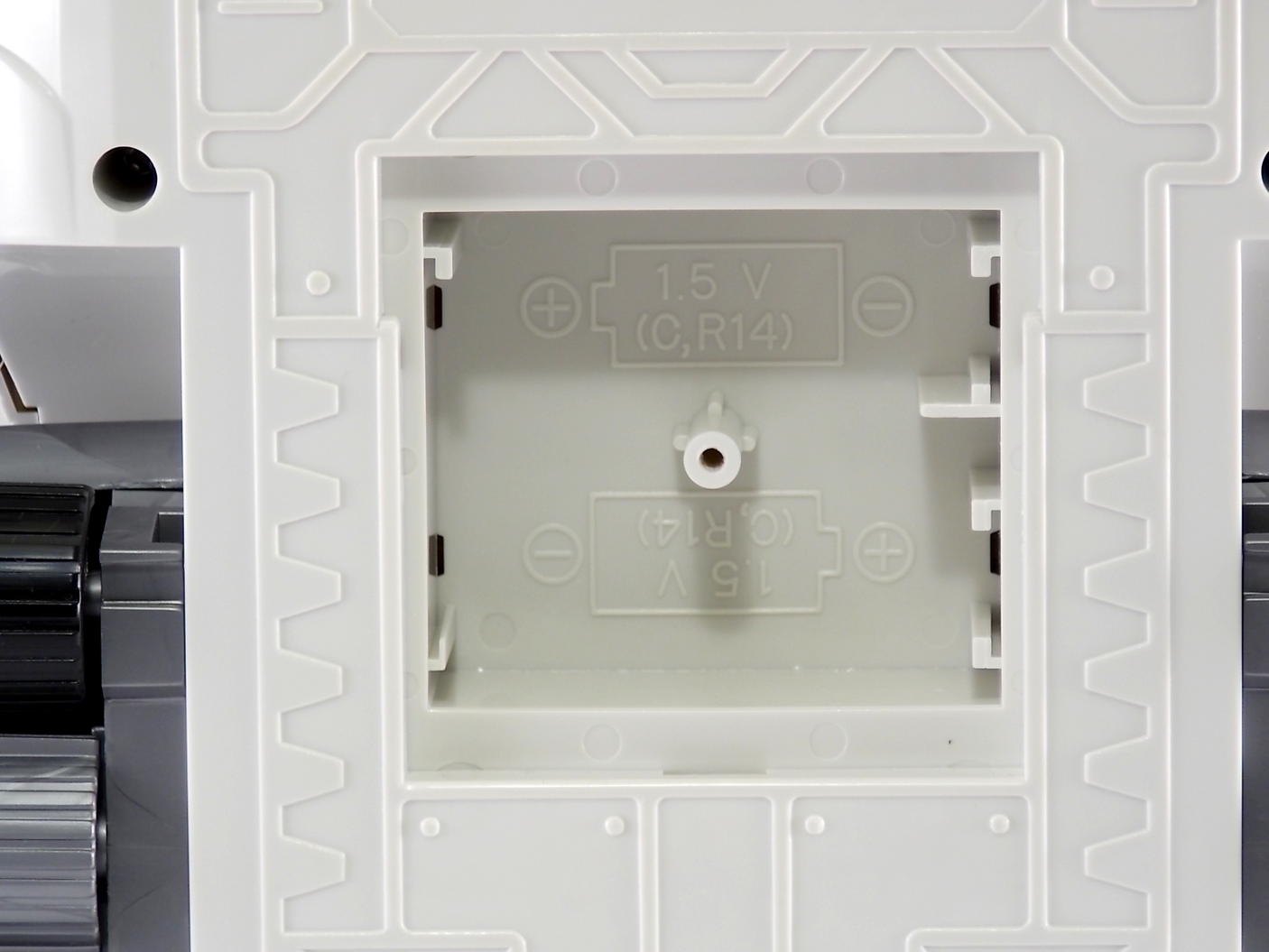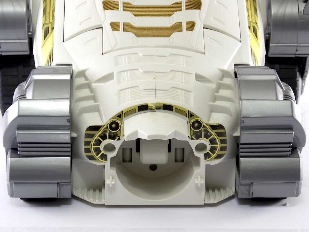 What's even more interesting that you may not know is that Silver Titanus was designed by PLEX! Yes that's right PLEX, the Japanese group responsible for designing nearly everything in Super Sentai from ranger suits to mecha to changers, designed this bad boy. We've included a scan from a PLEX design book released in 2001 that showcases their original line art for Silver Titanus as well. Silver Titanus is a heavy repaint/remold of the original DX King Brachion (AKA Titanus) figure from Kyoryu Sentai Zyuranger. Some of the accessories from each are even capable of being swapped between the 2, and though the electronics have been removed from this release there is still an accessible battery compartment.