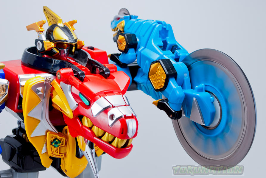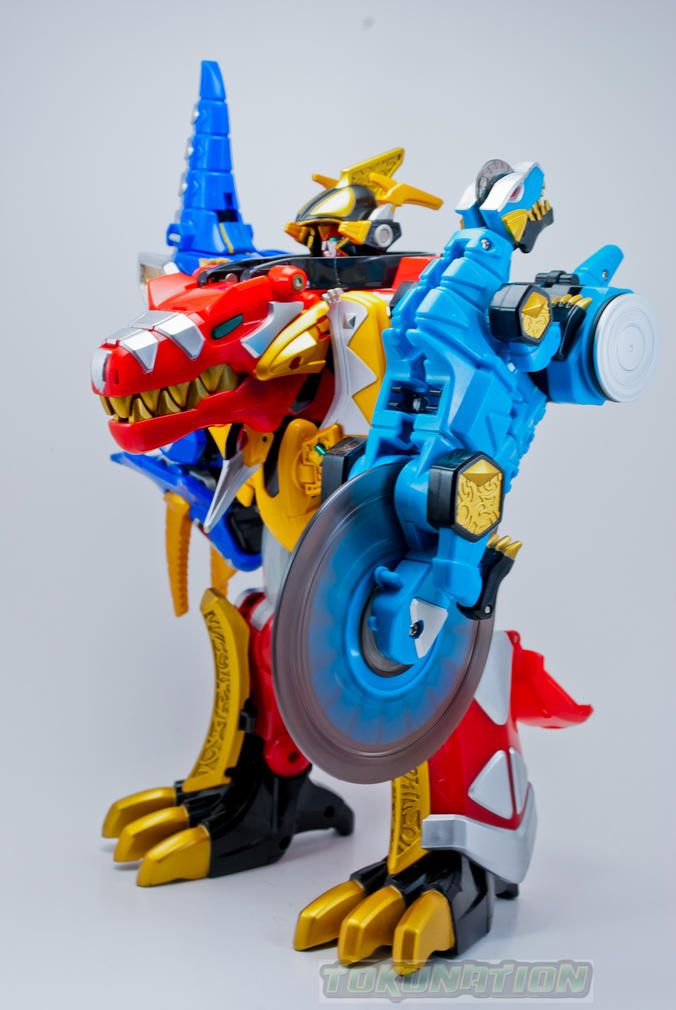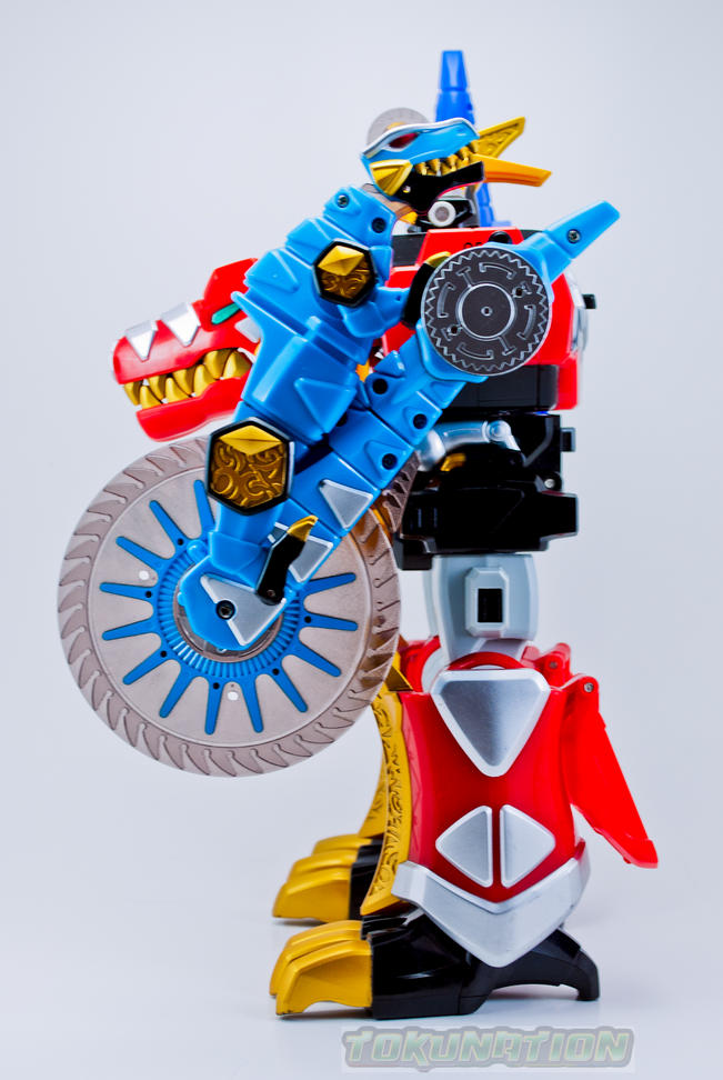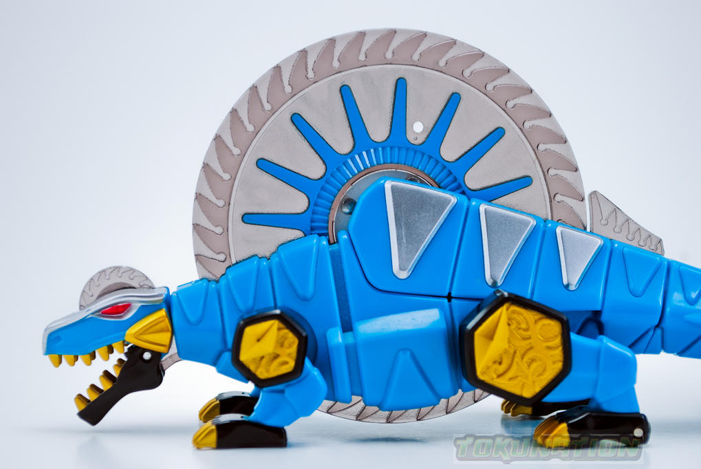 The Dimetrozord is one of five auxiliary zords used in Dino Thunder that can be summoned by either the Black Ranger or the Triassic Ranger. This zord can replace the Tyranno Drill arm and allows the Thundersaurus Megazord to perform the Dimetro Saw Blade finishing move. The Dimetrozord also forms the inner right leg of the Triceramax Megazord. The deluxe figure is approximately 8 inches long and has a spinning 'saw blade' gimmick that runs on the motor in the Tyrannozord. The U.S. release of the Dimetrozord was packaged with the Dx Dino Stegazord. Check out the 10 image gallery after the jump! Want TokuNation.com updates on the go? "Like" us on Facebook and follow us @tokunation on Twitter!! Last edited by conundrum; 07-08-2013 at 08:58 PM.. |