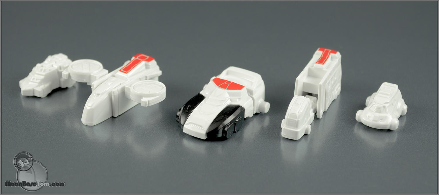 Choukyodai Kidou! Here's a gallery of the Dekabase candy-toy kit from Tokusou Sentai Dekaranger. Similar to the Grandliner kit, the Dekbase came with miniature Dekamachines. Unlike the Grandliner miniatures, the ones from the Dekabse could actually combine into a mini Dekarobo!