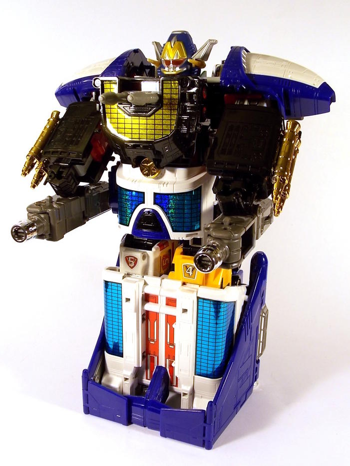 Liner boy, or Max Liner/Max Shuttle as it's known in it's vehicle modes, is an independent robo that unlike it's US counterpart (Max Solarzord) did not require a pilot thanks to an onboard AI. In fact there was no 6th ranger in GoGoV either, so far the only sentai not to introduce a new member within the series since Zyuranger! But the existence of this mecha in GoGoV and it's lack of a pilot spawned the Titanium Ranger here in the US, thus the footage of this machine was adapted to make it appear to be his personal zord. Liner Boy also features a combo with the Victory Robo known as the Max Victory Robo known under the name Lightspeed Solarzord in the US! Want TokuNation.com updates on the go? "Like" us on Facebook and follow us @tokunation on Twitter!!