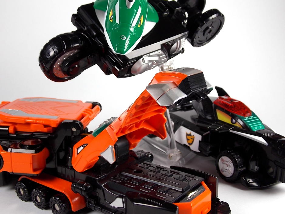 I like Birca/the Tail Spinner. There's just something I like about three wheeled vehicles not being exclusive to young children. Now if only I could get light up sneakers in a size 12 I'd be set! I love this set myself. It may not be the most proportionally pleasing robo to look at but it's fun and bulky. Carrygator is the best part of it and I feel these 3 have slightly more personality than Speedor, Buson, and BeaRV.