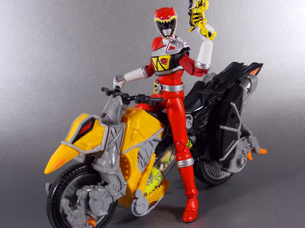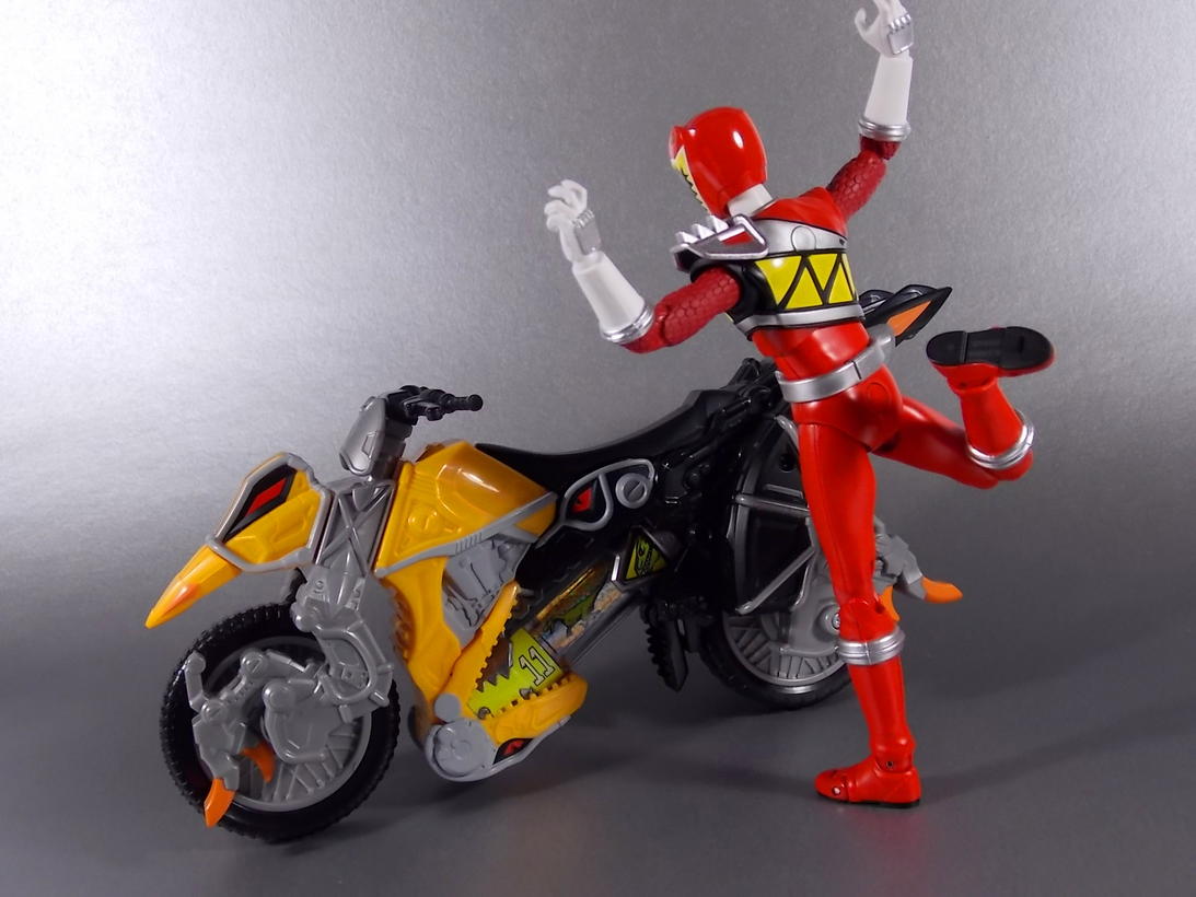 The first S.H. Figuart from Zyuden Sentai Kyoryuger is out and it's time to brave in! Kyoryu Red is the first of at least the 6 main Kyoryugers slated for release. So far he's the only one that's a mass retail release as well. Daigo includes his GabuRevolver, GaburiCalibur, 1 generic Zyudenchi, his Armed On arm and Gabutyra Fang, as well as 3 extra sets of hands. Perhaps the only downside of this figure is that it does not include a combined GaburiCannon nor can the Revolver & Calibur be combined to form it. This figure also happens to be very compatible with Bandai's previously released Deinochaser & Kyoryu Red "DX" set. The Chaser is in almost perfect scale with SHF Kyoryu Red making for some great display options, especially since there is no Figuarts equivalent of this bike currently. Want TokuNation.com updates on the go? "Like" us on Facebook and follow us @tokunation on Twitter!!