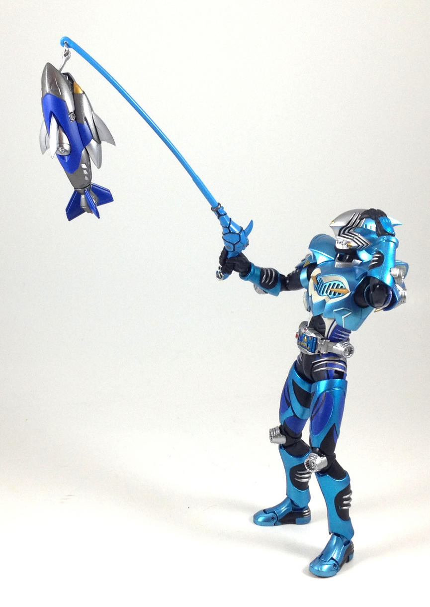And as I said, I took some silly pictures of Abyss using every blue weapon or accessory I had at my easy disposal. Except Kuuga's Dragon Staff, I forgot to use that one.