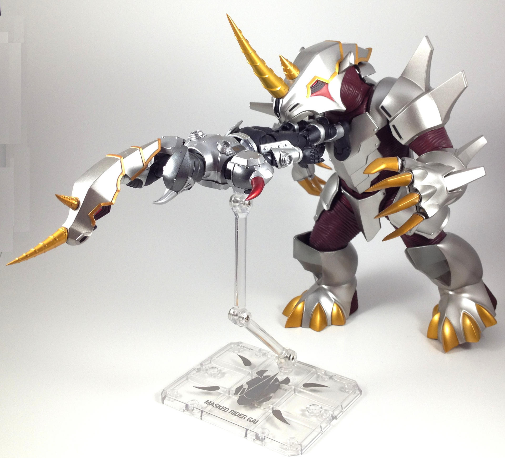 Ah, SH Figuarts Kamen Rider Gai. The most elusive of the Ryuki Figuarts. A Tamashii Web exclusive, and apparently the one with the lowest production numbers, Gai commands an unbelievably high price on the aftermarket.