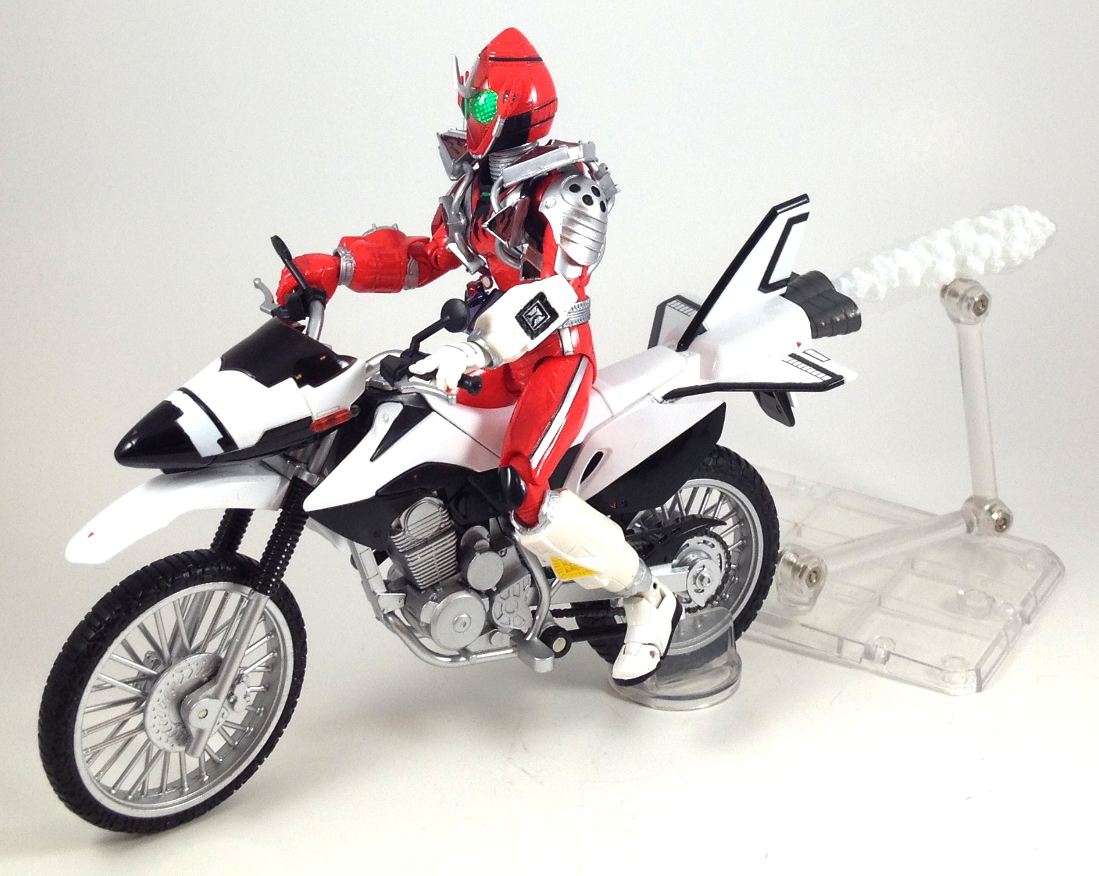 The Fourze Effects Set contains a drill effect, Elek States and Fire States themed Tamashii Act 4 stages bases, three Act 4 stage arms, a smoke effect base, 2 electricity effects, and a flame effect. I would have liked another fire effect of any kind, but what we get is great.