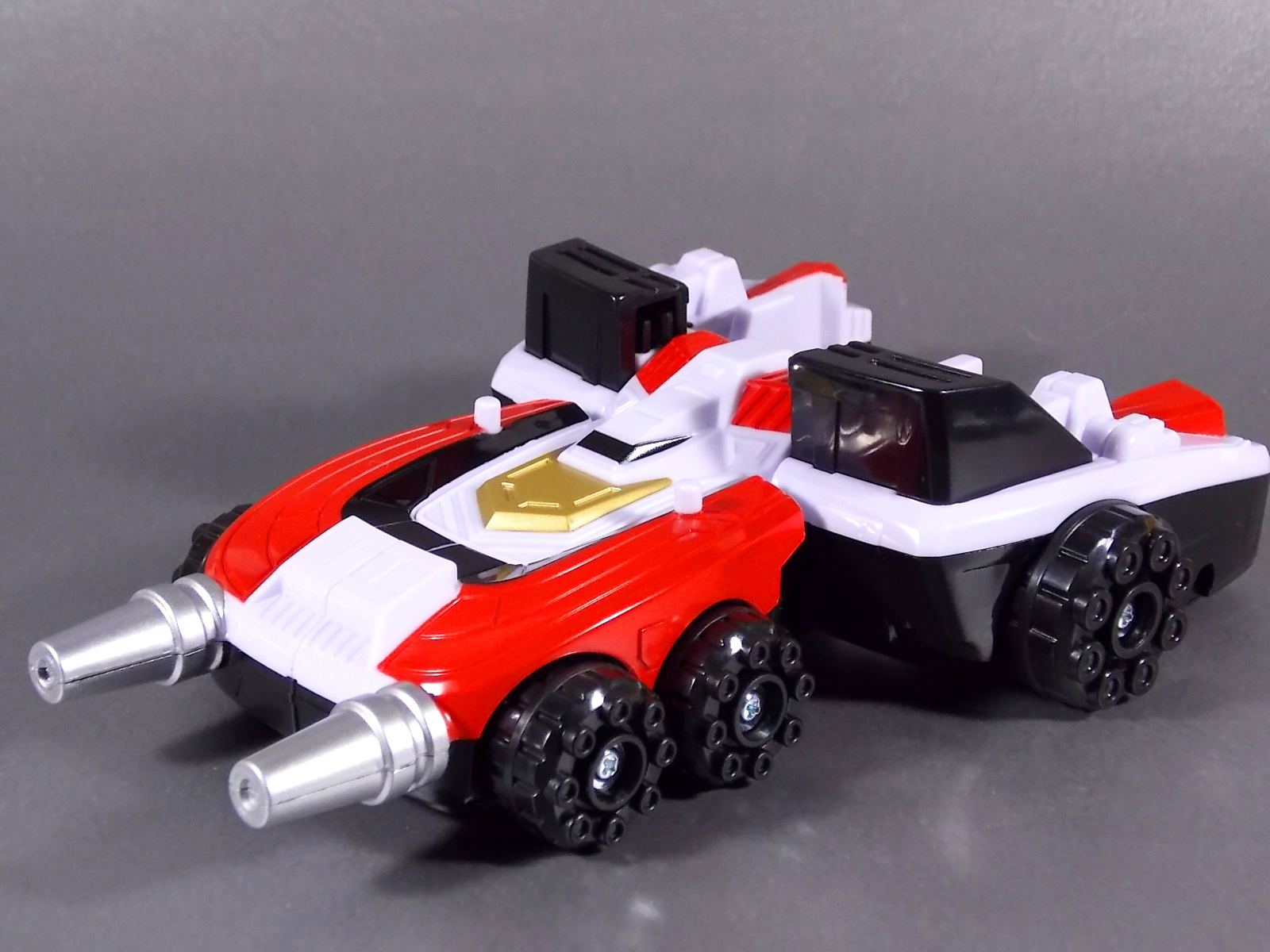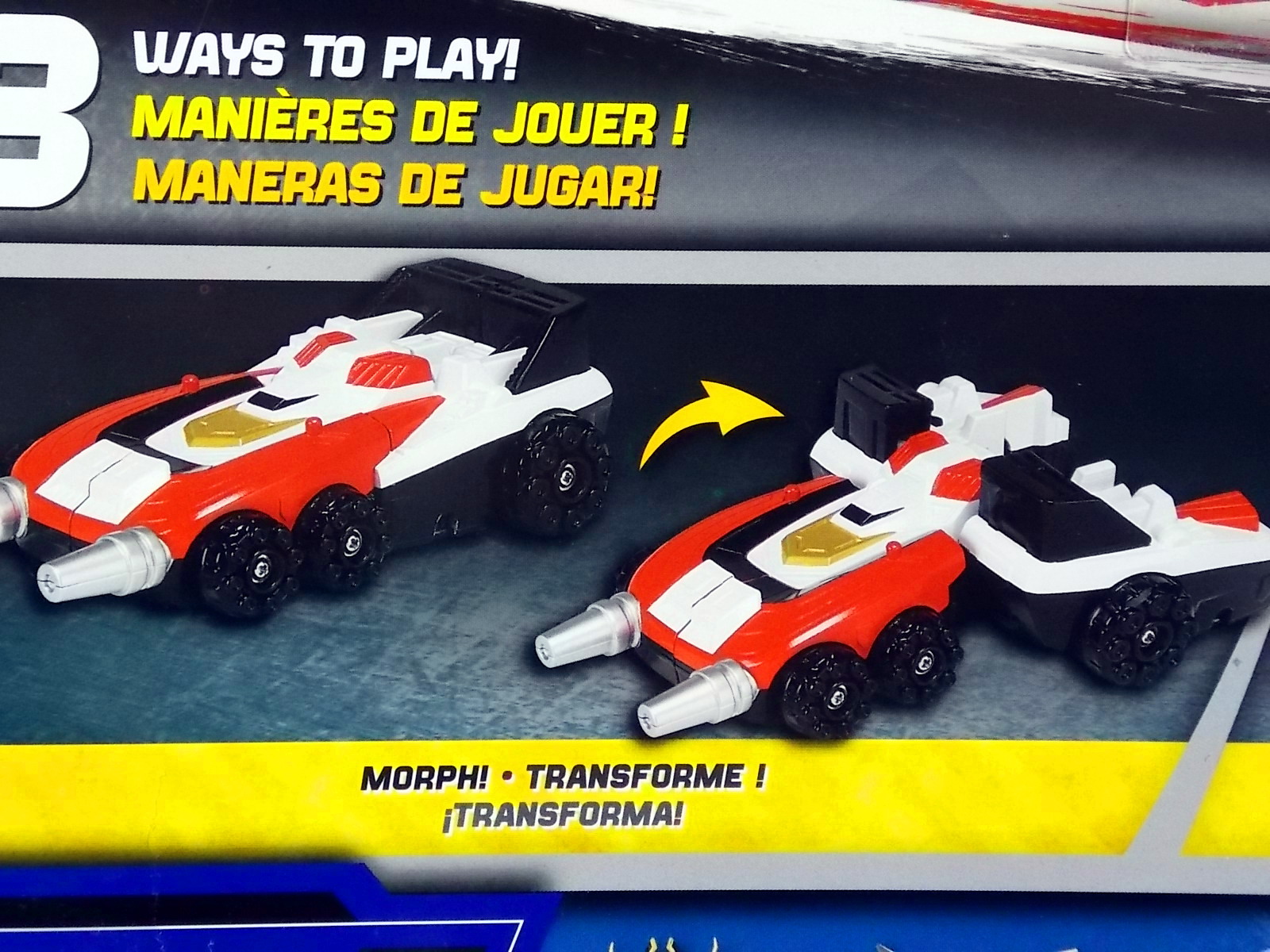Tokunation is back with another gallery from Power Rangers Super Megaforce! And today we're looking at the Delta Runner Zord! The Delta Runner is a Bandai of America interpretation of the Pat Striker from Kaizoku Sentai Gokaiger. Itself an homage to the original Pat Striker from Tokusou Sentai Dekaranger. Bearing in mind that Dekaranger was adapted for the US as Power Rangers SPD that's what the BOA version of the toy represents. The box itself even features the logo of SPD. The Delta Runner is a slightly upscaled version of the Pat Striker. However what it makes up for in size, it loses in paint applications. Most of the identifying features of the Pat Striker get lost in the transition. Both SPD logos, the Gokaiger crest, the painted wheels, and the Gokai colors on the hood. Also removed are the electronic lights & sounds. To add play value for these removed features the Delta Runner features the popular Zord Builder system. Though the vehicle only has two male Zord Builder pegs it has a grand total of 10 female connectors through out, allowing for a bit of mix and match play with other compatible sets. A by product of these ports is an official yet unnamed mode for the vehicle. A "battle station" mode which sees the car rearranged into a missile firing turret. Included with the Delta Runner are 2 missiles, neither of which can be stored when not in use. As pressure launch weapons they require you to use the included SPD Red Ranger Key in the slot on the back of the turret to "activate" the firing mechanism. Also included is a mini-figure of the Super Mega Blue Ranger. This mostly single colored figure is solid PVC and features no articulation. But just as with the Super Mega Green Ranger included with Mystic Dragon, it can peg onto the vehicle for added play. To combine with the Legendary Megazord this figure splits into 5 parts just as the Pat Striker did. However since the BOA line does not feature the opening compartment gimmick, these parts cannot be stored inside the Legendary Megazord when not in use. On the BOJ release all 5 compartments can be closed to hide the entire combo. But here, the Legendary Megazord's chest isn't deep enough to even allow for it to be concealed. The chest piece itself has no locking mechanism whatsoever, and actually tends to fall out all on it's own. It should also be noted that nowhere on any packaging at all is this combination given an official title, just like the one with Mystic Dragon. Considering it's Japanese counterpart is known as Deka Gokai Oh, it's a safe placeholder to call this one the Delta Legendary Megazord. The other parts can be oriented in roughly the same place they would be on the actual mecha thanks to the numerous Zord Builder ports on the Legendary Megazord. And in fact the arms components can still be wielded as pistols. This figure attempts to be a cost effective alternative to it's BOJ counterpart and succeeds for the most part. Suffering only a bit from it's design. The most unfortunate part being that it doesn't have nearly enough male Zord Builder pegs to give it the play value it needs. Otherwise this is a pretty fun toy for $14.95. The Delta Runner used for this review was purchased at a Walmart in Lexington, Kentucky.