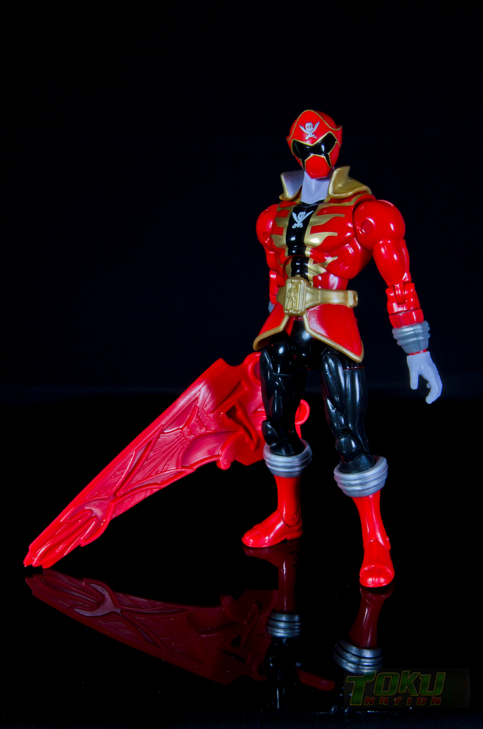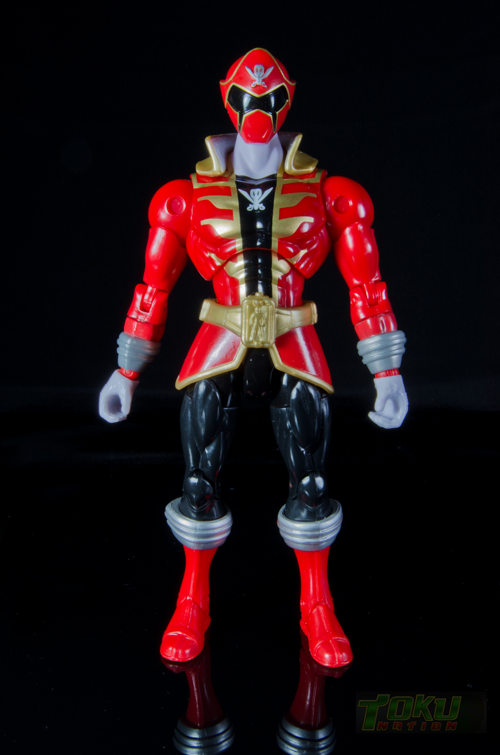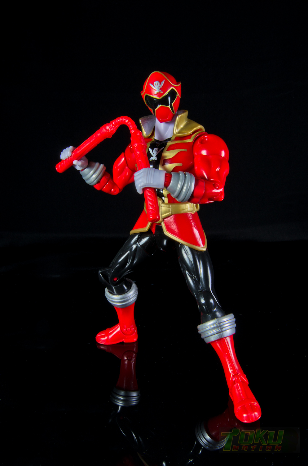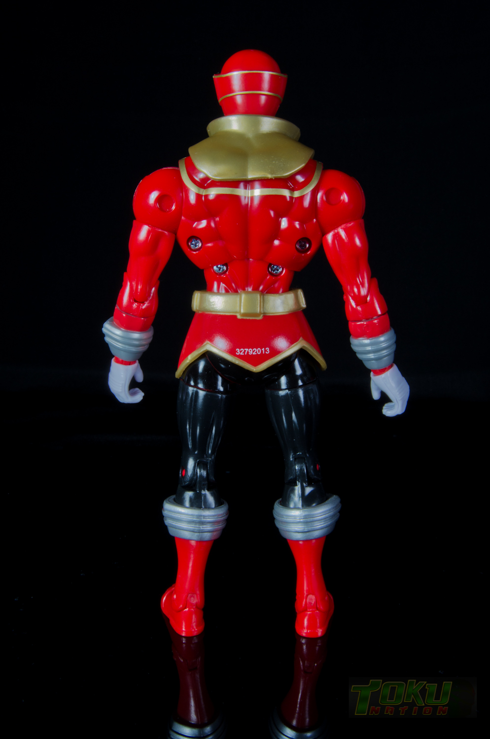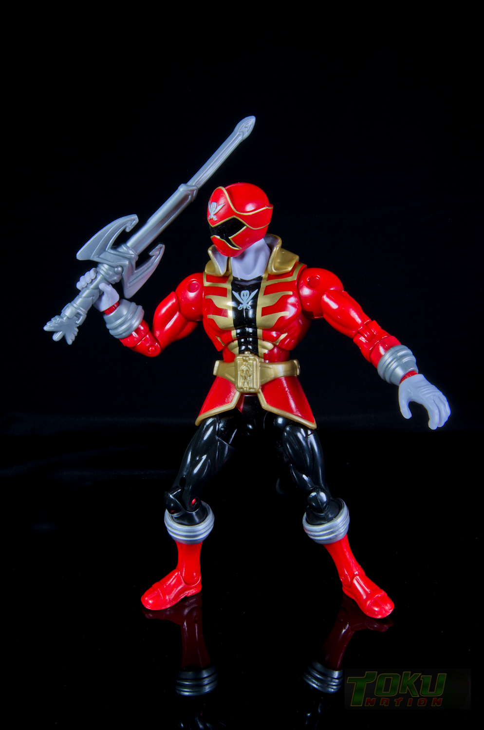Super Megaforce Red stands at approximately 7 inches tall and has 29 points of articulation. The figure uses the same male buck as the previous Armored Might releases but with the addition of new forearms, calves, head, removable collar, and coat-tails. The coat piece around the waist does have some give to it, but it does restrict the hip movement some. Note that previously released images of the figure show painted on coat-tails but the final product has a separately sculpted piece. Unlike previous releases in the Armored Might line, Super Megaforce Red does not really come with any, well, armor. Instead, he is packed to the hilt with 8 different weapons representing Red Rangers from 7 different seasons. Red comes with the following: Super Mega Blade, Super Mega Blaster, Zeo Sword, Red Lion Fang, Delta Blaster, Magi Staff, Jungle Chucks, and Fire Smasher. Each of the weapons have a lot of sculpted detail but only the Super Mega Saber and Super Mega Blaster have any kind of paint applications. Super Mega Red can hold most of the weapons just fine, but the Fire Smasher is almost too big. It may just be my figure, but the wrist/elbow of the right arm is too loose and cannot support the weight of the weapon. This is the 6th/7th time this figure mold has been used so we may be seeing the start of some quality issues. Super Mega Red is compatible with most of the armor pieces from previous releases in the line. His collar piece is easily removable to allow for different chest pieces to snap on. Due to the prominent cuff of the gloves and boots, the figure is not able to accommodate gauntlets or lower leg armor without swapping the limb out. Overall, Super Megaforce Red is another fun addition to the Armored Might line. The idea of including weapons of previous Red Rangers is genius, but they lack the necessary paint applications to really make them pop. |