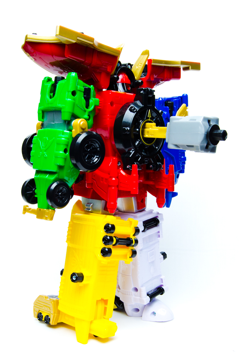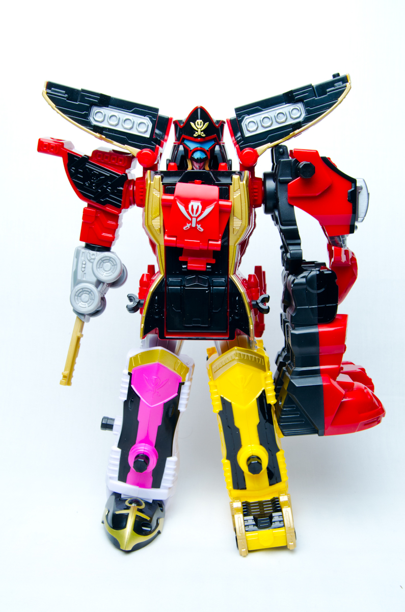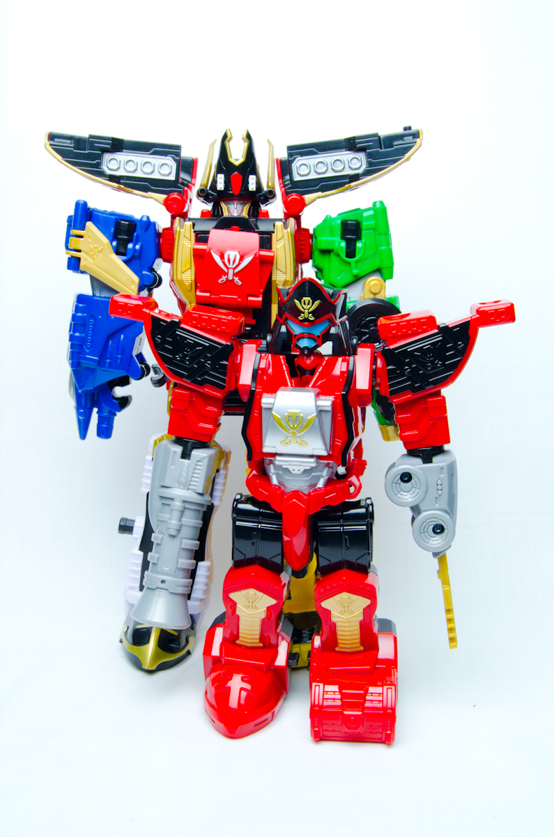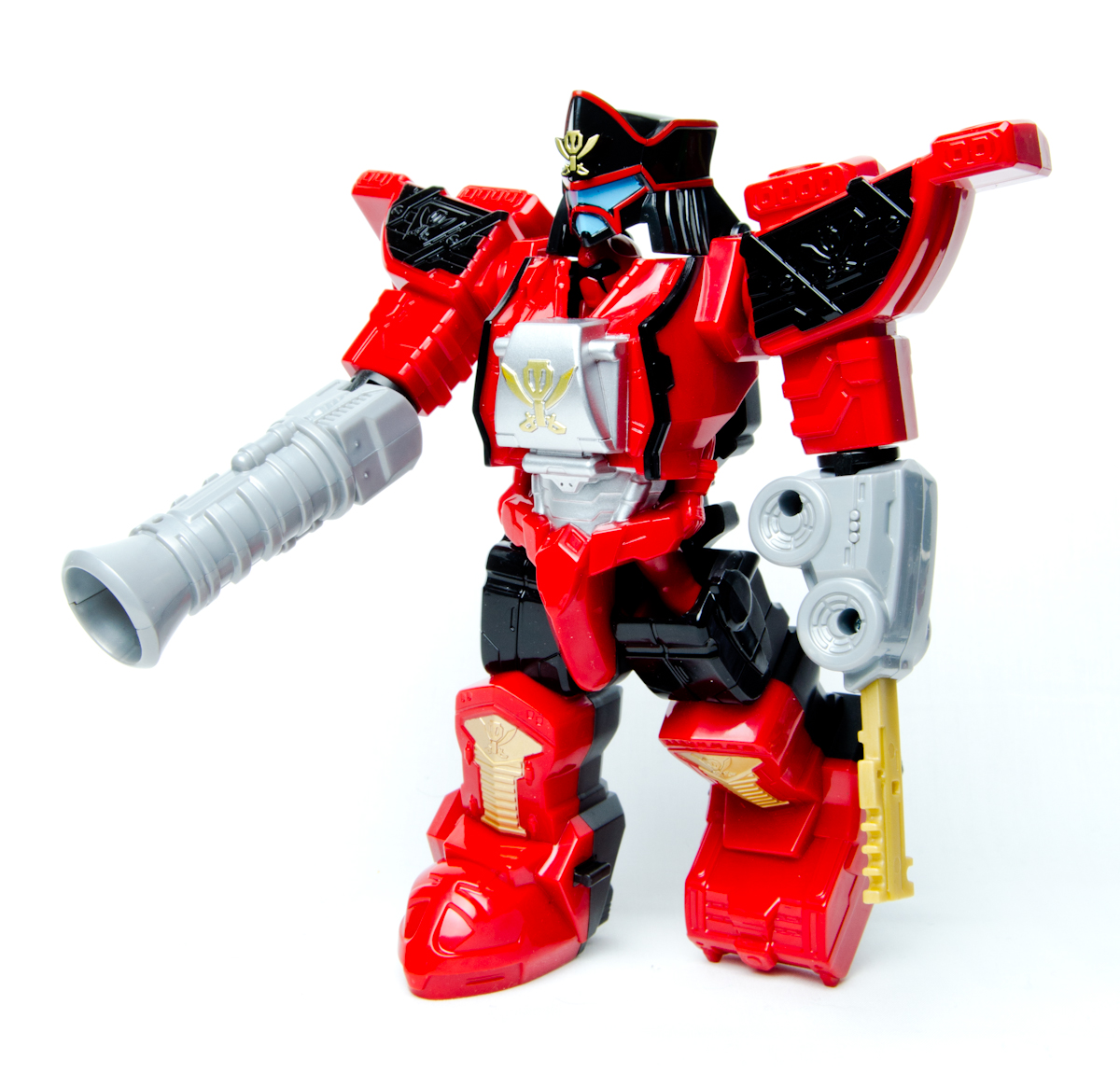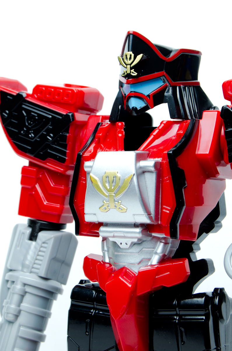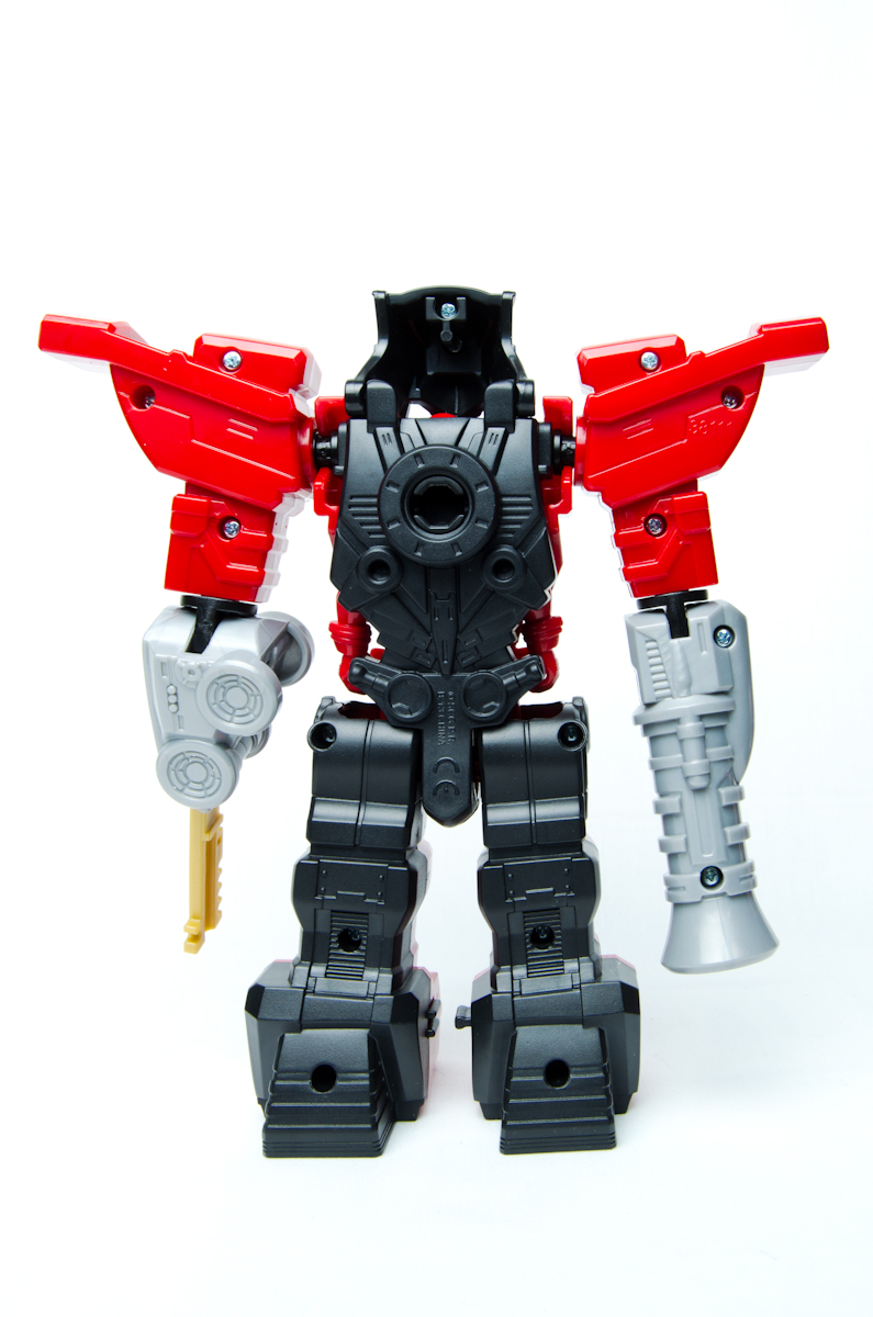 Today we're taking a look at the Deluxe Legendary Zord Armor Ranger set recently released with the Deluxe Gosei Great Zord Armor Ranger as part of the Power Rangers Super Megaforce toyline. This set is loosely based on the Legendary Megazord but has a more cohesive red, black, and silver color scheme. The Megazord has 8 limited points of articulation including 3 in each arm and 1 in each hip. As a part of the Zord Builder system, this Megazord has a total of 10 ports including 2 male connector pegs and 2 female ports on the torso, 1 male connector peg on each 'forearm weapon', 2 female ports in each shoulder piece, and 1 male connector peg in each hip. The set comes with a 4 inch Super Megaforce Red Ranger figure that is able to fit in and 'pilot' the Megazord. The Ranger figure has 4 points of articulation and a simplistic paint job on top of red plastic. The figure comes with no weapons. The right Cannon 'forearm' of the Zord Armor Megazord can be detached and placed in the chest of the DX Legendary Megazord. The left 'Key' forearm of the Zord Armor can be detached and used in either the DX Legendary Megazord or the DX Legendary Morpher. When used with the morpher it unlocks the Super Megaforce Red and Summon Skyship sounds. With the Zord Armor Megazord's multiple Zord builder pegs and ports, multiple cross-line combinations can be made. The two 'official' combinations shown between the item's box art and instructions are to attach the arms to the DX Legendary Megazord or to use the whole armor as an arm on the DX Megazord. All in all, the DX Legendary Zord Armor set is an odd one. It's a gimmick-filled toy simply made to pad out the toy line, but it does have a lot of playability. The integration of the key gimmick as a weapon/arm/ is clever and so far, this set is the only way to get the chest cannon to complete the DX Legendary Megazord. Last edited by conundrum; 02-02-2014 at 11:00 PM.. |