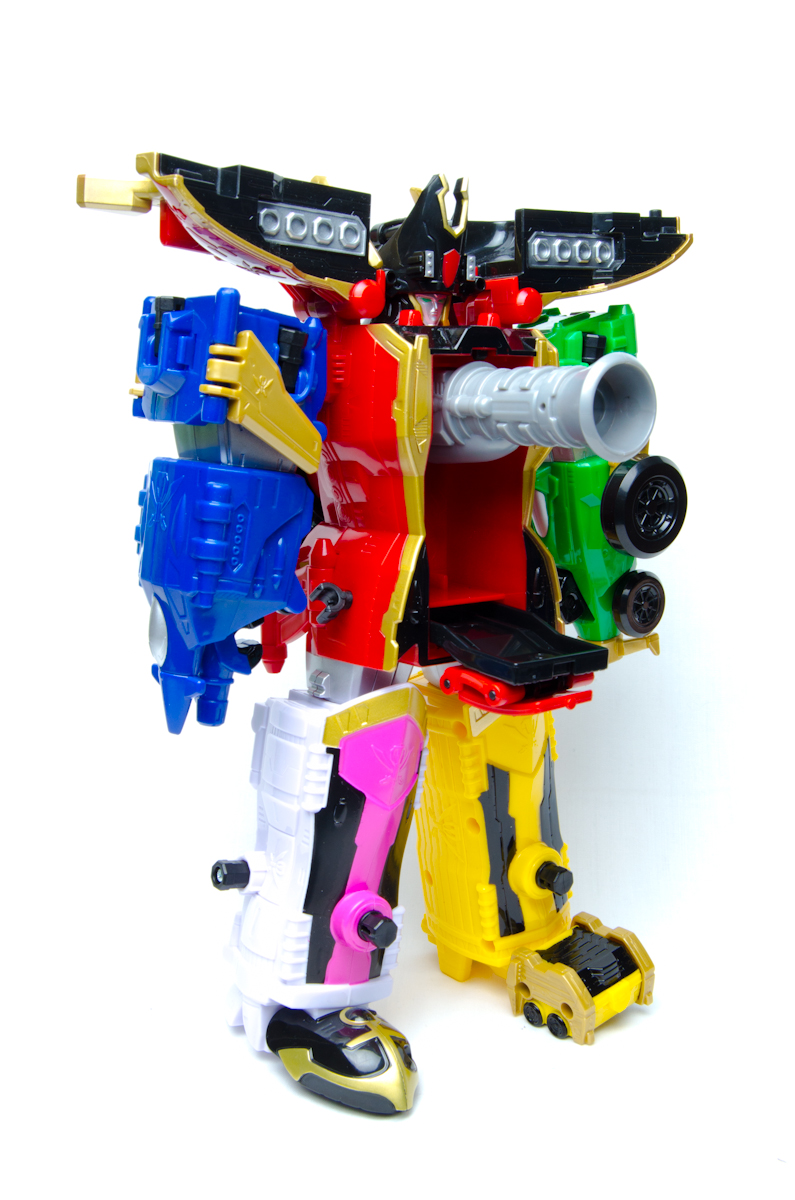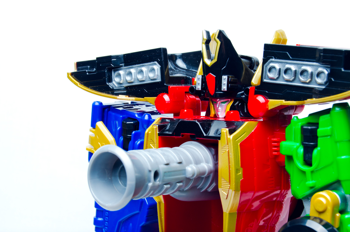 While the "cannon-in-the-chest" is a cute little nod to Gokaiger and actually completes the look of the Gokai Star Burst, it does raise some interesting questions. To fully understand, one has to remember what has transpired with Megaforce and its toy line. With the toys, Gosei Ultimate and Gosei Great unite in two different ways (Gosei Great standing on the Command Ship; Command Ship as a backpack for Gosei Great). This is keeping with the Ultimate Gosei Great from Goseiger, but was never adapted for PR and appears to have only been retained to capitalize on the Zordbuilder capabilities. Does this mean that this is just a subtle nod to Gokaiger for the sake of selling toys, or does this actually mean we a going to see the Star Burst finisher (which wasn't always used). Say the finisher is retained in the show, will it be the same or will they edit the cannon balls with an energy effect. Personally speaking, I would have been fine without them using the cannon. It would have been smarter to introduce the new Megazord and tie it all in with Megaforce/Goseiger by having it launch the Zord Heads of Gosei Great (Headders from Goseiger), which did happen in Gokaiger, but that is just my thinking.