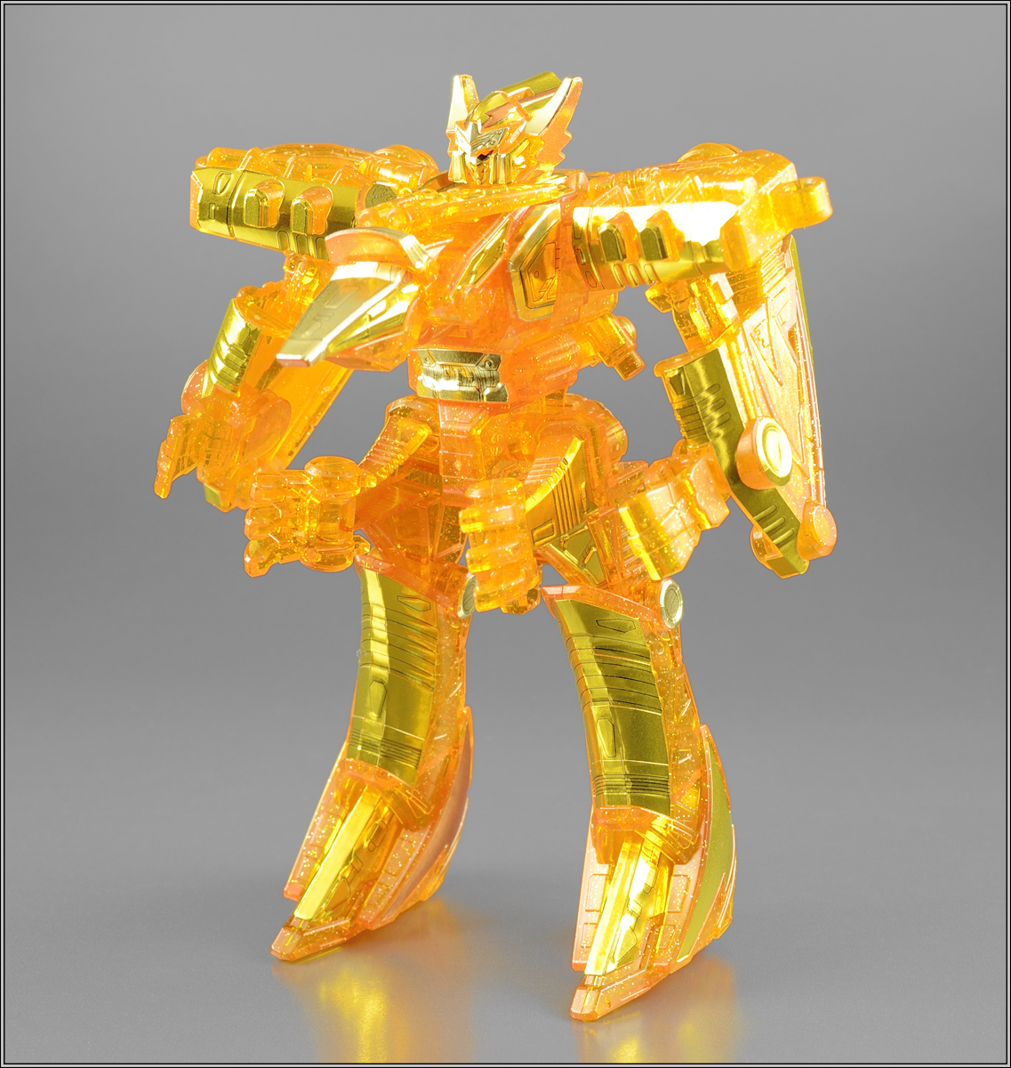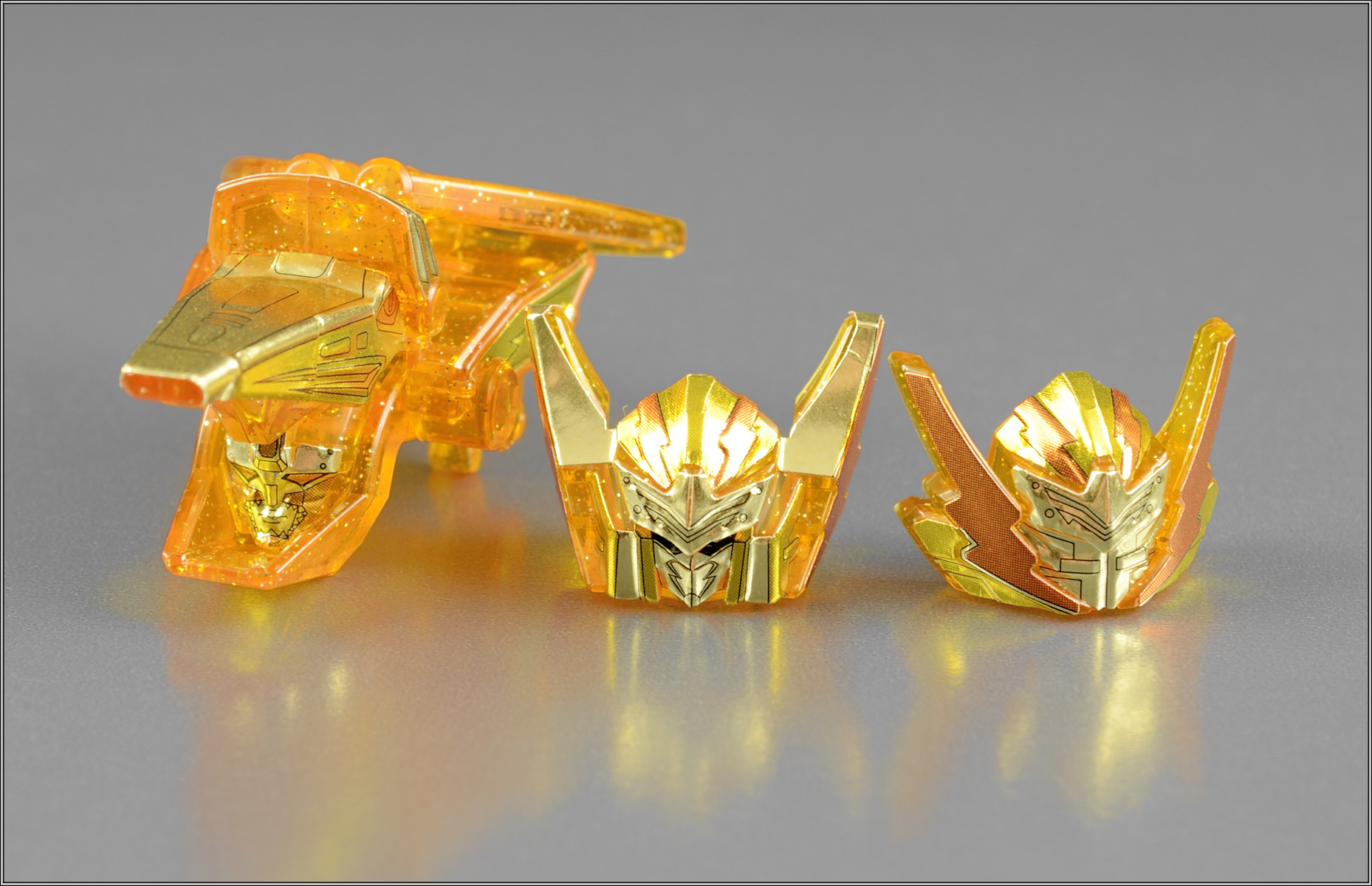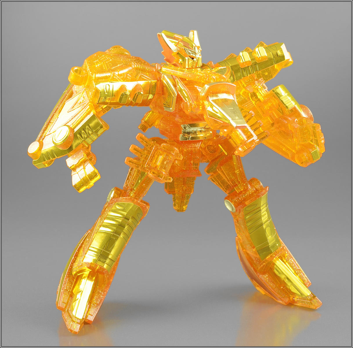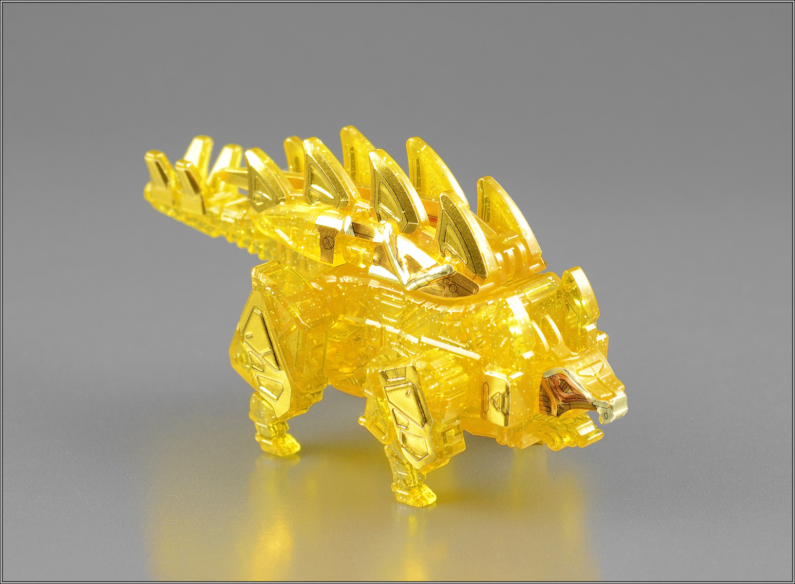 It isn't really worth mentioning but the Lighting edition only came with one piece of candy rather than six. That's normal for these types of box sets, but honestly one piece is more than enough. I still taste it.. Similare to the previous Pla special eidtion, Gobuster Oh Meteor, this set is done up in a glittery translucent plastic but has a unique orange and yellow color scheme, It also includes chrome gold/silver lables. The model is pretty impressive to see in person. The colors are meant to mimic Raiden Kyoryuzin's finishing move, Lightning Brave Finish, hints the model's name. With any luck we'll see a ToQoh done up in candy like transparent colors!