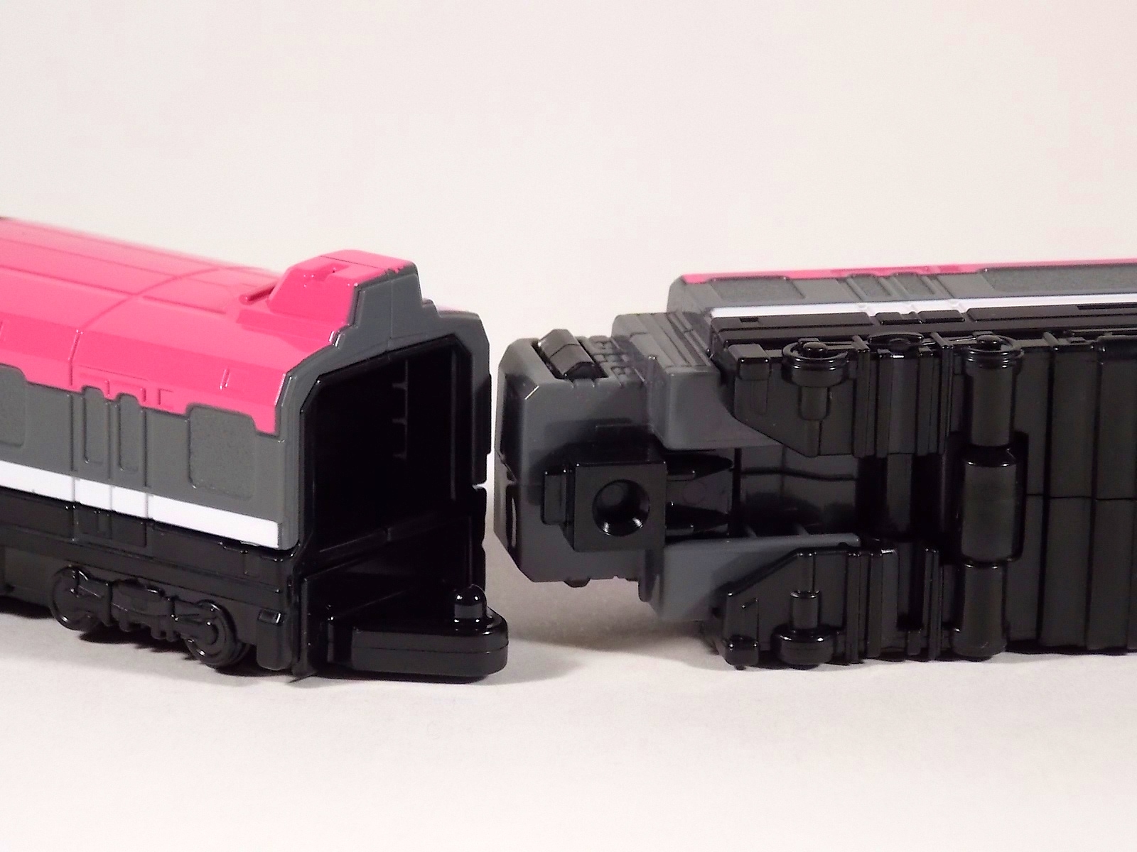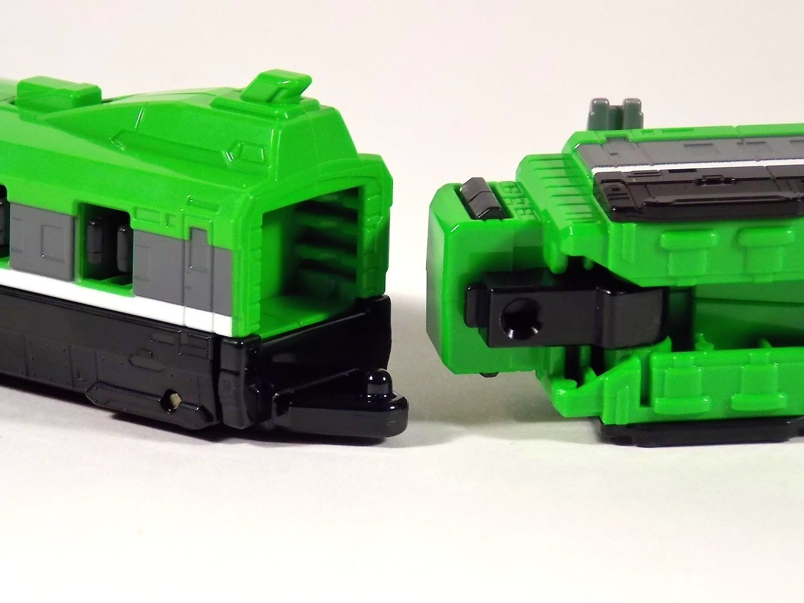 The problem I have with the mech is that it's robot mode was quite clearly compromised for the sake of the trains, to keep them looking like trains. But the trains are ALSO compromised, with gaps and holes and combiner parts just littering the train bodies. So both forms suffer, for what ultimately results in a simple and unsatisfying conversion.