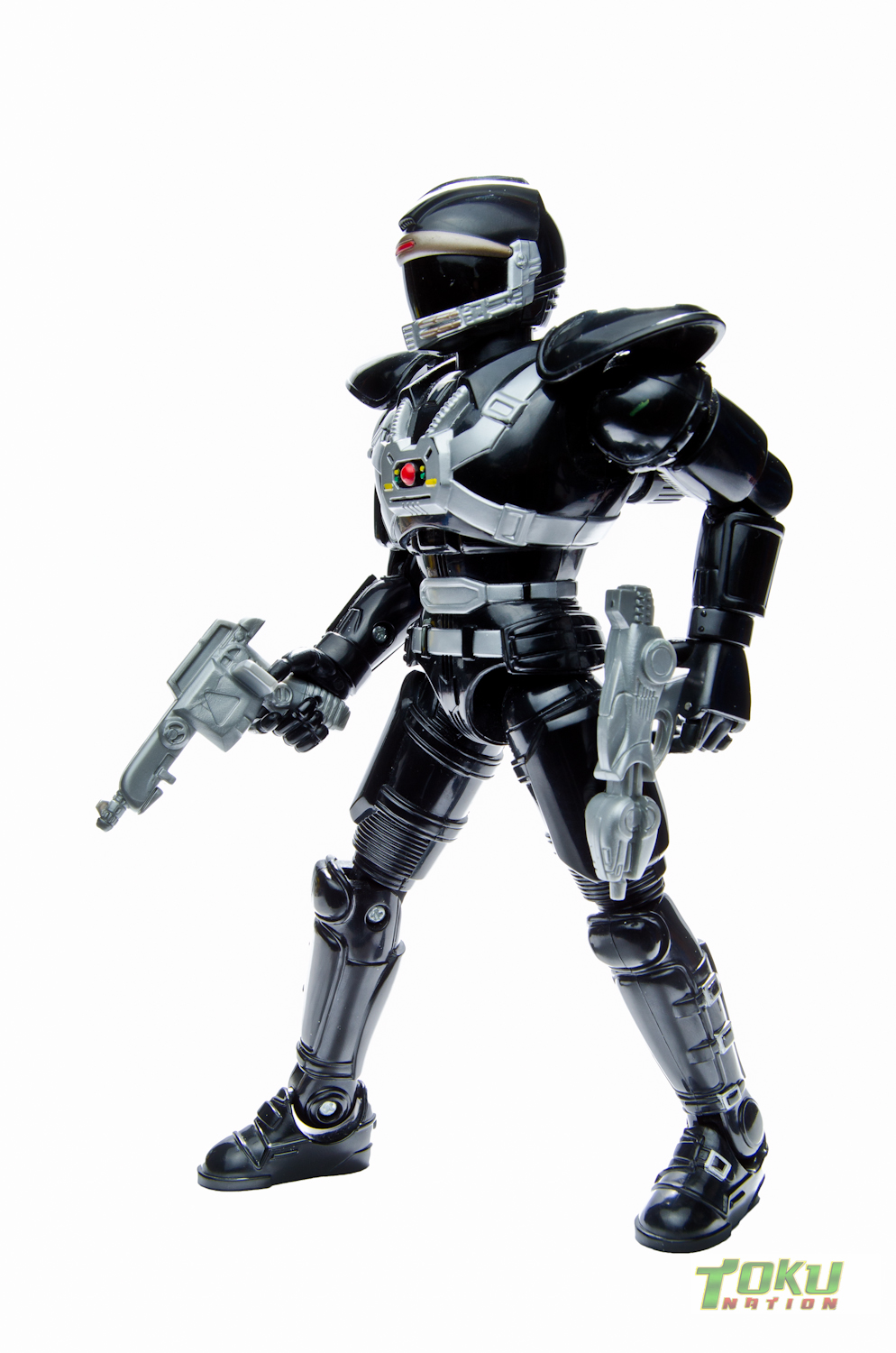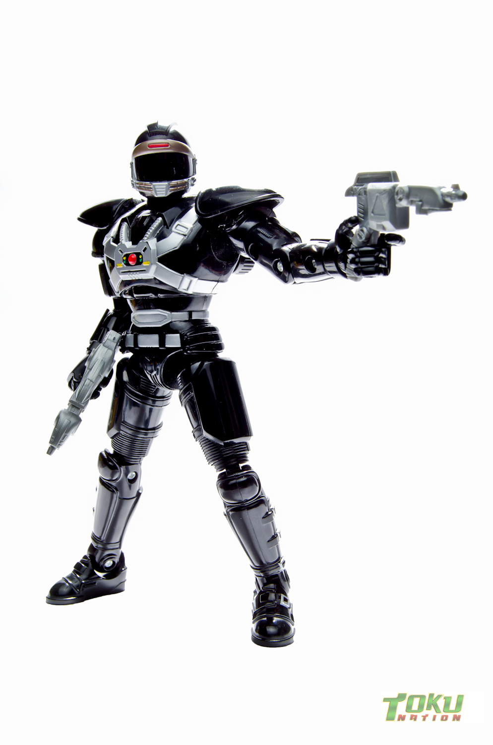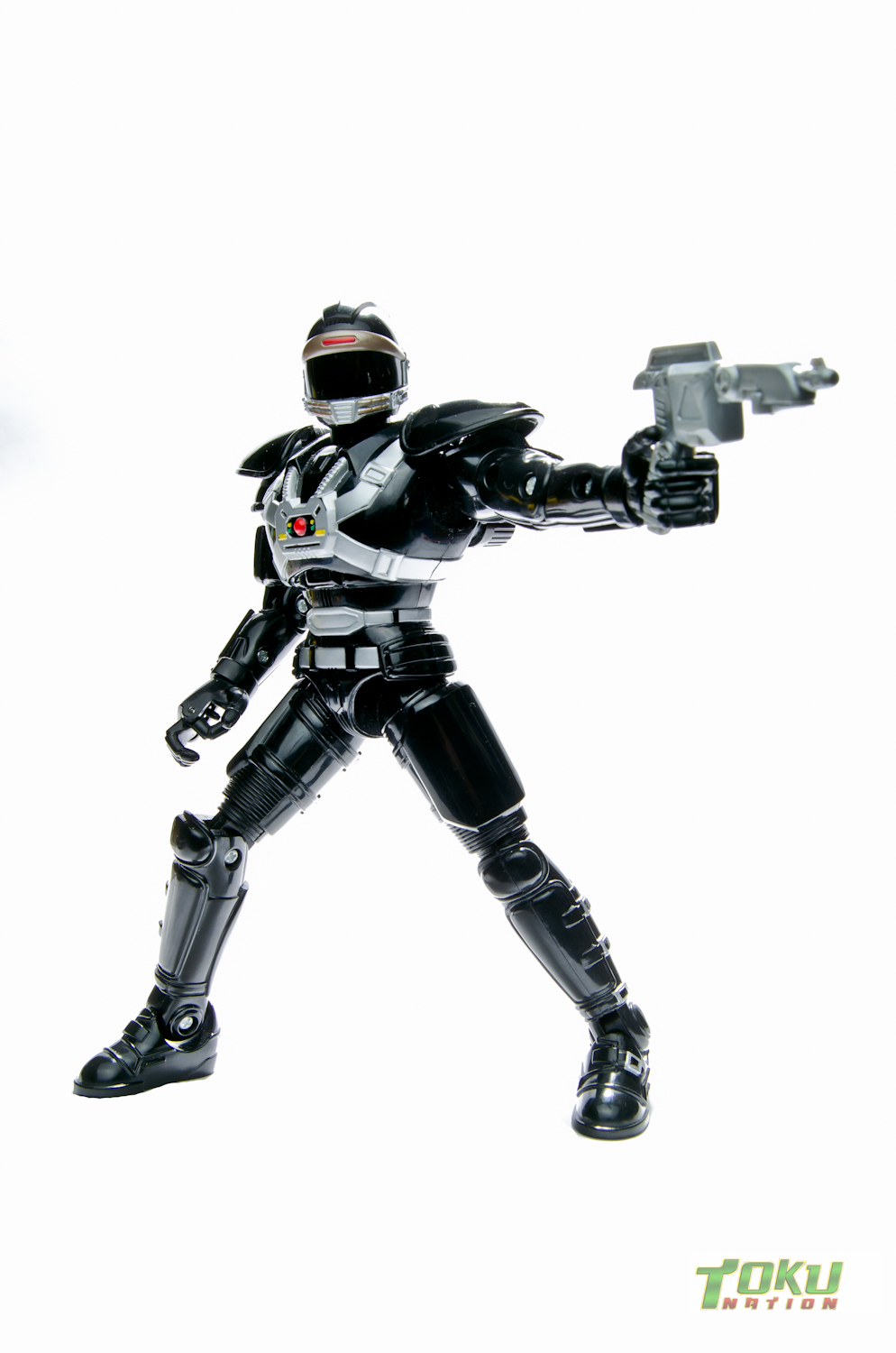 Whether you love or loathe Power Rangers Turbo, there's no denying that one of the best parts of the series was the Phantom Ranger, ally to the Rangers and the 'unofficial' 6th Ranger. The Phantom Ranger first appeared in Episode 23: The Phantom Phenomenon and had several more appearances in Power Rangers Turbo and then appeared in three episodes of Power Rangers in Space. The Phantom Ranger is unique in that he is the only Ranger without a confirmed identity. Footage of the Phantom Ranger was taken of VRV Master from Gekisou Sentai Carranger. In Carranger, VRV Master is considered just an ally and not an official 6th Ranger. It's because of this that the Phantom Ranger's suit will most likely not appear in Power Rangers Super Megaforce as a power of the Silver Ranger. Moving on to the subject of today's gallery, this figure of the Phantom Rangers stands at approximately 8 inches tall and has 23 points of articulation. The figure has a 'repeating quick draw action' and because of this, the right arm is not as articulated/poseable as the left. The right hand does still rotate at the wrist and does have semi-articulated fingers. The Phantom Ranger comes with two weapons, a Turbo Blaster and the Turbo Navigator in gun mode. Interestingly enough it lacks the Phantom's signature weapon, the Phantom Laser. Despite being adapted from a rather minimalistic suit design, the figure has a nice amount of sculpted and painted detail. Notable accents include the small, silver buckles on the calves and the intricate detail on the chest. Overall, this is a very nice figure and possibly the best representation of the Phantom Ranger or VRV Master that you can find. The gimmick is unobtrusive enough that the figure still looks really good and can strike a variety of poses. Last edited by conundrum; 03-13-2014 at 05:28 PM.. |