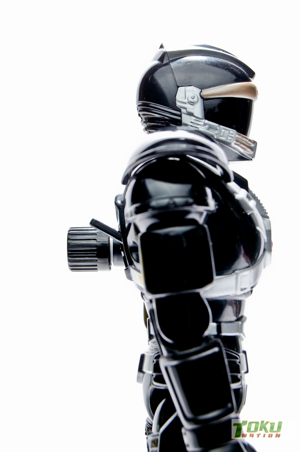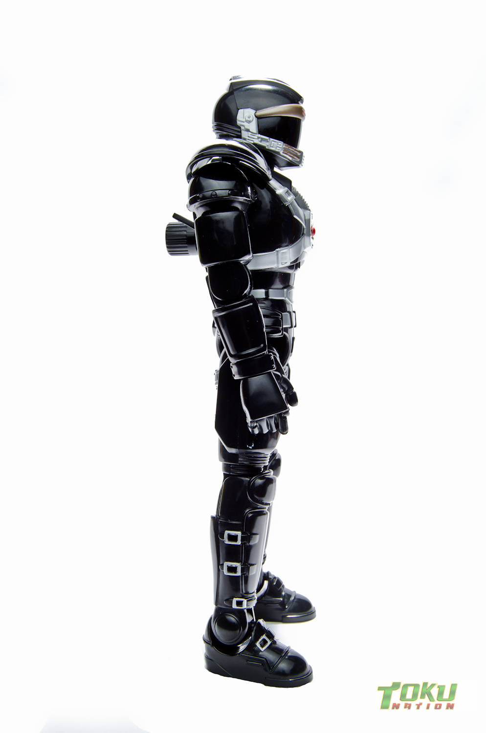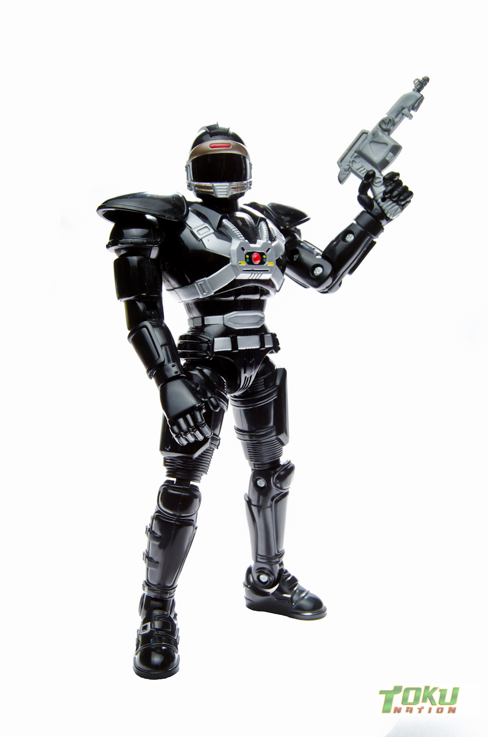 Whether you love or loathe Power Rangers Turbo, there's no denying that one of the best parts of the series was the Phantom Ranger, ally to the Rangers and the 'unofficial' 6th Ranger. The Phantom Ranger first appeared in Episode 23: The Phantom Phenomenon and had several more appearances in Power Rangers Turbo and then appeared in three episodes of Power Rangers in Space. The Phantom Ranger is unique in that he is the only Ranger without a confirmed identity. Footage of the Phantom Ranger was taken of VRV Master from Gekisou Sentai Carranger. In Carranger, VRV Master is considered just an ally and not an official 6th Ranger. It's because of this that the Phantom Ranger's suit will most likely not appear in Power Rangers Super Megaforce as a power of the Silver Ranger. Moving on to the subject of today's gallery, this figure of the Phantom Rangers stands at approximately 8 inches tall and has 23 points of articulation. The figure has a 'repeating quick draw action' and because of this, the right arm is not as articulated/poseable as the left. The right hand does still rotate at the wrist and does have semi-articulated fingers. The Phantom Ranger comes with two weapons, a Turbo Blaster and the Turbo Navigator in gun mode. Interestingly enough it lacks the Phantom's signature weapon, the Phantom Laser. Despite being adapted from a rather minimalistic suit design, the figure has a nice amount of sculpted and painted detail. Notable accents include the small, silver buckles on the calves and the intricate detail on the chest. Overall, this is a very nice figure and possibly the best representation of the Phantom Ranger or VRV Master that you can find. The gimmick is unobtrusive enough that the figure still looks really good and can strike a variety of poses. Last edited by conundrum; 03-13-2014 at 05:28 PM.. |