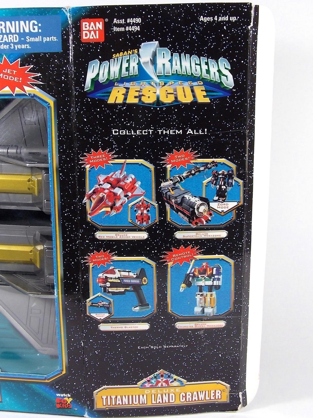We're back with one more push to shore up support for the first truly original Power Ranger, Titanium Ranger! Before you check out our images be sure to head over to Morphin Madness and #VoteTitanium Ranger today! Today's subject is the Titanium Crawler! Avid fans of course know that the Max Solarzord was billed as Titanium Rangers personal zord in Lightspeed rescue. However since Titanium Ranger was produced entirely for Power Rangers, with no Sentai counterpart, he doesn't have a zord made specifically for him. The Bandai of America toyline for the series sought to rectify that with the Titanium Crawler. Designed by PLEX, the company behind Sentai toy design for decades, this vehicle almost made it into the series. Unfortunately the budget for Lightspeed had already been stretched thin just from creating the Titanium Ranger suit and accessories. Add on top of this things like the Trans-Armor Cycle, Mega Battles, and Red Mobile Armor, and there simply was nothing left for the Titanium Crawler. That being said, the toy is still very fun. Sharing a design at a basic level with the Red Ranger's Mobile Armor this unique vehicle has it's own robot and vehicle mode. The Robot mode stands roughly 11" tall and can accommodate a ranger figure standing up fully inside of it. In this mode the forward section of the vehicle becomes a handheld gun and there are also 2 included pressure firing missile launchers which are normally stored on the forearms but can also be held in either fist. As you'll note based on the boxes stock photography, the final product varies quite a bit in paint applications and a fair amount in mold details. The Titanium Crawler mode is very very similar to the Omega Megazord in it's alternate configuration. Clearly inspired by it. Surprisingly, and undocumented via the instructions, the crawler can open up and form an appropriate cockpit for a ranger figure to pilot it. Showing again where the final product differs from stock images, there are even control stickes which rotate up from the waste for a ranger to grab. This adds some much needed playability to the otherwise brick that is the robot mode. The included Titanium Ranger figure shares the same basic body mold as the Electronic Lights/Sounds figure of the character. Though because it has no electronics it's articulation isn't hindered. The head can actually rotate on the neck joint, and the shoulders can actually rotate 360 degrees this time. Also of note is that the gloves and boots are the properly colored white this time rather than the odd blue of the previous release. Combo-ing this version of the Titanium Ranger with the superb accessories of the previous one gives you one near perfect figure. Also included with this Titanium ranger figure is a Rescue Blaster accessory. All in all this is actually a pretty damn nice set. The Titanium Ranger included with the Crawler is easily the best representation of the character that currently exists, and that includes the subpar Super Legends figure. The Titanium Crawler itself is actually quite fun, and I can never resist something that's original and truly inspired like this. Much like Titanium Ranger himself and his in show arsenal, this one feels like it was always meant to be a part of the show/toyline, rather than being solely designed for the US adaptation.