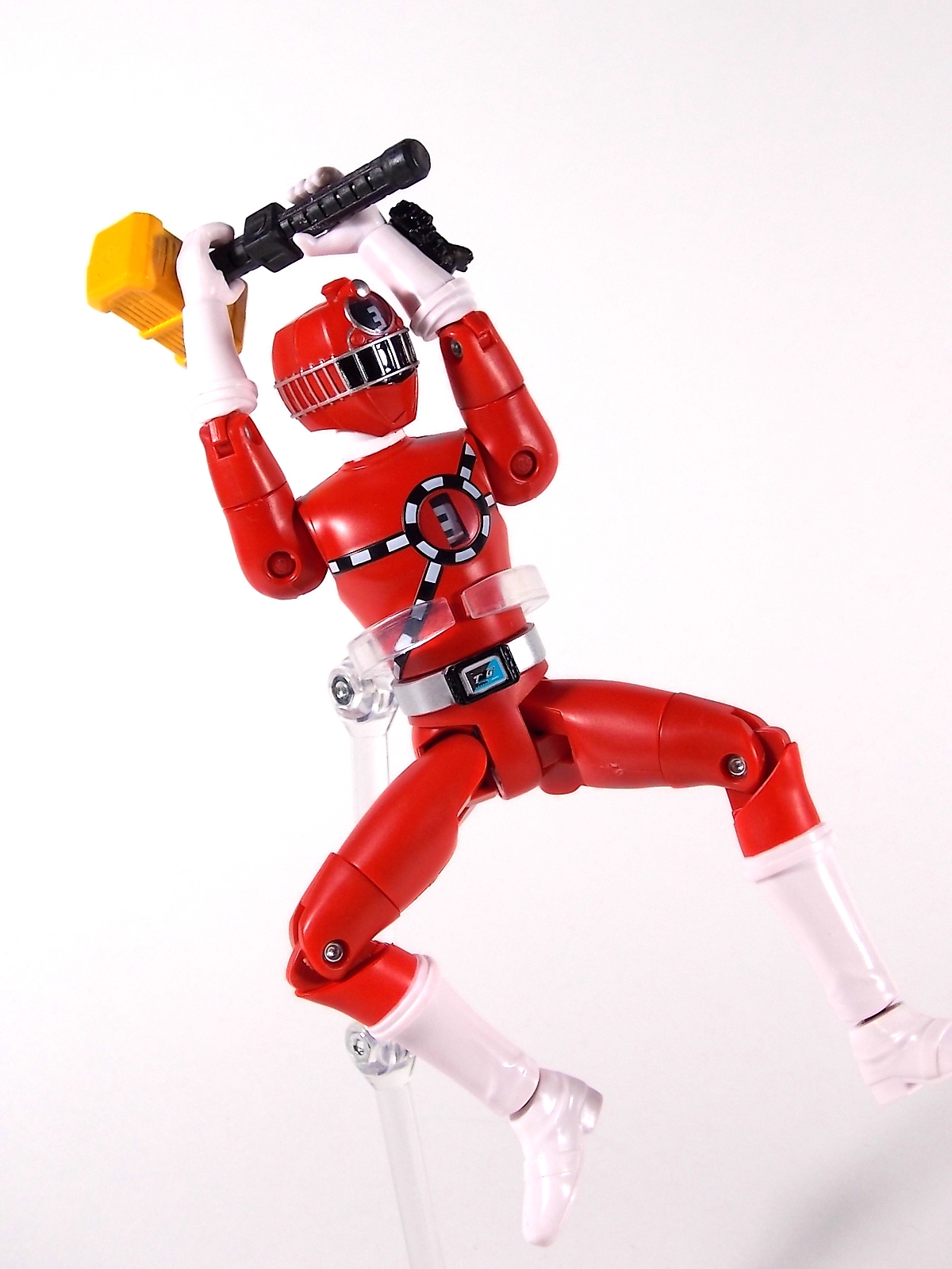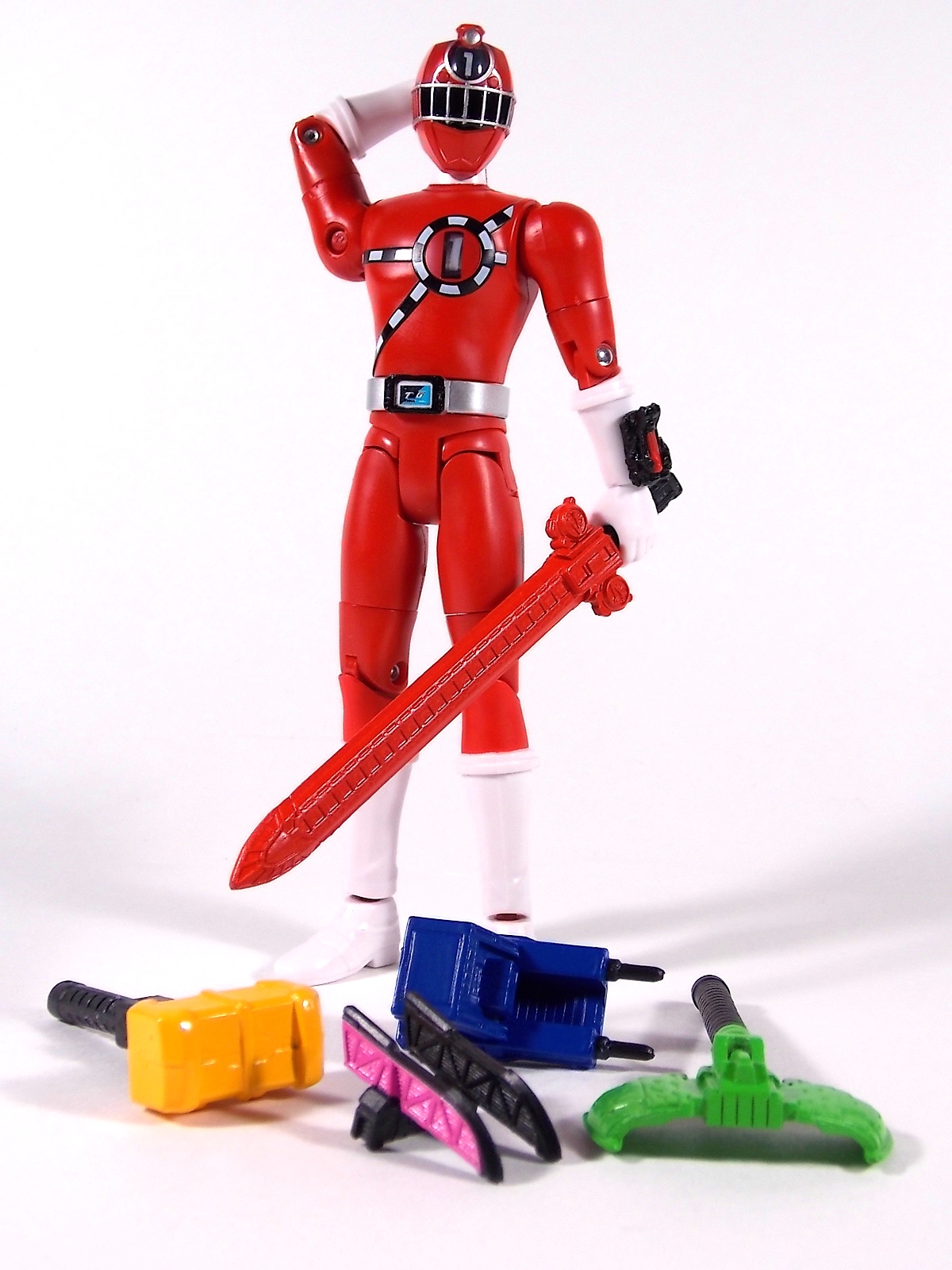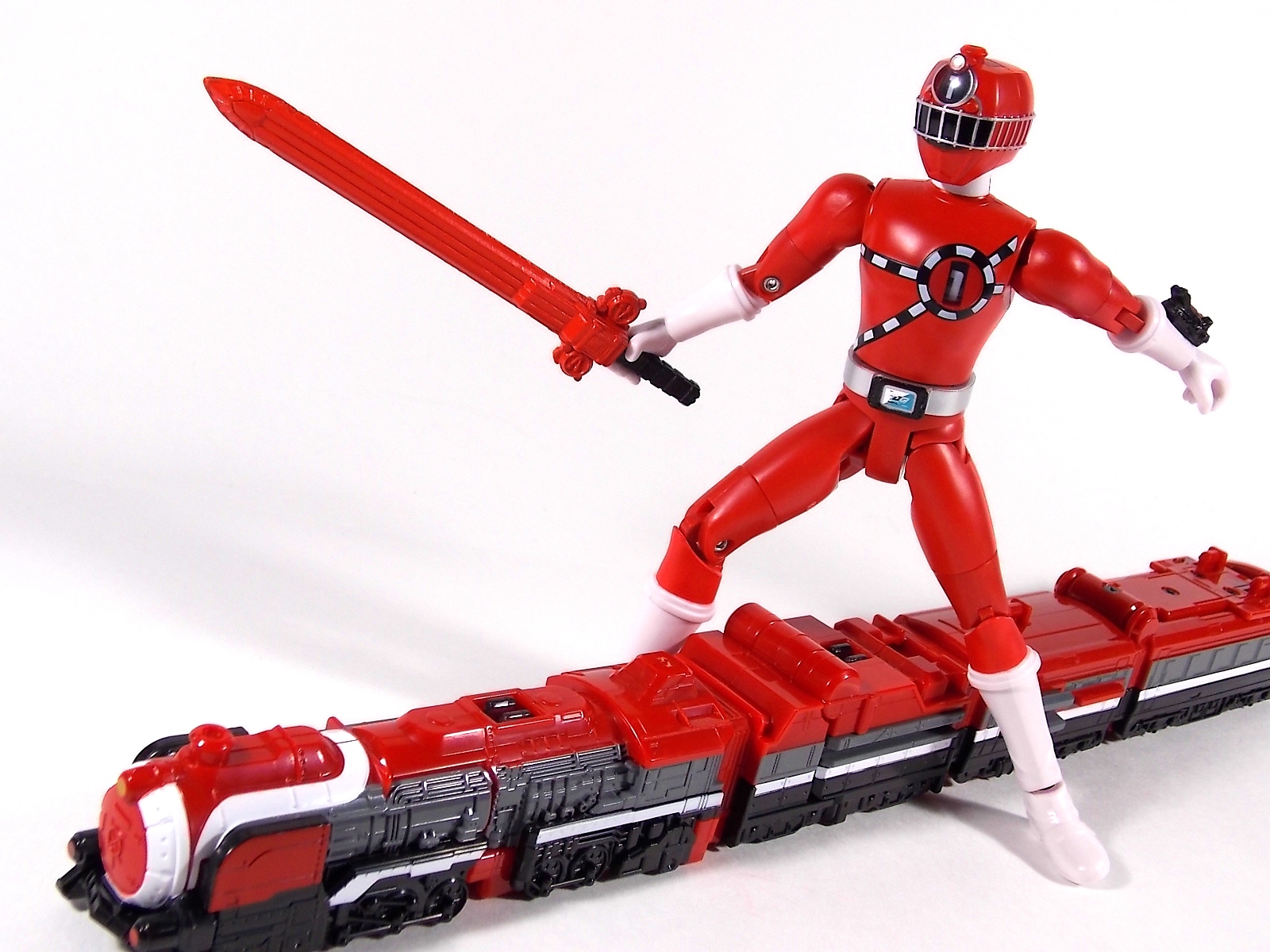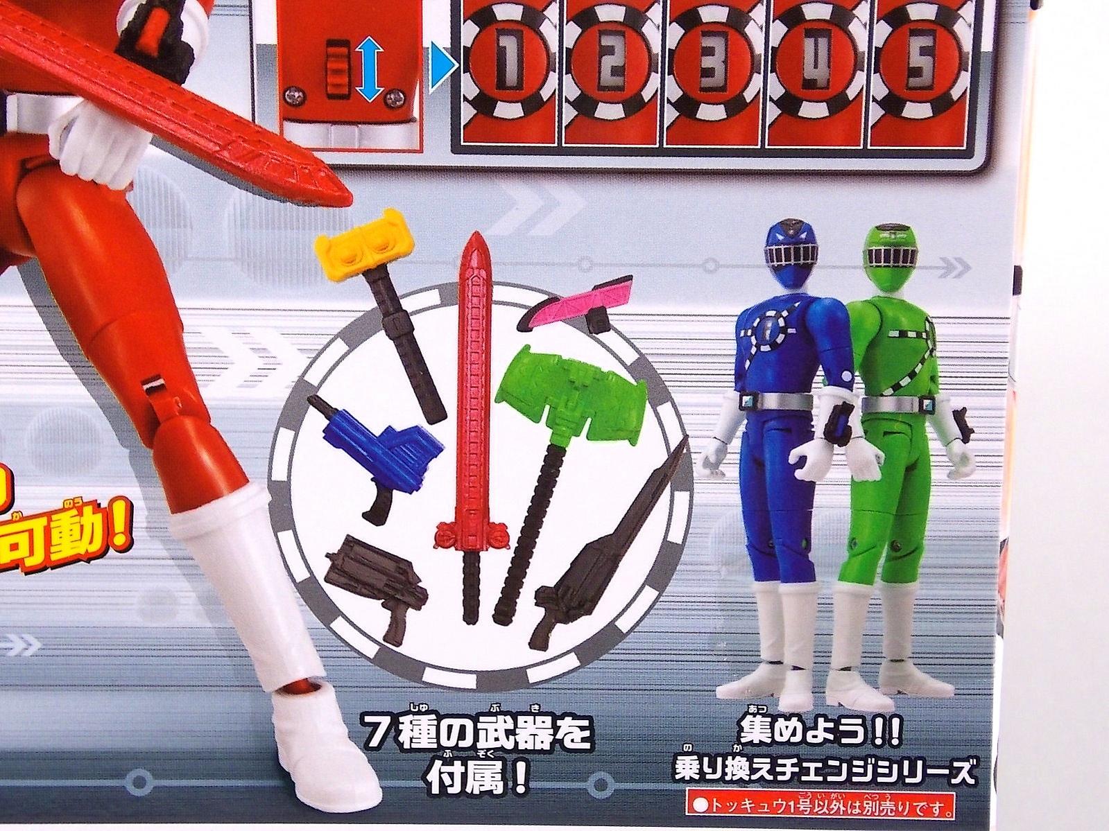 It's time to take a look at a brand new line of figures from Ressha Sentai ToQger! Today's subject is ToQ 1 from the Norikae (Transfer) Change series of figures! At first glance you may write this figure off. Don't do that. Is Norikae Change the next Arms Change? No, not by any stretch of the imagination. See what I did there? It is however a fun gimmick line that works rather well given the limitations of the toy versus the on screen ToQger gimmicks. At it's core ToQ 1 is a very basic figure. Albeit a pretty damn well articulated one. We have full 360 ankles, 90 degree knees, full 360 thighs, double jointed hips, full 360 shoulders, full 360 biceps & wrists, 90 degeree elbows and ball jointed head. This may not be a an S.H.Figuart but with this level of articulation it's certainly close. Onto the gimmick. Each figure in the Norikae Change series features a dial on it's back and head which can be turned to change the numbers displayed on the chest and forehead. These mechanisms are totally independent of each other and function ideally. This figure is also sculpted quite nicely. The track details on the chest and helmet are done very well and the translucent areas where the numbers are displayed are pretty nice, giving off the feel of the actual in show suits. The Rainbow Pass on the ToQ Buckle even has a metallic sheen to emulate the decal of the DX version, though it is non-removable. Accessories Included with ToQ 1 is the standard side arm ToQ Blaster in both Gun and Sword mode. And here's where things get weird. The gimmick of ToQger is that each character can swap Resshas with one another to use the other colors, therein allowing them access to each others signature weapons. A sound gimmick in practice, on a fictional TV show. Not so much in toy form. As I said each figure contains the numbers 1-5 in them so you can create ToQ 1 Red, ToQ 2 Red, ToQ 3 Red, etc. And ToQ 1's Rail Slasher sword is included as well. But so are the weapons for the other 4 ToQgers. Which makes little to no sense at all. When the ToQgers change color they are doing so to gain access to each others weapons, they in fact lose their weapon and gain that of the color they've switched too. So these accessories are absolutely useless. They represent nothing seen on the show at all. AND they are molded in a way that makes them incapable of forming the Renketsu Bazooka, they cannot be combined. And it's not as though the other figures don't include them. ToQ 2 & ToQ 4 both have the identical accessories. Unfortunately no ToQ 3 or ToQ 5 Norikae Change figures exist and currently there are no plan to produce them. Meaning the only way you can have either female on the team is to rotate the numbers on one of the male figures and pretend they aren't absurdly tall and muscular by comparison. Overall Though the inclusion of extra nonsensical weapons is infuriating, at the end of the day it's like getting extra accessories, I guess? It doesn't necessarily detract from the figure being a pretty fun representation of ToQ 1. But you could buy any of the 3 released figures and have the same experience. They're totally identical in functionality. I will say that unlike Sentai gimmick figures of previous years the Norikae Change line fits in pretty damn well with S.H.Figuarts. In fact they look damn near perfect with Kamen Rider Gaim Arms Change figures. Check out the full gallery below and decide for yourself if this figure has a place in your collection. Faults and all? It still has a place in mine.