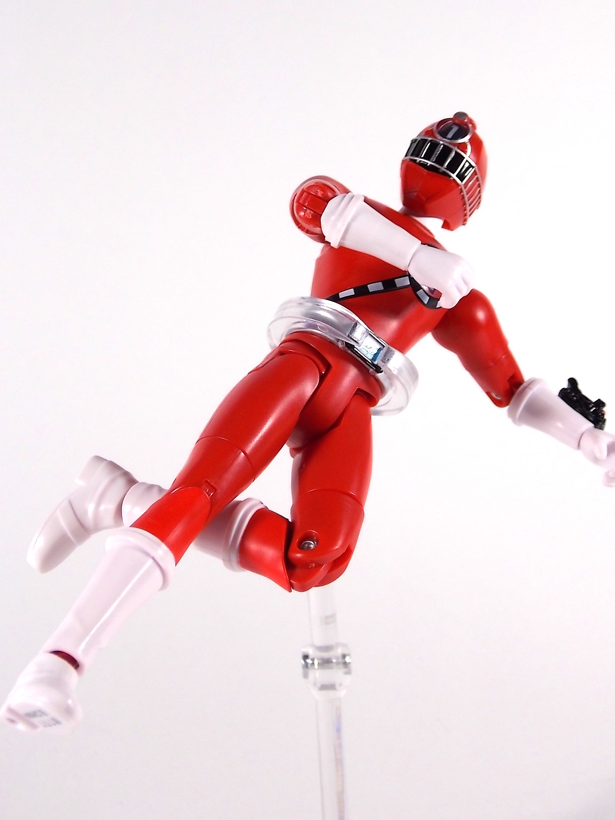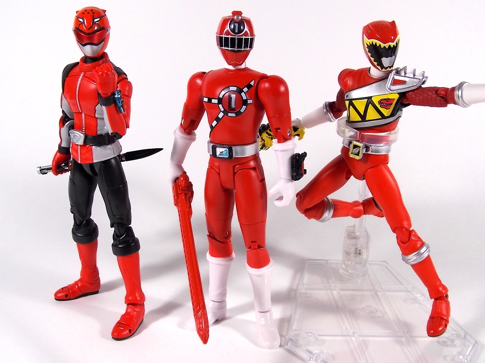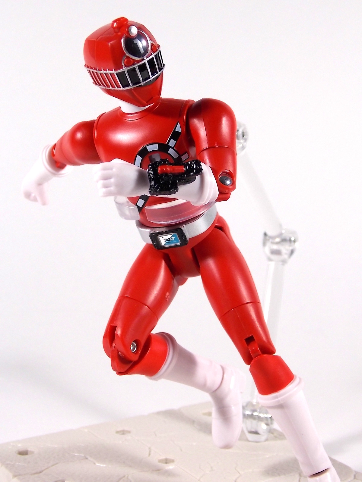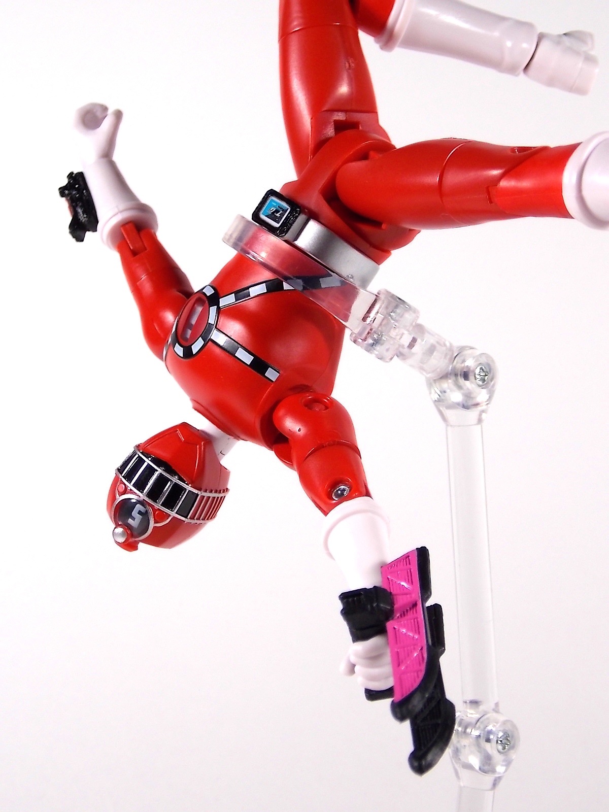 It's time to take a look at a brand new line of figures from Ressha Sentai ToQger! Today's subject is ToQ 1 from the Norikae (Transfer) Change series of figures! At first glance you may write this figure off. Don't do that. Is Norikae Change the next Arms Change? No, not by any stretch of the imagination. See what I did there? It is however a fun gimmick line that works rather well given the limitations of the toy versus the on screen ToQger gimmicks. At it's core ToQ 1 is a very basic figure. Albeit a pretty damn well articulated one. We have full 360 ankles, 90 degree knees, full 360 thighs, double jointed hips, full 360 shoulders, full 360 biceps & wrists, 90 degeree elbows and ball jointed head. This may not be a an S.H.Figuart but with this level of articulation it's certainly close. Onto the gimmick. Each figure in the Norikae Change series features a dial on it's back and head which can be turned to change the numbers displayed on the chest and forehead. These mechanisms are totally independent of each other and function ideally. This figure is also sculpted quite nicely. The track details on the chest and helmet are done very well and the translucent areas where the numbers are displayed are pretty nice, giving off the feel of the actual in show suits. The Rainbow Pass on the ToQ Buckle even has a metallic sheen to emulate the decal of the DX version, though it is non-removable. Accessories Included with ToQ 1 is the standard side arm ToQ Blaster in both Gun and Sword mode. And here's where things get weird. The gimmick of ToQger is that each character can swap Resshas with one another to use the other colors, therein allowing them access to each others signature weapons. A sound gimmick in practice, on a fictional TV show. Not so much in toy form. As I said each figure contains the numbers 1-5 in them so you can create ToQ 1 Red, ToQ 2 Red, ToQ 3 Red, etc. And ToQ 1's Rail Slasher sword is included as well. But so are the weapons for the other 4 ToQgers. Which makes little to no sense at all. When the ToQgers change color they are doing so to gain access to each others weapons, they in fact lose their weapon and gain that of the color they've switched too. So these accessories are absolutely useless. They represent nothing seen on the show at all. AND they are molded in a way that makes them incapable of forming the Renketsu Bazooka, they cannot be combined. And it's not as though the other figures don't include them. ToQ 2 & ToQ 4 both have the identical accessories. Unfortunately no ToQ 3 or ToQ 5 Norikae Change figures exist and currently there are no plan to produce them. Meaning the only way you can have either female on the team is to rotate the numbers on one of the male figures and pretend they aren't absurdly tall and muscular by comparison. Overall Though the inclusion of extra nonsensical weapons is infuriating, at the end of the day it's like getting extra accessories, I guess? It doesn't necessarily detract from the figure being a pretty fun representation of ToQ 1. But you could buy any of the 3 released figures and have the same experience. They're totally identical in functionality. I will say that unlike Sentai gimmick figures of previous years the Norikae Change line fits in pretty damn well with S.H.Figuarts. In fact they look damn near perfect with Kamen Rider Gaim Arms Change figures. Check out the full gallery below and decide for yourself if this figure has a place in your collection. Faults and all? It still has a place in mine.