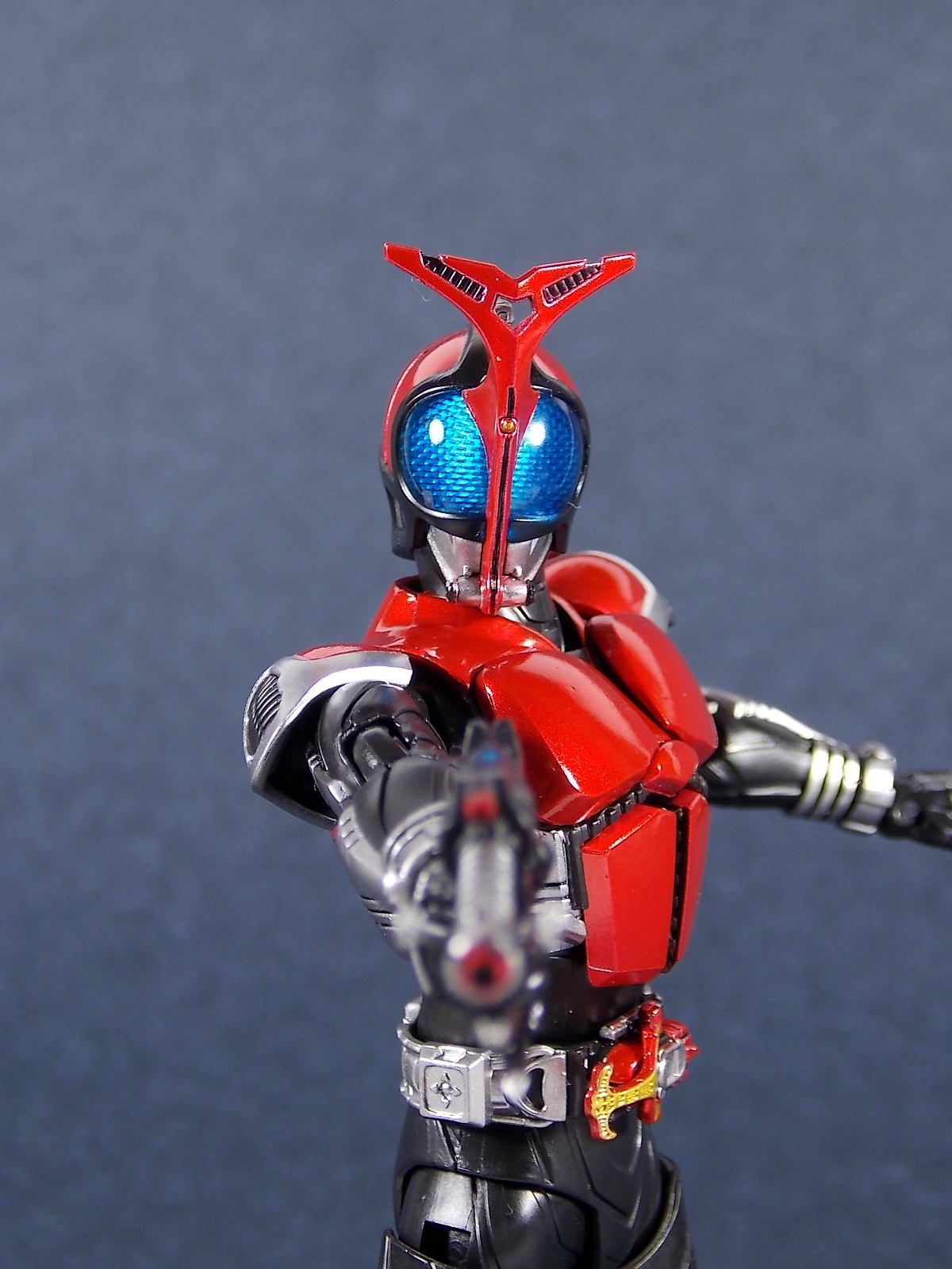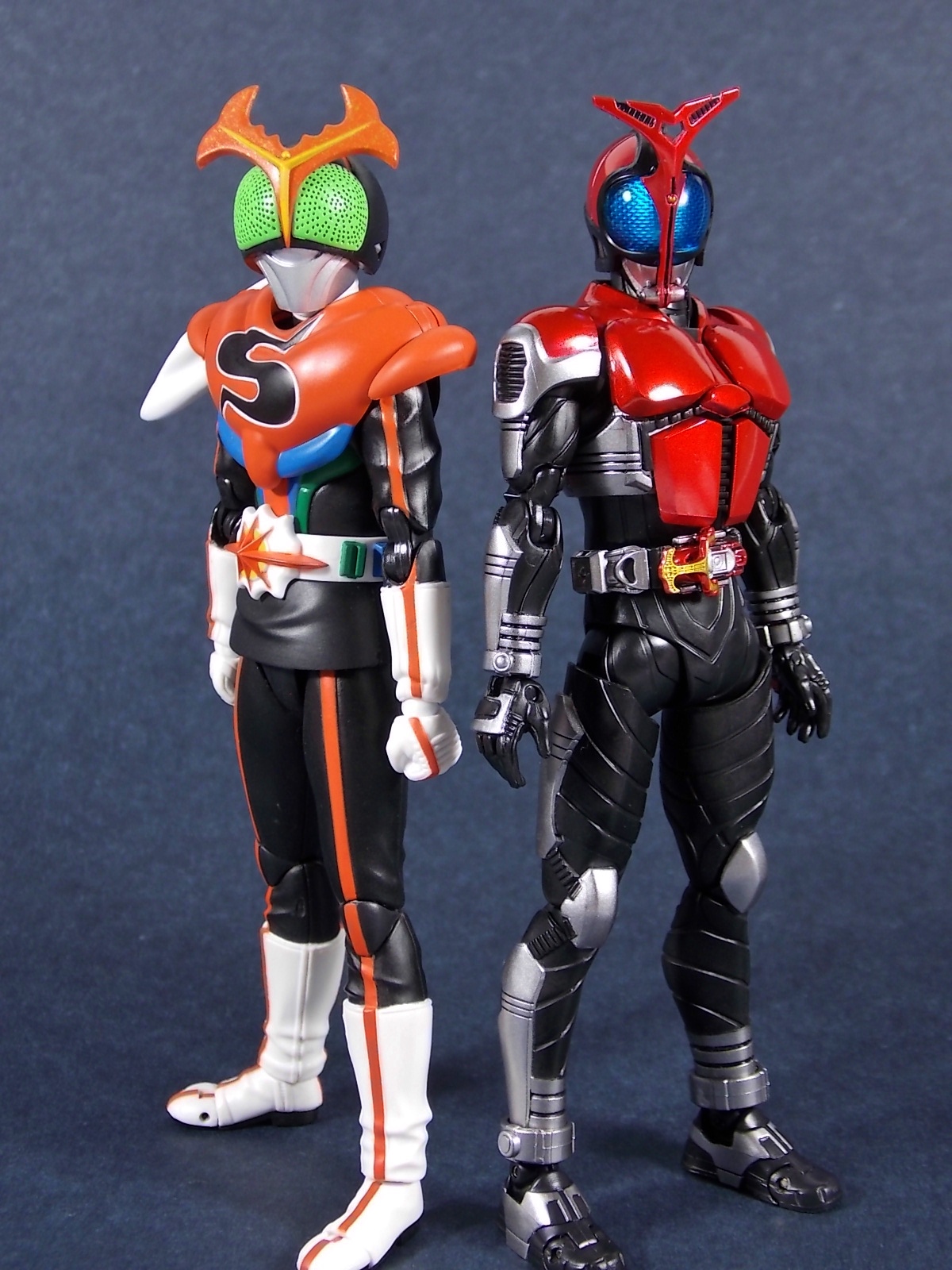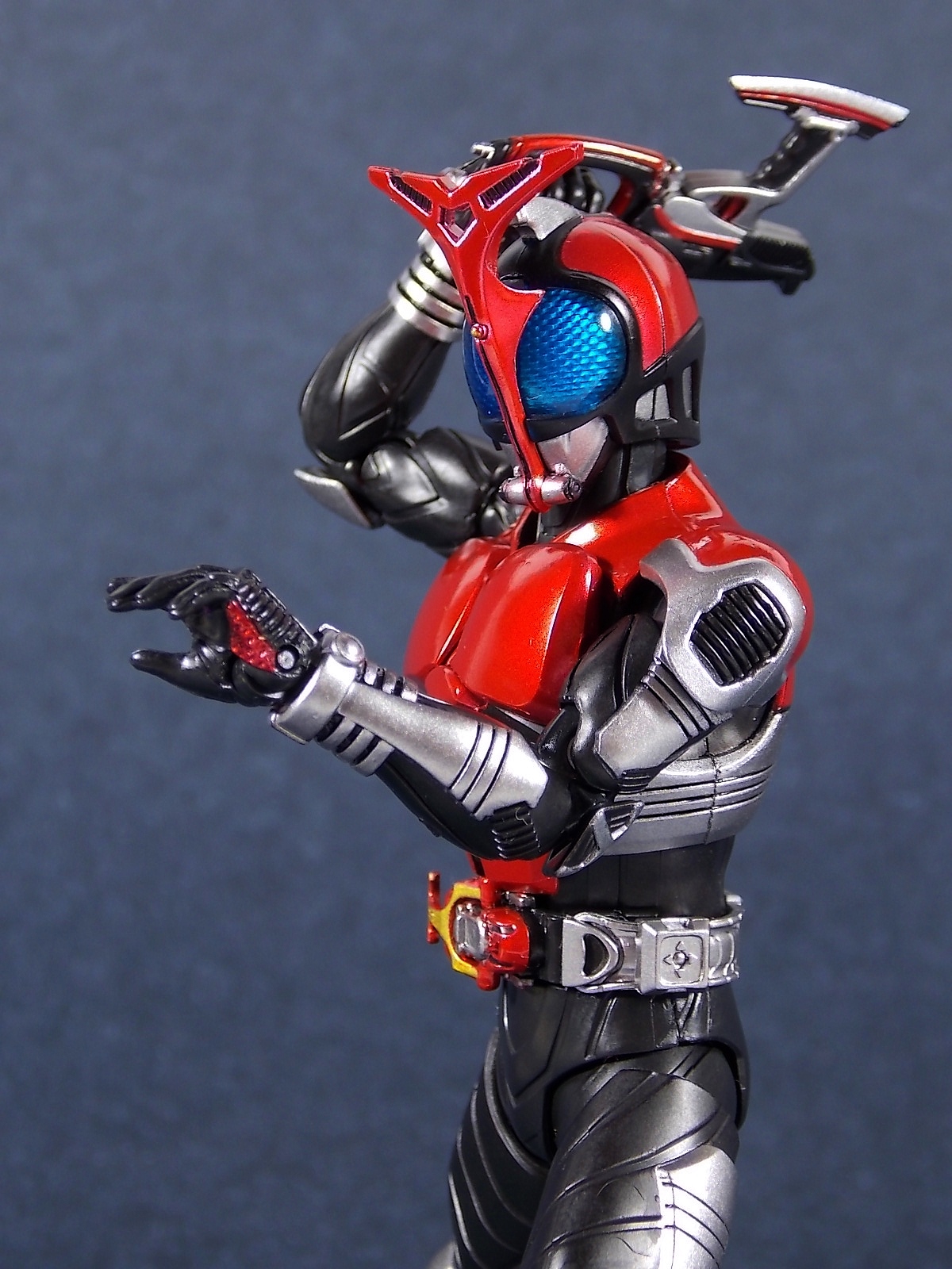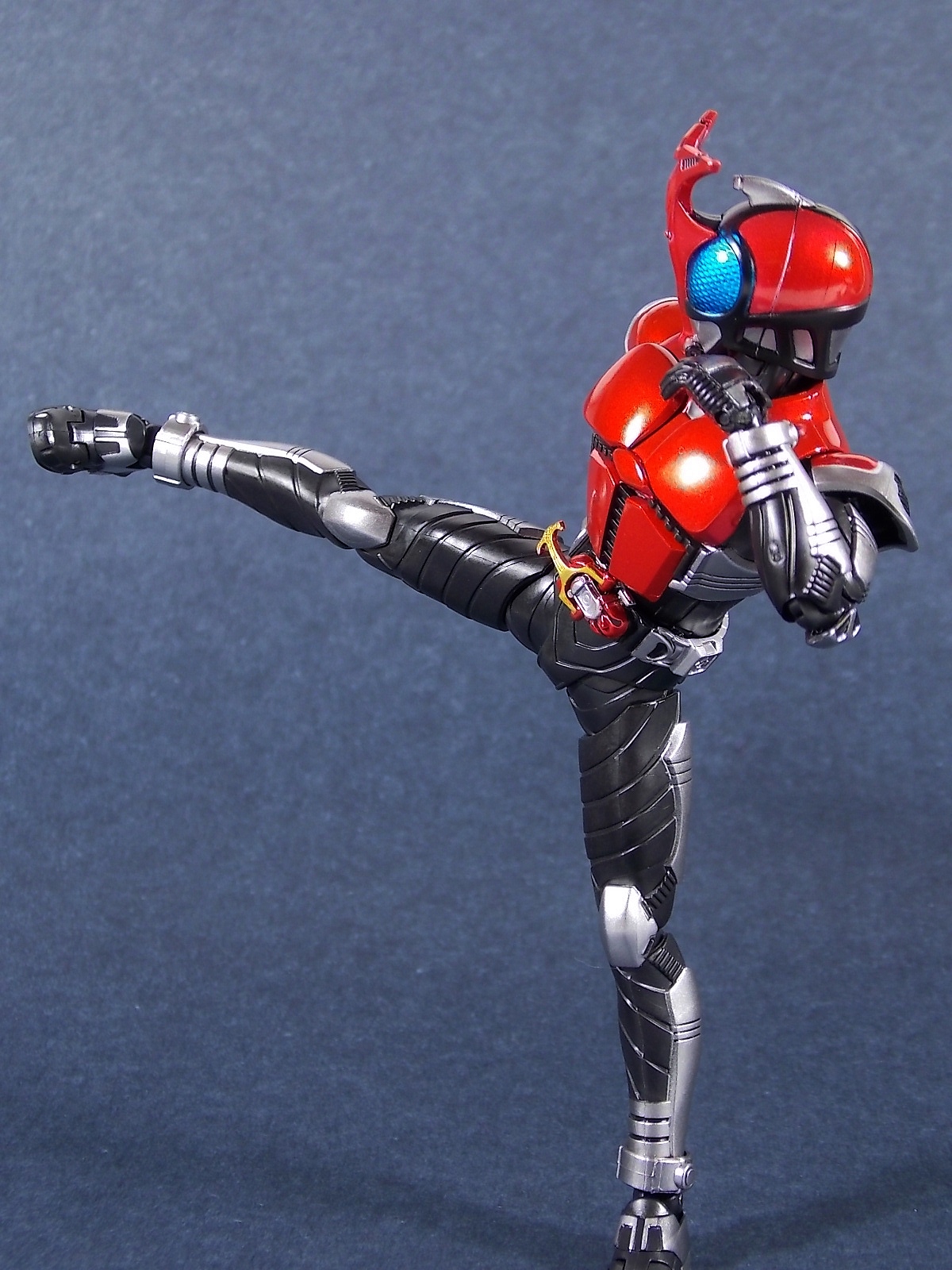 This one has been a long time coming, but S.H. Figuarts Kamen Rider Kabuto Renewal is here! So let's dive right in! Bulk of photos in post #1, continued into post #2! To start, the original Kabuto line of S.H. Figuarts is not terrible. At least they weren't by the standards of the day about 5 years ago. Now however they just don't hold up with current SHF engineering. So Bandai has rectified that with this Renewal release. And wow what an improvement this new figure makes. To start it's been well publicized that Bandai sculpted an entirely new basic human form for Kabuto. This figure and other premium style releases like it from now on (Hibiki etc), will feature this new base body. The improved proportions and articulation afforded by this new sculpt already put it light years ahead of the original figure. Note. I no longer have my original SHF Kabuto. I sold it immediately after the Renewal was first announced in anticipation. So unfortunately I don't have a comparison of the two. But I do have Gattack and Shadowtrooper from the same era to compare to this figure. Renewal Kabuto succeeds in nearly every aspect that Bandai wanted it to. As I mentioned the articulation is nuts on this thing. The new style hips provide a wide and balanced motion that allows you to replicate some of Kabuto's most iconic poses/attacks. The head sculpt is now the appropriate size (with correct colored eyes) compared to the first figure. The shoulder pads are akin to Blade in that they can unhinge for a ton of extra motion. A new style of hands has also been implemented here. The more "figma style" peg hands are introduced to the line with this figure. They were controversial when first revealed, and will likely continue to be for a long time. I just want to say to start, I don't like them. I really thought I would. But I simply don't care for the peg style in hand. They don't seem easier to remove that the old style, and don't make me feel more confident about avoiding breakages. Just because of their design they can spin 360 and bend up/down at the wrist, but they somehow feel more limited than the old style ball joint hands. An odd "hand tree" is also included to store them on. This is neither practical nor well executed. Simply push the pegs from the wrists into shallow grooves on the tree. But there's no indication that any hand belongs in a particular spot. Unfortunately any degree of force applied to get the hands on the trees will pop any you may have successfully gotten on, right back off. The tree also splits in two and can be combined with duplicates of itself from future releases. Again this is far from practical as it falls apart from looking at it the wrong way. As for other accessories Kabuto also includes the 3 versions of his signature weapon. The Kabuto Kunai Gun. The Gun, Axe, and Kunai modes are all included here. Typically the Gun mode is more associated with Masked form than the Rider form this figure represents, but I appreciate the added bonus for the price of the figure. And speaking of bonuses a short S.H.Figuarts development booklet is included which I've included scans of in this gallery. Is Kamen Rider Kabuto Renewal perfect? No, unfortunately the short comings of the new hand/wrist system work against the figure. Is it still one of the best SHF's in the entire line? Hell yes! The new body this figure is based around is absolutely magnificent. Loads of articulation and an absolutely rock solid set of proportions go a long way to making this a fantastic figure. You should definitely pick one of these bad boys up.