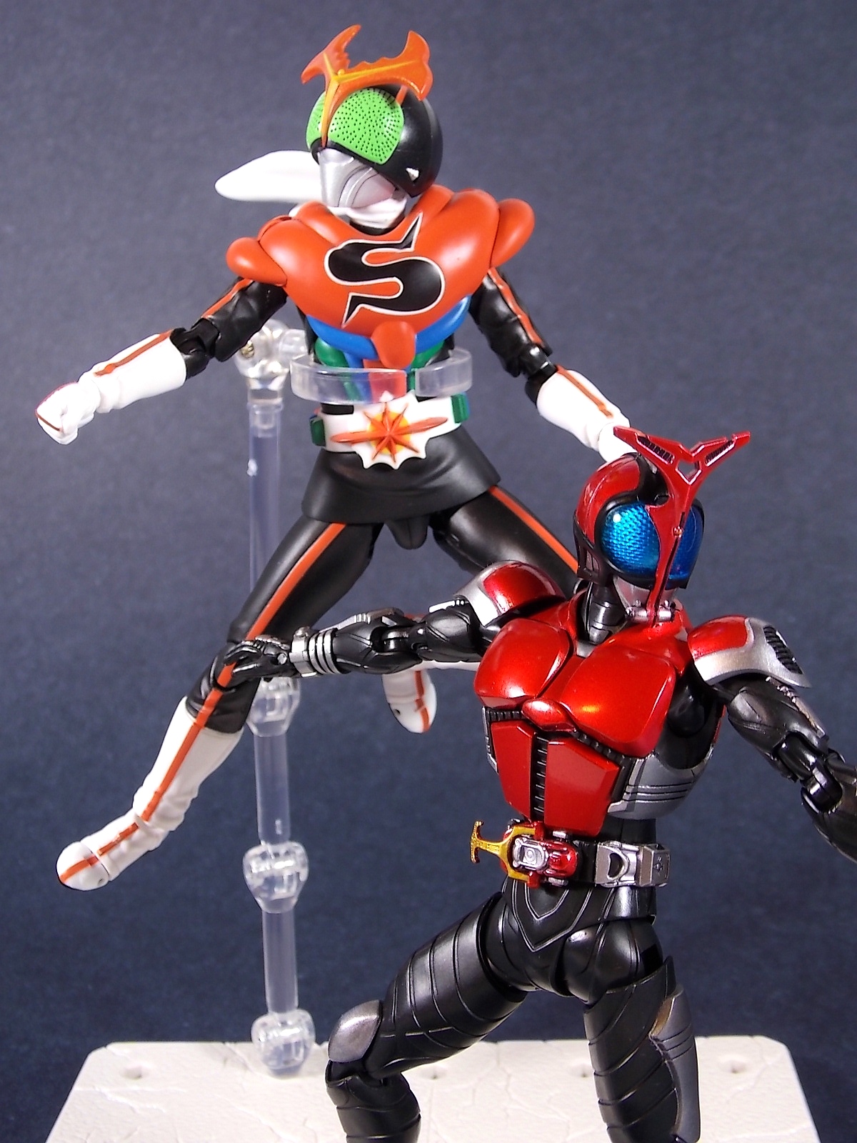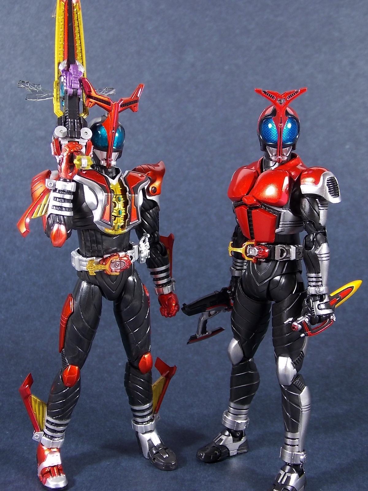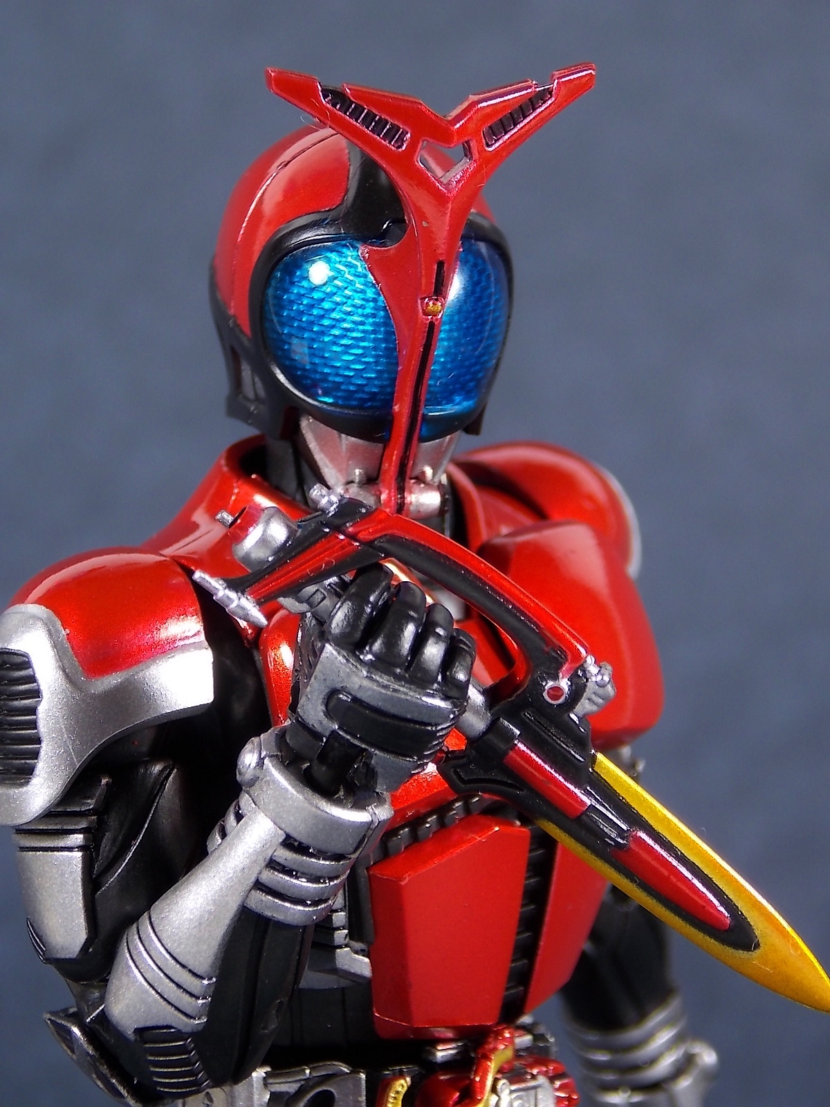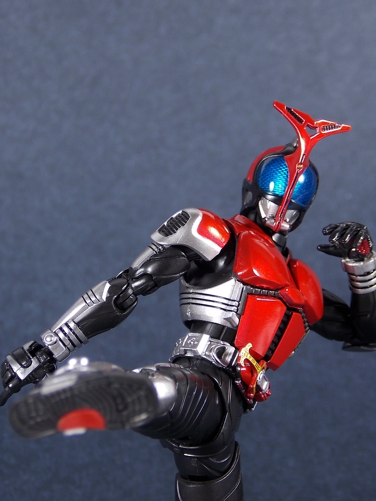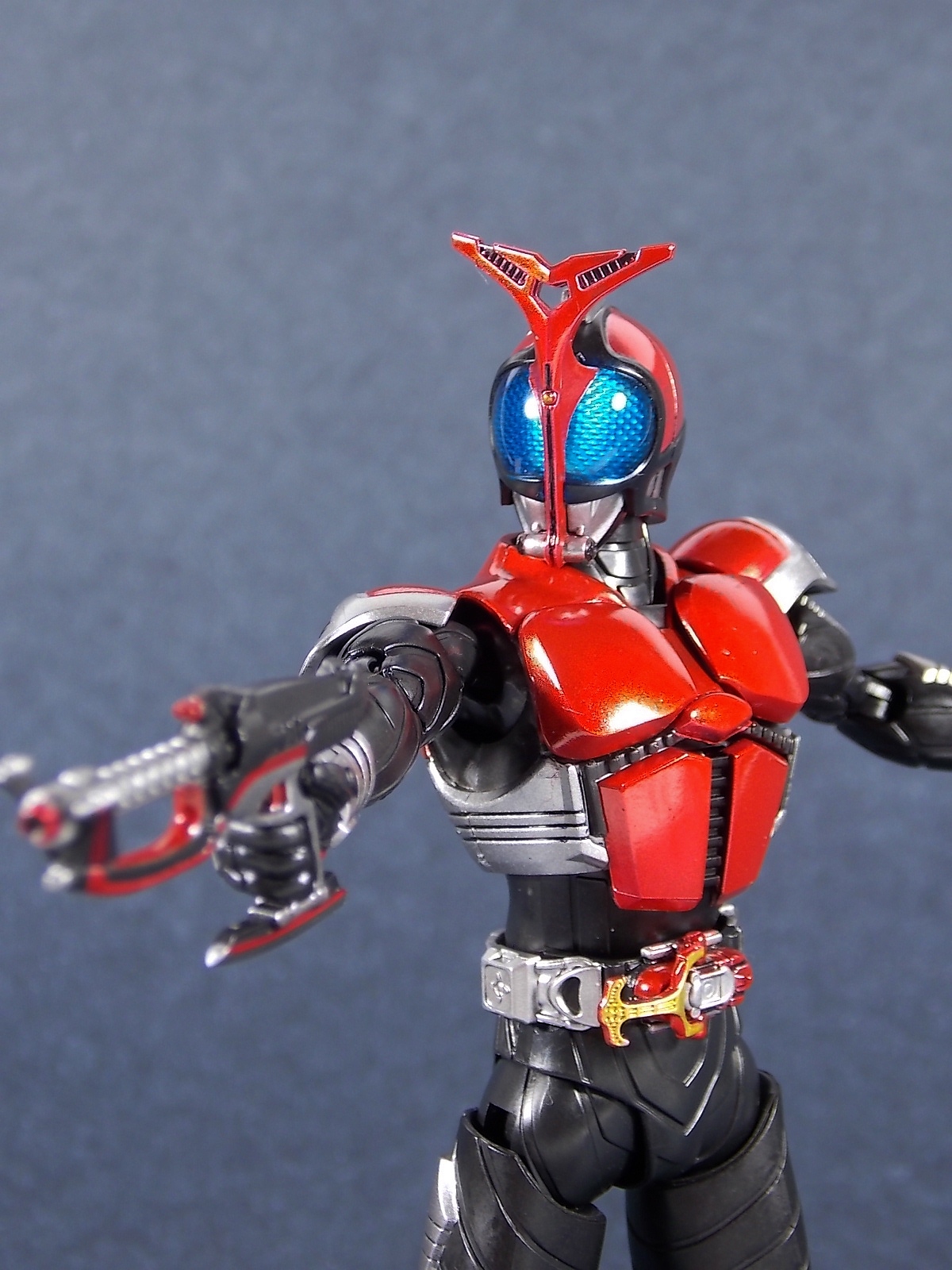 This one has been a long time coming, but S.H. Figuarts Kamen Rider Kabuto Renewal is here! So let's dive right in! Bulk of photos in post #1, continued into post #2! To start, the original Kabuto line of S.H. Figuarts is not terrible. At least they weren't by the standards of the day about 5 years ago. Now however they just don't hold up with current SHF engineering. So Bandai has rectified that with this Renewal release. And wow what an improvement this new figure makes. To start it's been well publicized that Bandai sculpted an entirely new basic human form for Kabuto. This figure and other premium style releases like it from now on (Hibiki etc), will feature this new base body. The improved proportions and articulation afforded by this new sculpt already put it light years ahead of the original figure. Note. I no longer have my original SHF Kabuto. I sold it immediately after the Renewal was first announced in anticipation. So unfortunately I don't have a comparison of the two. But I do have Gattack and Shadowtrooper from the same era to compare to this figure. Renewal Kabuto succeeds in nearly every aspect that Bandai wanted it to. As I mentioned the articulation is nuts on this thing. The new style hips provide a wide and balanced motion that allows you to replicate some of Kabuto's most iconic poses/attacks. The head sculpt is now the appropriate size (with correct colored eyes) compared to the first figure. The shoulder pads are akin to Blade in that they can unhinge for a ton of extra motion. A new style of hands has also been implemented here. The more "figma style" peg hands are introduced to the line with this figure. They were controversial when first revealed, and will likely continue to be for a long time. I just want to say to start, I don't like them. I really thought I would. But I simply don't care for the peg style in hand. They don't seem easier to remove that the old style, and don't make me feel more confident about avoiding breakages. Just because of their design they can spin 360 and bend up/down at the wrist, but they somehow feel more limited than the old style ball joint hands. An odd "hand tree" is also included to store them on. This is neither practical nor well executed. Simply push the pegs from the wrists into shallow grooves on the tree. But there's no indication that any hand belongs in a particular spot. Unfortunately any degree of force applied to get the hands on the trees will pop any you may have successfully gotten on, right back off. The tree also splits in two and can be combined with duplicates of itself from future releases. Again this is far from practical as it falls apart from looking at it the wrong way. As for other accessories Kabuto also includes the 3 versions of his signature weapon. The Kabuto Kunai Gun. The Gun, Axe, and Kunai modes are all included here. Typically the Gun mode is more associated with Masked form than the Rider form this figure represents, but I appreciate the added bonus for the price of the figure. And speaking of bonuses a short S.H.Figuarts development booklet is included which I've included scans of in this gallery. Is Kamen Rider Kabuto Renewal perfect? No, unfortunately the short comings of the new hand/wrist system work against the figure. Is it still one of the best SHF's in the entire line? Hell yes! The new body this figure is based around is absolutely magnificent. Loads of articulation and an absolutely rock solid set of proportions go a long way to making this a fantastic figure. You should definitely pick one of these bad boys up.