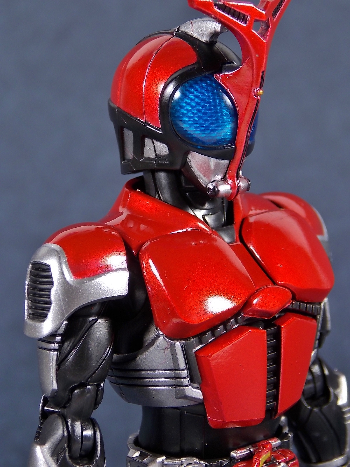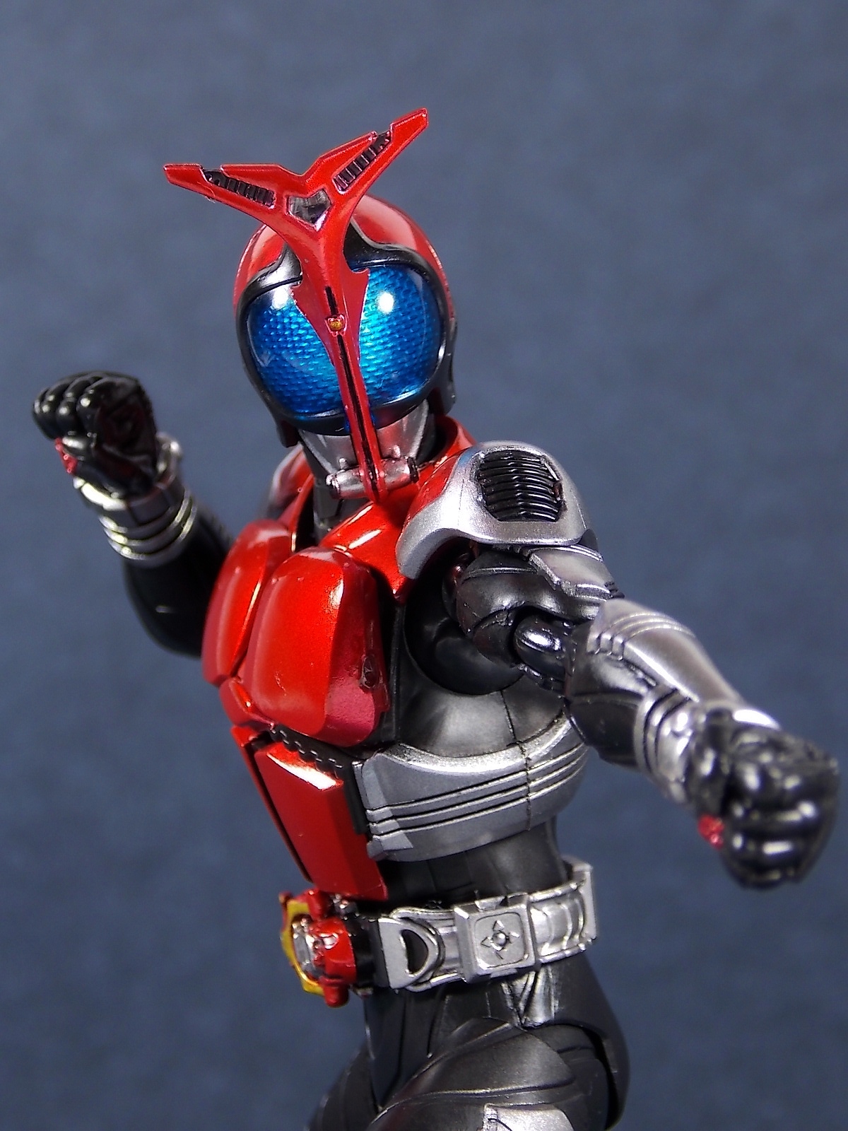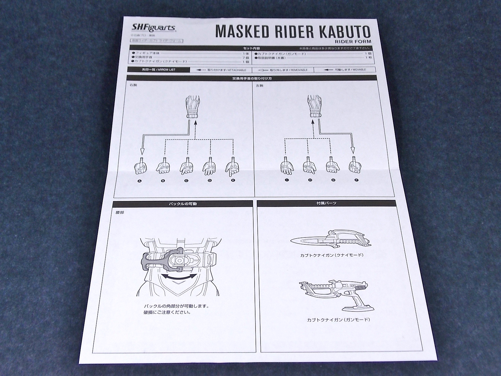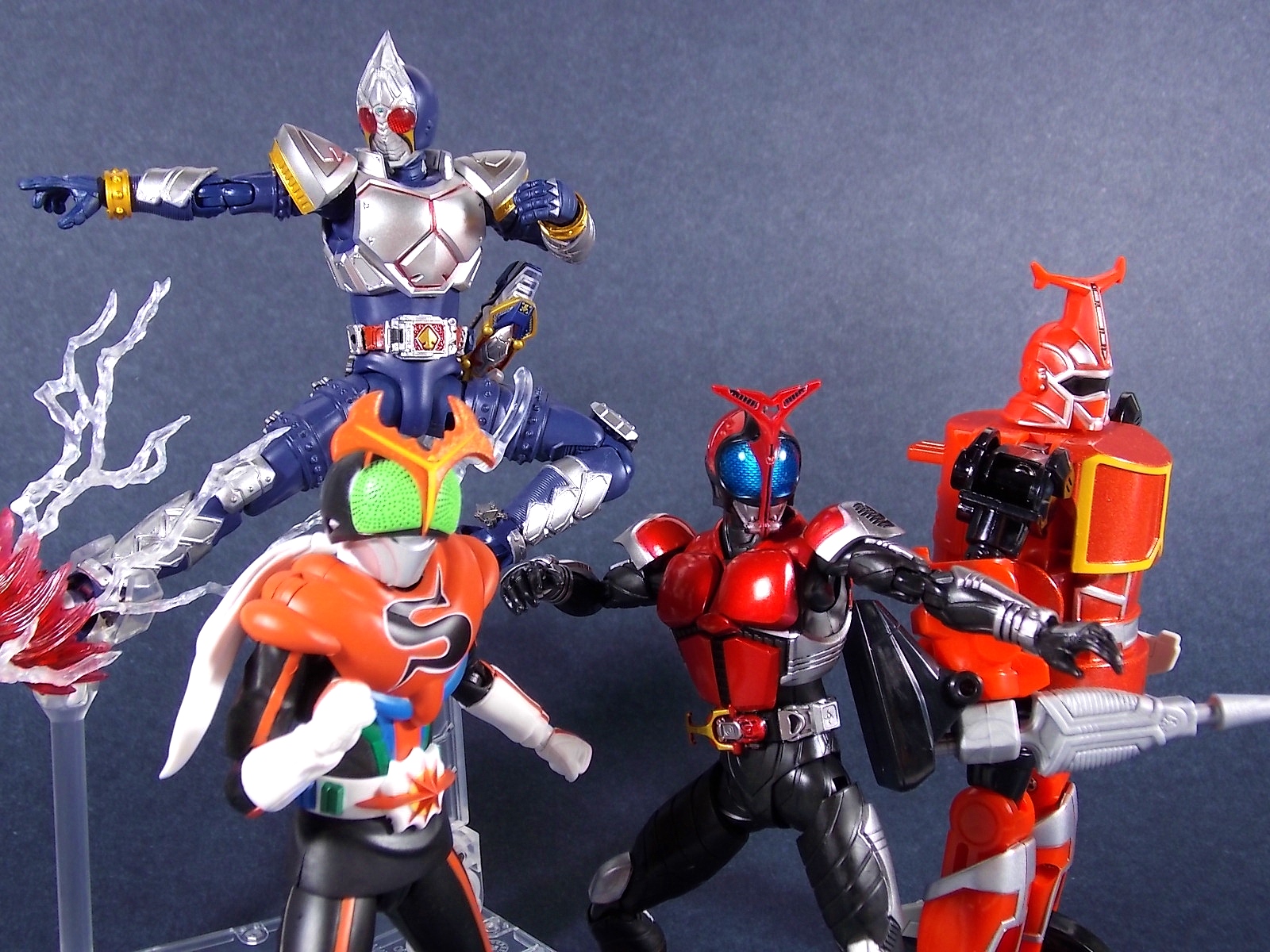 This one has been a long time coming, but S.H. Figuarts Kamen Rider Kabuto Renewal is here! So let's dive right in! Bulk of photos in post #1, continued into post #2! To start, the original Kabuto line of S.H. Figuarts is not terrible. At least they weren't by the standards of the day about 5 years ago. Now however they just don't hold up with current SHF engineering. So Bandai has rectified that with this Renewal release. And wow what an improvement this new figure makes. To start it's been well publicized that Bandai sculpted an entirely new basic human form for Kabuto. This figure and other premium style releases like it from now on (Hibiki etc), will feature this new base body. The improved proportions and articulation afforded by this new sculpt already put it light years ahead of the original figure. Note. I no longer have my original SHF Kabuto. I sold it immediately after the Renewal was first announced in anticipation. So unfortunately I don't have a comparison of the two. But I do have Gattack and Shadowtrooper from the same era to compare to this figure. Renewal Kabuto succeeds in nearly every aspect that Bandai wanted it to. As I mentioned the articulation is nuts on this thing. The new style hips provide a wide and balanced motion that allows you to replicate some of Kabuto's most iconic poses/attacks. The head sculpt is now the appropriate size (with correct colored eyes) compared to the first figure. The shoulder pads are akin to Blade in that they can unhinge for a ton of extra motion. A new style of hands has also been implemented here. The more "figma style" peg hands are introduced to the line with this figure. They were controversial when first revealed, and will likely continue to be for a long time. I just want to say to start, I don't like them. I really thought I would. But I simply don't care for the peg style in hand. They don't seem easier to remove that the old style, and don't make me feel more confident about avoiding breakages. Just because of their design they can spin 360 and bend up/down at the wrist, but they somehow feel more limited than the old style ball joint hands. An odd "hand tree" is also included to store them on. This is neither practical nor well executed. Simply push the pegs from the wrists into shallow grooves on the tree. But there's no indication that any hand belongs in a particular spot. Unfortunately any degree of force applied to get the hands on the trees will pop any you may have successfully gotten on, right back off. The tree also splits in two and can be combined with duplicates of itself from future releases. Again this is far from practical as it falls apart from looking at it the wrong way. As for other accessories Kabuto also includes the 3 versions of his signature weapon. The Kabuto Kunai Gun. The Gun, Axe, and Kunai modes are all included here. Typically the Gun mode is more associated with Masked form than the Rider form this figure represents, but I appreciate the added bonus for the price of the figure. And speaking of bonuses a short S.H.Figuarts development booklet is included which I've included scans of in this gallery. Is Kamen Rider Kabuto Renewal perfect? No, unfortunately the short comings of the new hand/wrist system work against the figure. Is it still one of the best SHF's in the entire line? Hell yes! The new body this figure is based around is absolutely magnificent. Loads of articulation and an absolutely rock solid set of proportions go a long way to making this a fantastic figure. You should definitely pick one of these bad boys up.