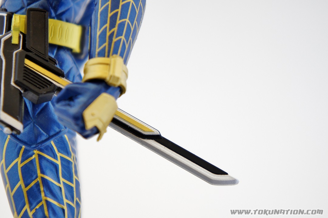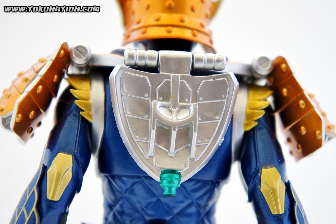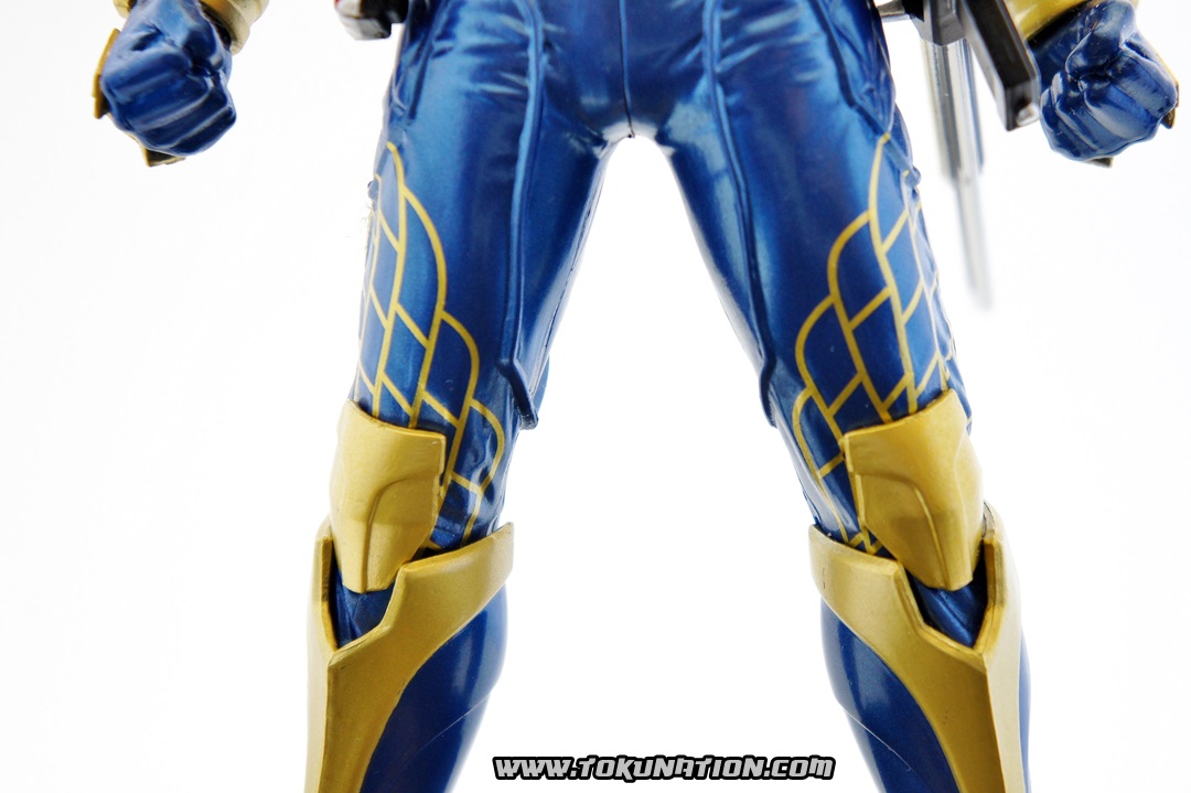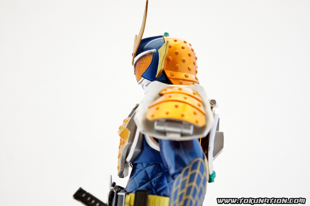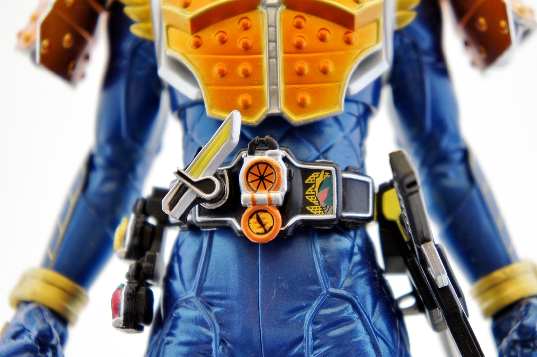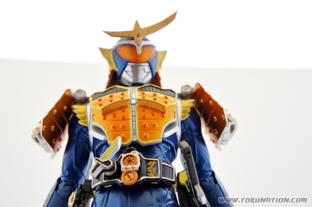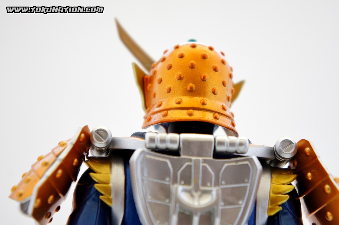 Known for making relatively good looking statues of the Kamen Rider heroes, Banpresto released their Kamen Rider Gaim statue of our favorite fruit-hero not long after the show began airing. Having seen a few vague previews of this statue, I thought it looked pretty neat, so I managed to snag one from Mandarake not long after they were released. And I was wrong - this thing doesn't look pretty neat. This thing looks absolutely gorgeous. The statue is, with the stand that the figure is on, over a foot tall (12 inches plus). The statue itself is hallow inside, making it incredibly light weight. The parts that you see (the Musou Saber, the crest on Gaim's helmet) may frighten you as "easily broken pieces", but that is not the case - the crest is actually made of either hardened rubber or super soft plastic, meaning that if the statue fell, that piece wouldn't be the first to pop off. The saber is a bit harder than that and, if you aim it right, could easily poke an eye out, but it's not going to cut you. The amount of detail that went in to this statue is incredible. The part that stands out to me the most is the effort that went in to the visor - as you can see in pictures, it just looks beautiful. Even the Sengoku Driver receives a nice bit of love that keeps it faithful to the show. The Pine and Ichigo Lockseeds that are attached to his belt do not have the same level of detail that you see with the rest of the statue, but it's a very minor complaint - they are so small and, compared to the rest of the figure, is easily forgivable. They do have some intricate details (the Pine Lockseed has the ridges and bumps actually sculpted in). Needless to say - if you're more than a casual fan of Kamen Rider Gaim then you need to pick this statue up. Banpresto outdid themselves with the Kamen Rider Gaim statue, and I cannot recommend it enough. While I am collecting nearly all the figurines from the Kamen Rider Gaim various toy lines, this will stand as a centerpiece to that collection because it just looks so cool. It's difficult to find this item still for sale in new condition at a reasonable price - however if you're familiar with Mandarake they have listings (as of the time of this post) for 1,500 yen. (For reference, I purchased mine for 2,500 yen).