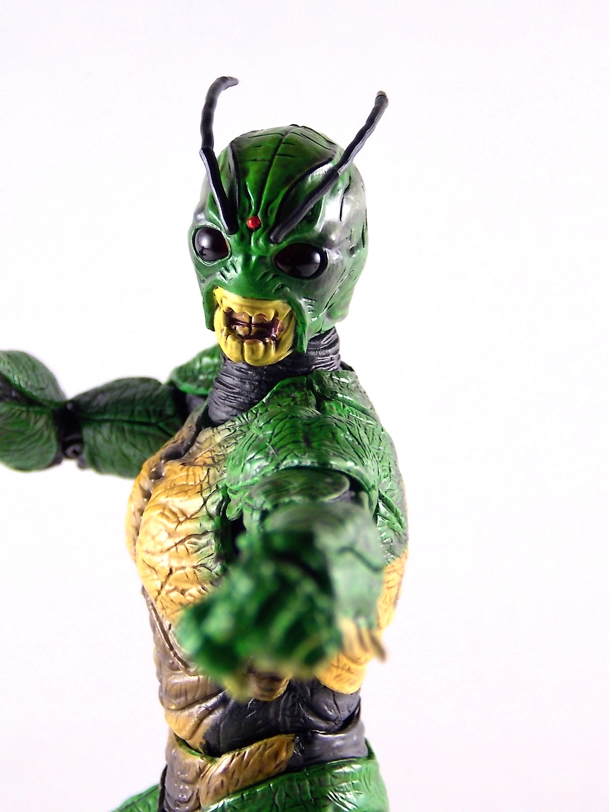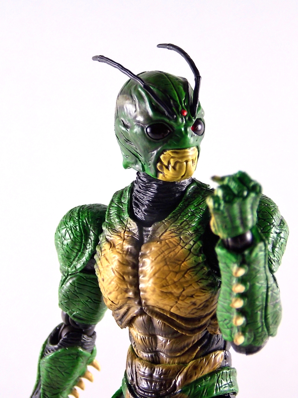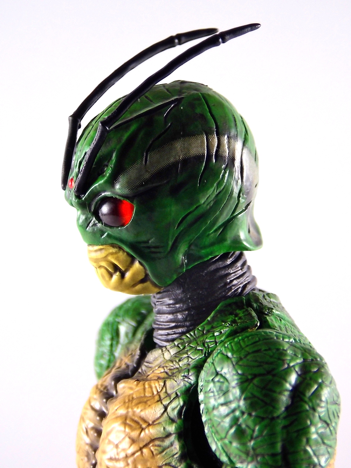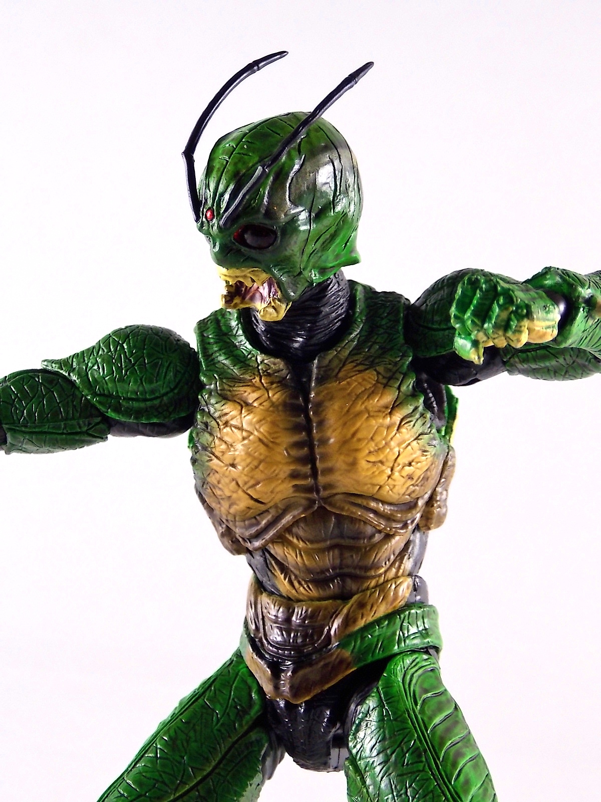 ![]() I need to watch Shin. I downloaded it ages ago but never got around to it. Anyway, it's a nice looking figure. The paint really pops and it's actually surprisingly bright for a dark character (It might actually be too bright. His green looks more fitted to ZO or J). I particularly liked the multiple heads, rather than having a functioning jaw on one head and just giving you 3 options. But you missed one crucial picture. ![]() You have a Stronger, Amazon, Ichigou, and Riderman, and I'm assuming a DCD and Kuuga, right?
