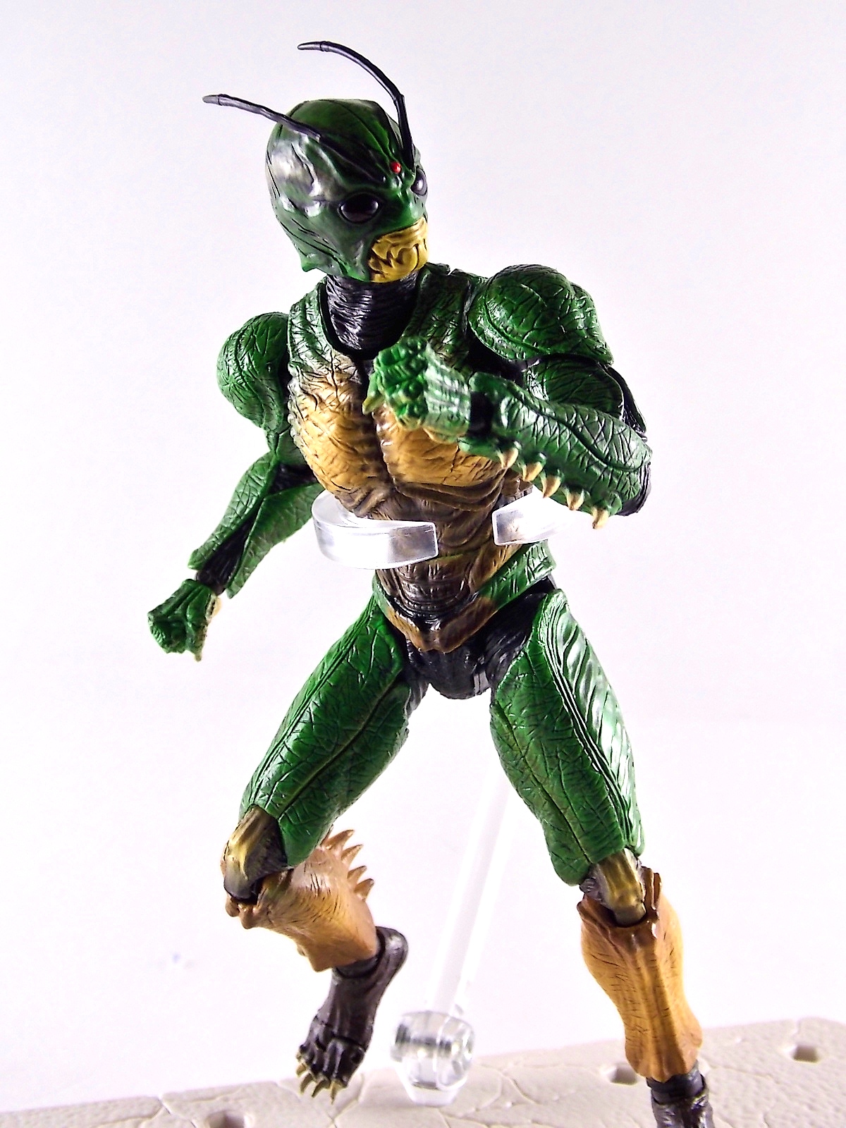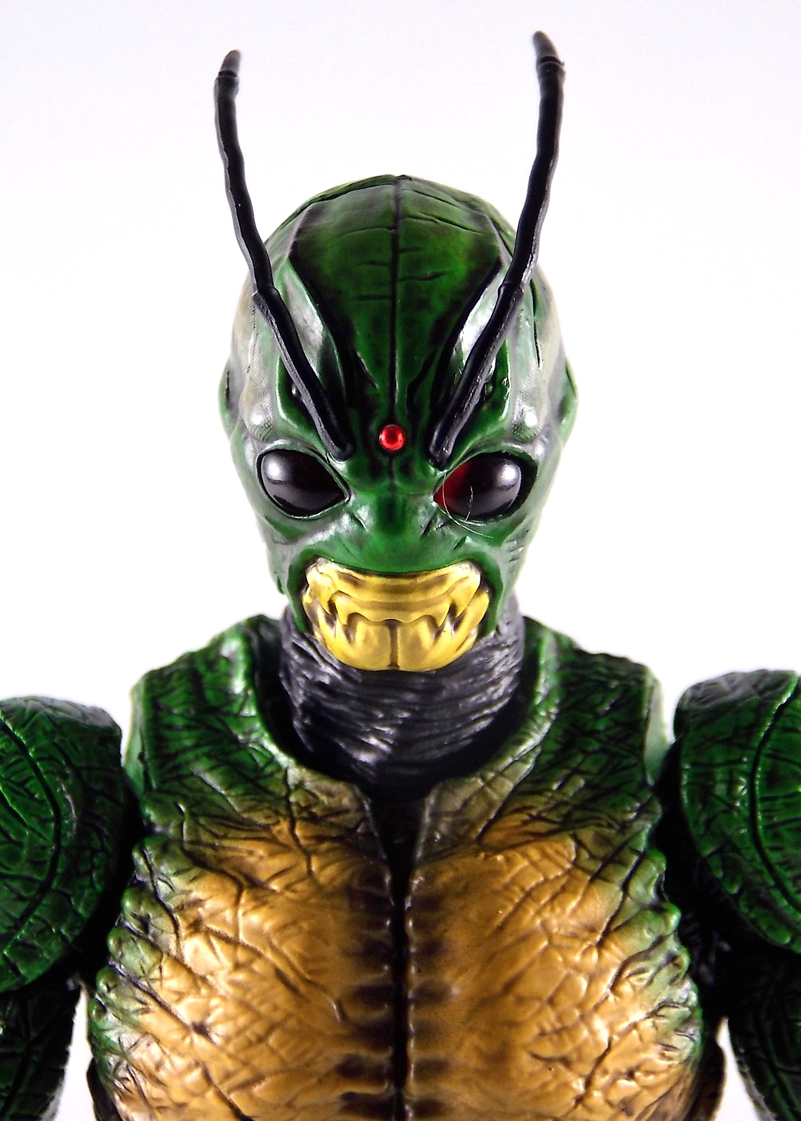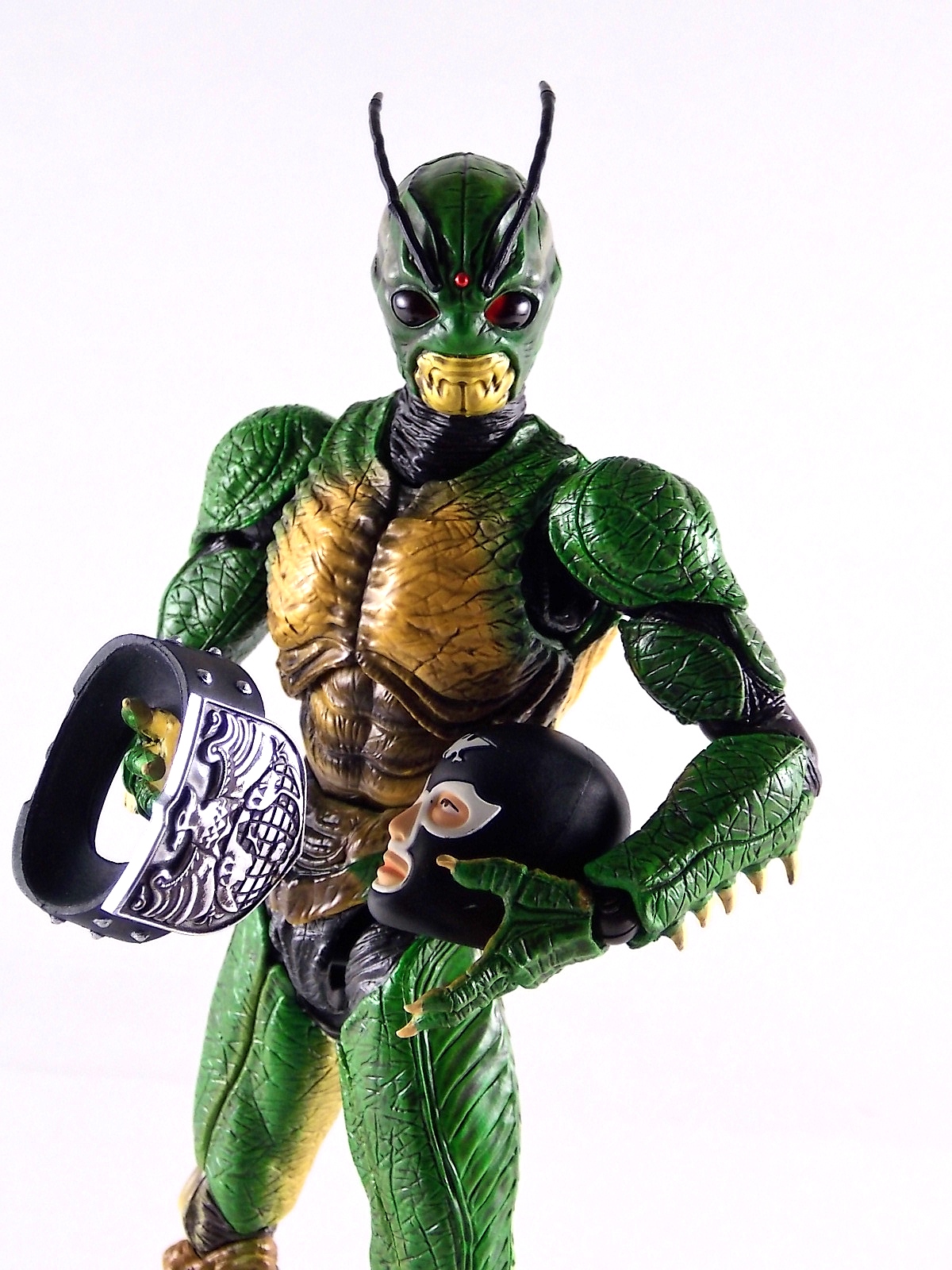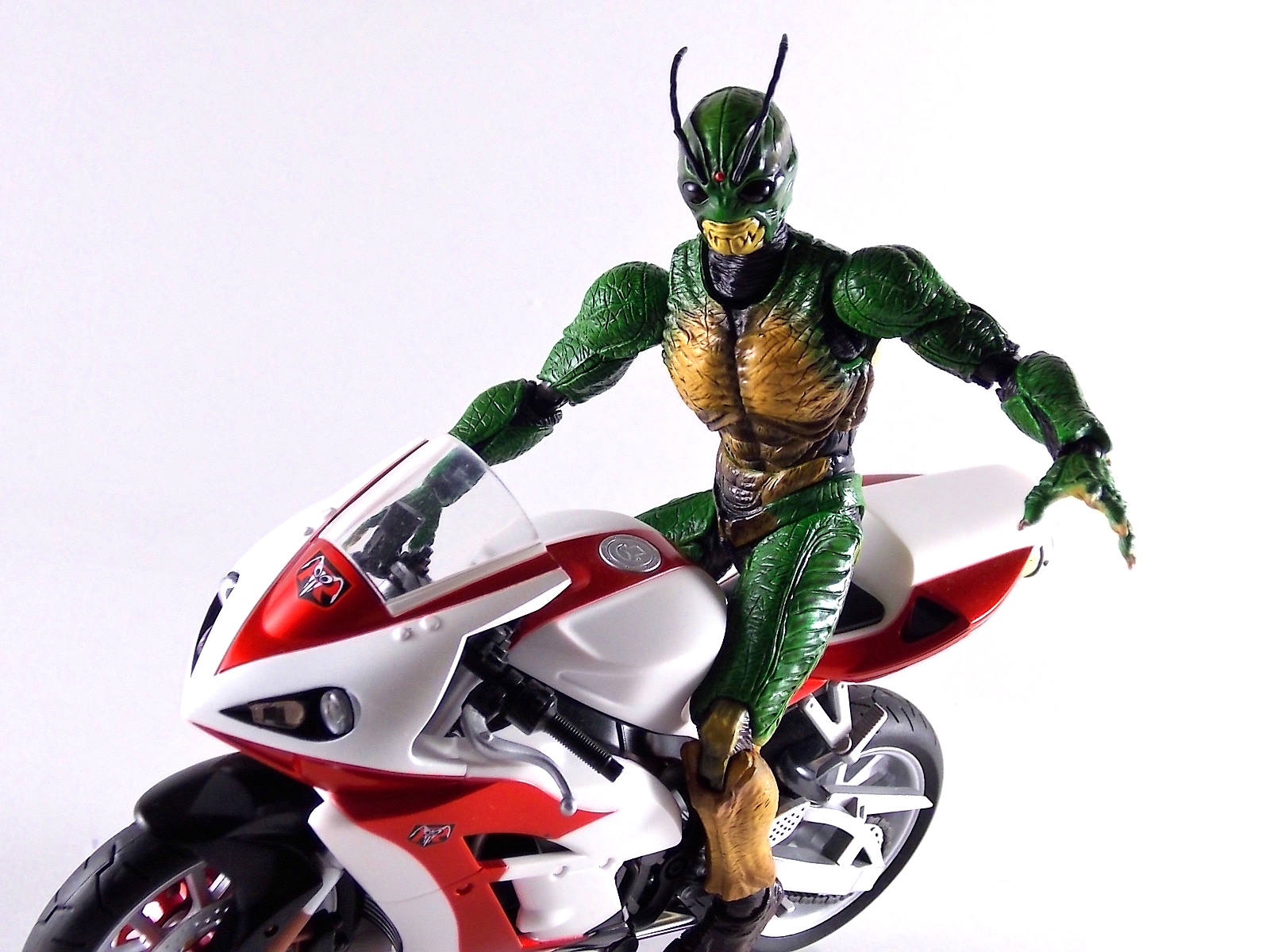 ![]() I need to watch Shin. I downloaded it ages ago but never got around to it. Anyway, it's a nice looking figure. The paint really pops and it's actually surprisingly bright for a dark character (It might actually be too bright. His green looks more fitted to ZO or J). I particularly liked the multiple heads, rather than having a functioning jaw on one head and just giving you 3 options. But you missed one crucial picture. ![]() You have a Stronger, Amazon, Ichigou, and Riderman, and I'm assuming a DCD and Kuuga, right?