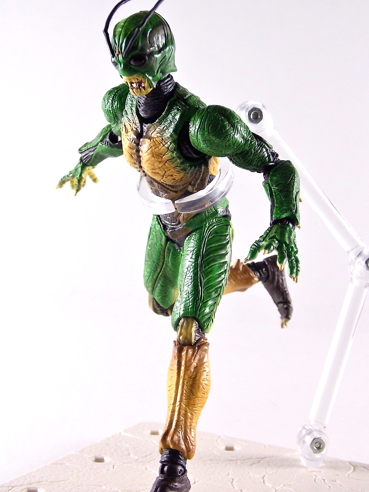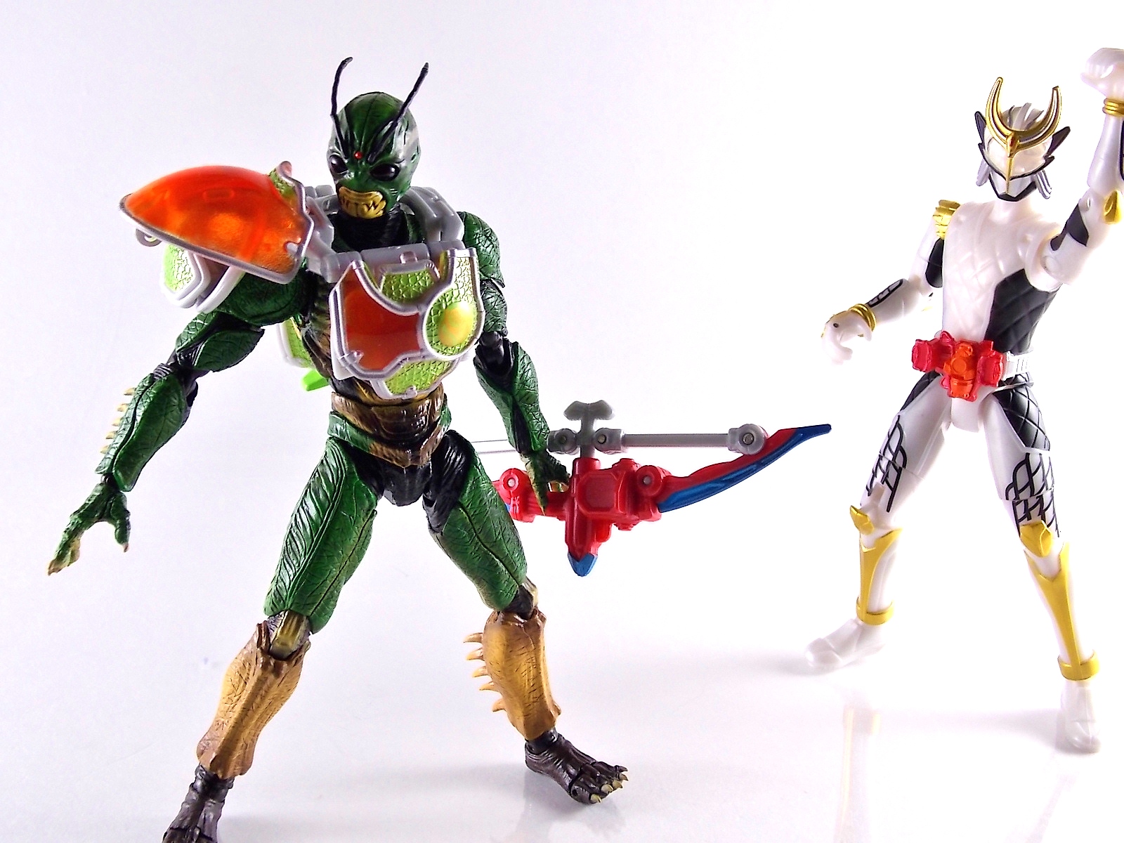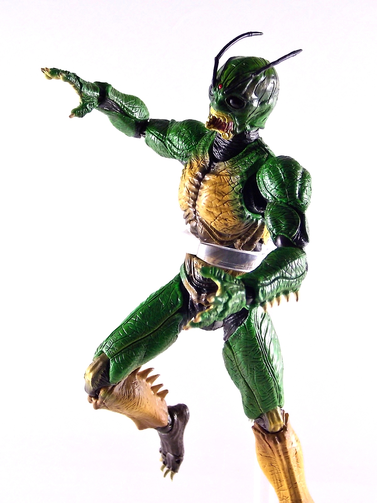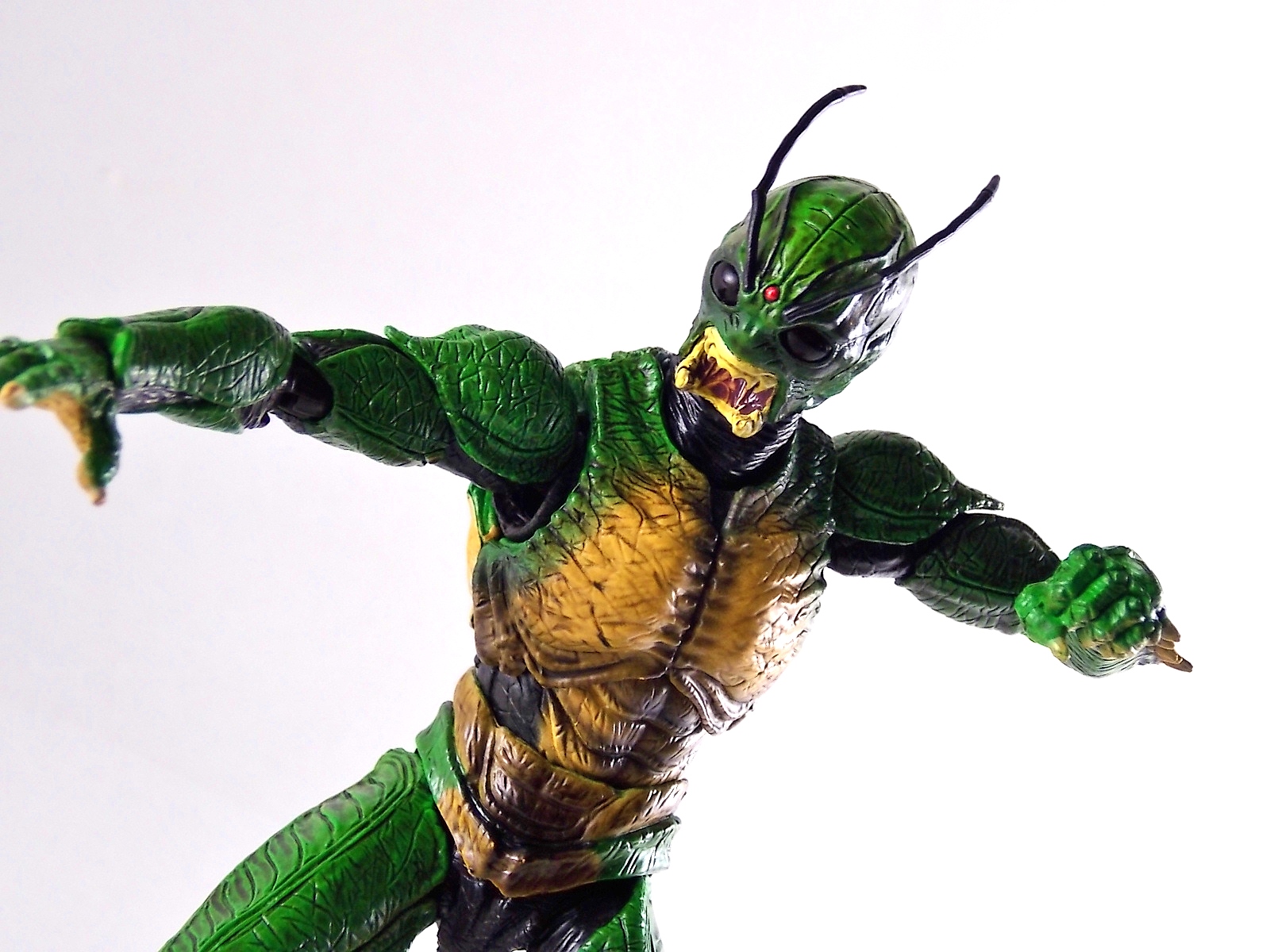 ![]() I need to watch Shin. I downloaded it ages ago but never got around to it. Anyway, it's a nice looking figure. The paint really pops and it's actually surprisingly bright for a dark character (It might actually be too bright. His green looks more fitted to ZO or J). I particularly liked the multiple heads, rather than having a functioning jaw on one head and just giving you 3 options. But you missed one crucial picture. ![]() You have a Stronger, Amazon, Ichigou, and Riderman, and I'm assuming a DCD and Kuuga, right?