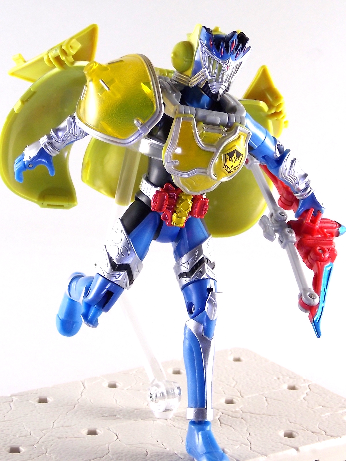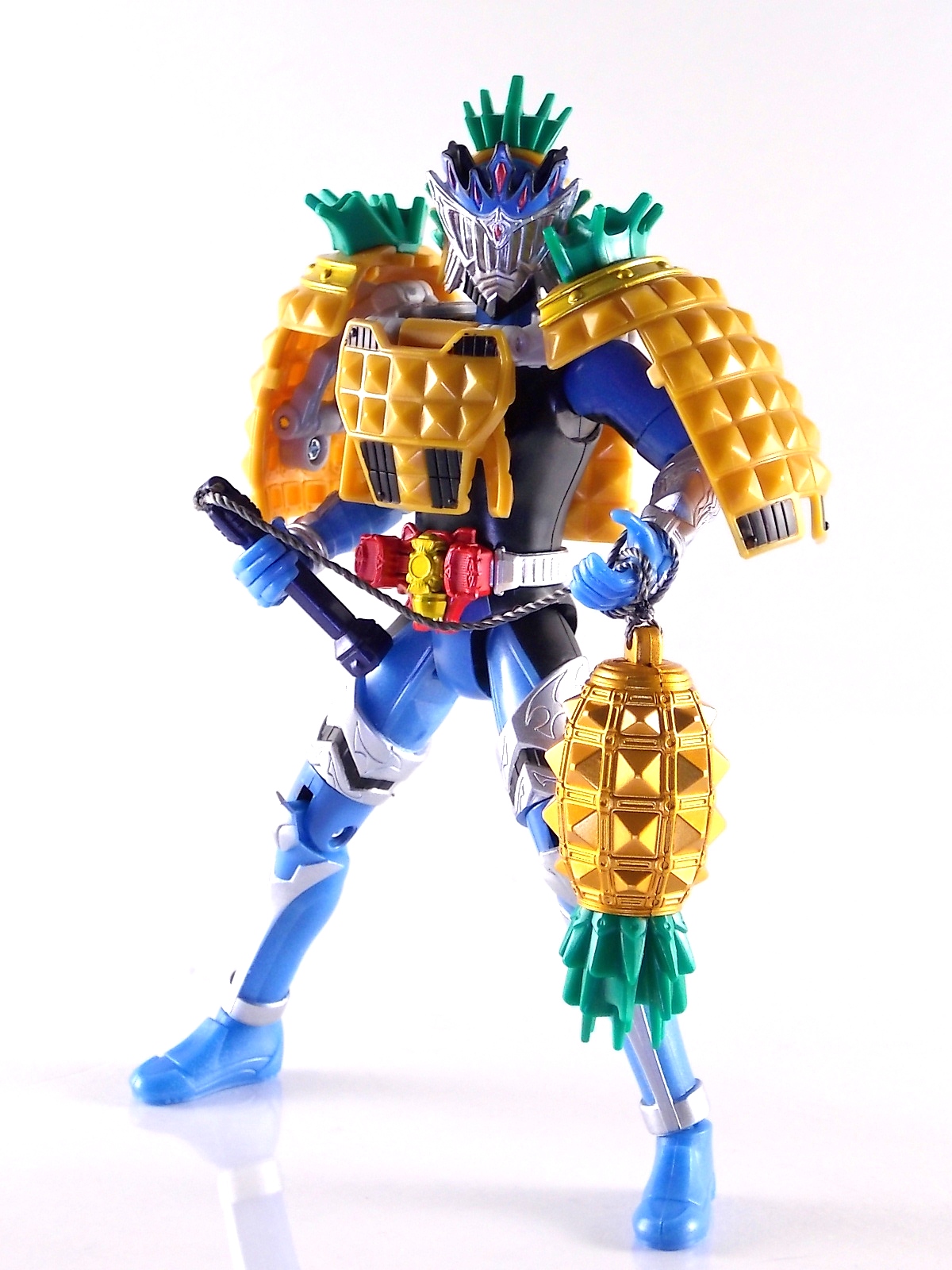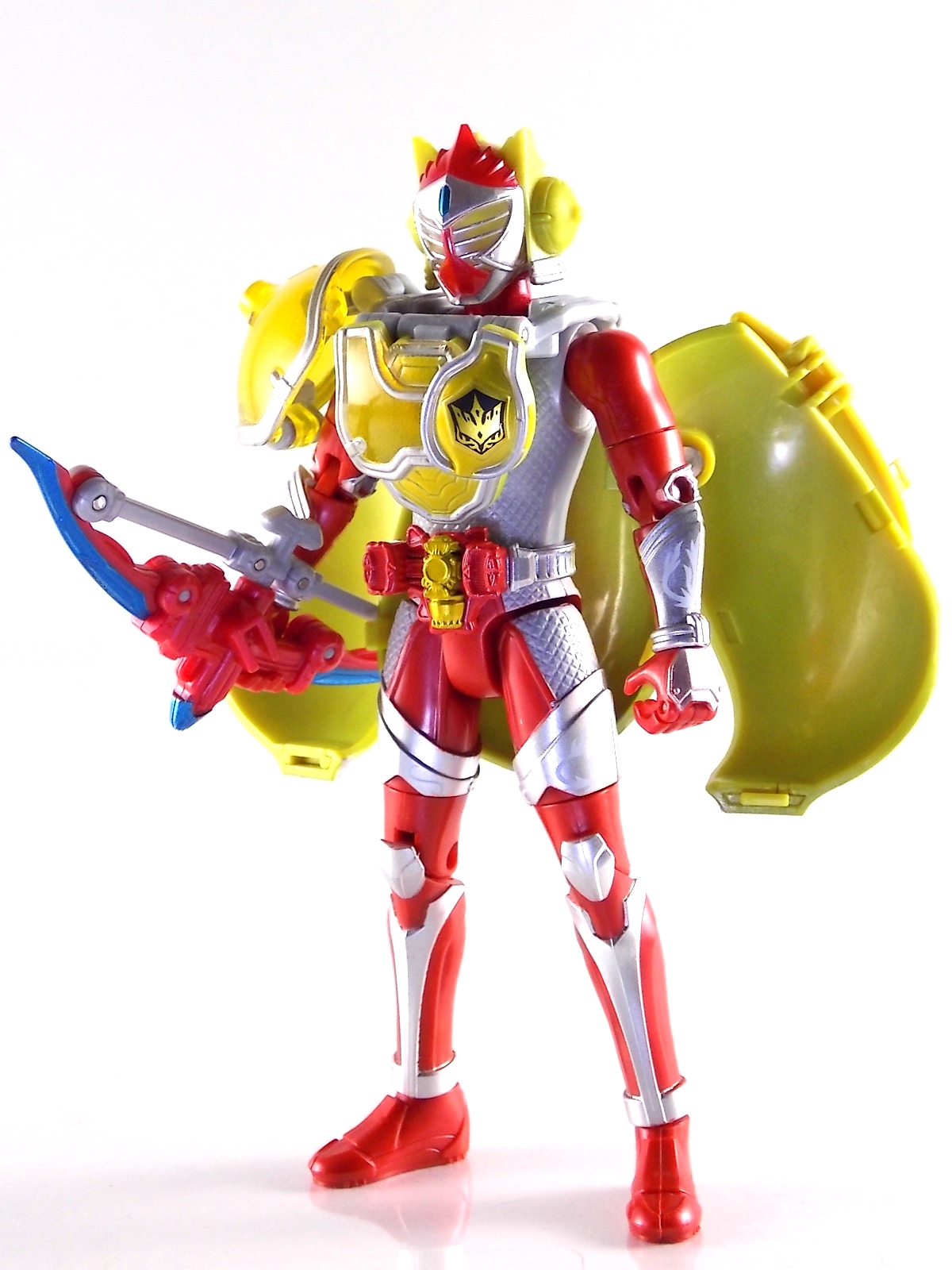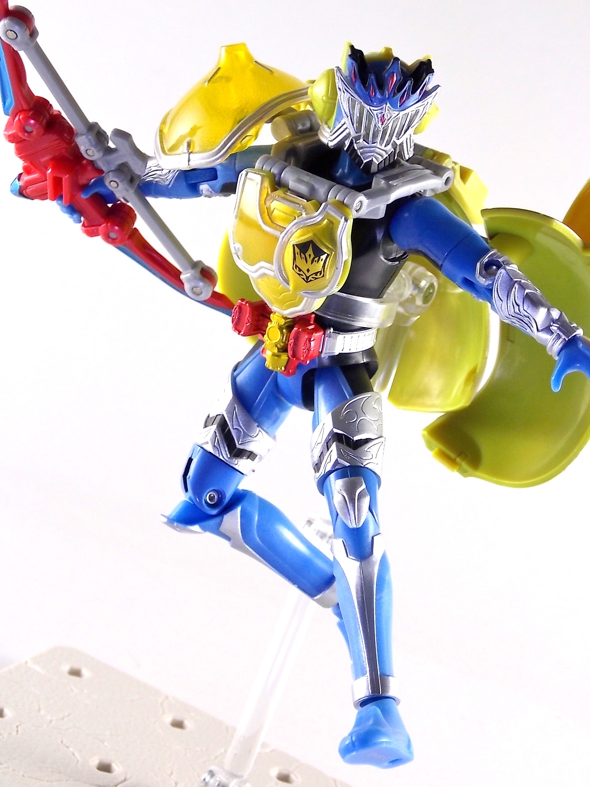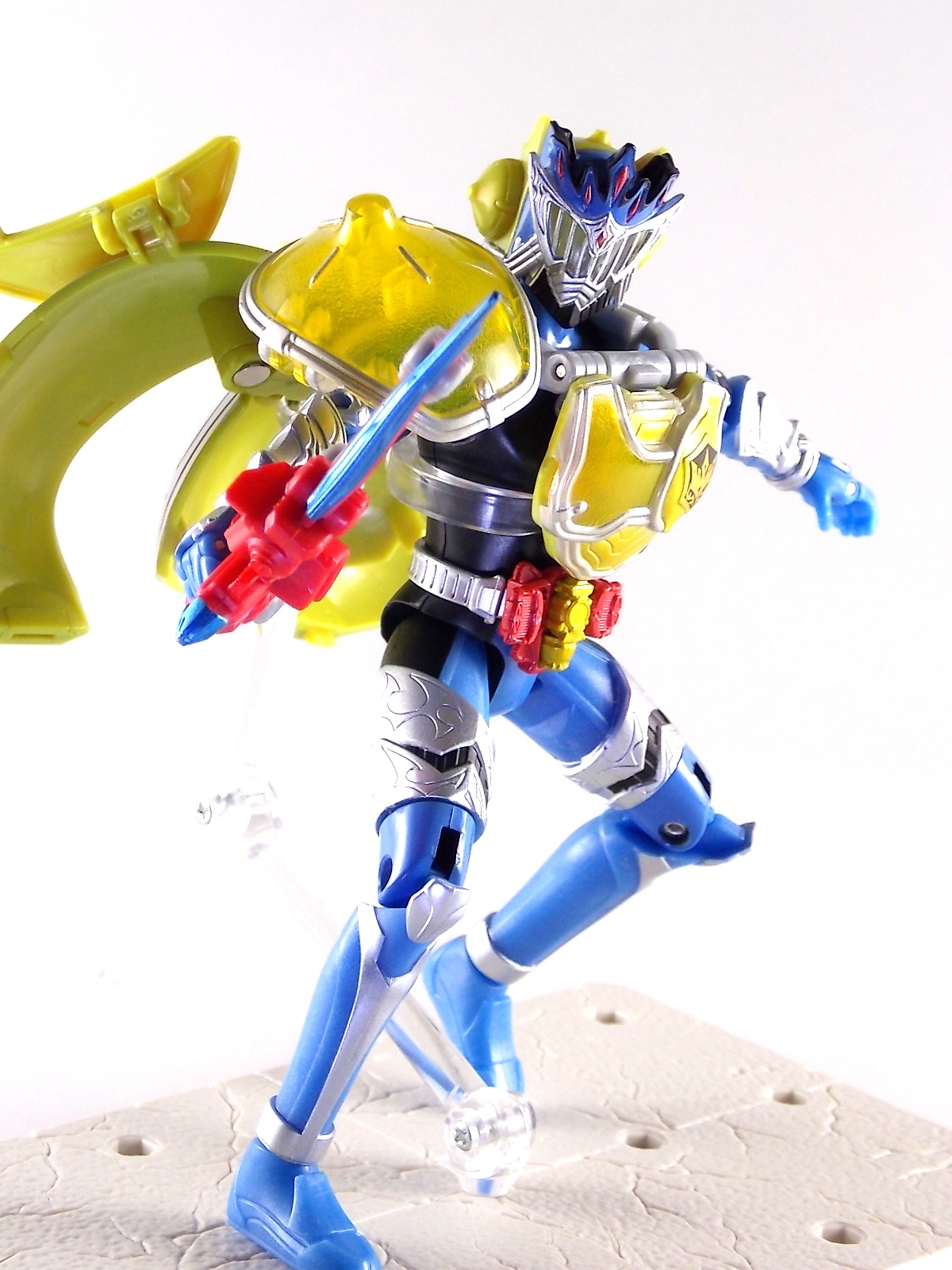 Arms Change Kamen Rider Duke was just released mere weeks ago. Timed perfectly to his rise back to prominence in the Kamen Rider Gaim series. Seen very elusively up to this point in the show, Duke is shaping up as quite the nice villain. But let's see how this figure shapes up shall we? **Post #2 Contains Additional images ***Post #3 Contains a Baron Lemon Energy Arms Custom Tutorial Arms Change Energy/Kamen Rider Duke is the 12th release in this highly popular line following the release of AC11 Kachidoki Arms Gaim. Duke is of course one of only two Energy Riders available at retail. The two remaining new generation riders, Marika & Sigurd, will be released as a Bandai Premium 2-pack. Duke is packaged in the now standard Arms Change box and plastic shell and includes his Lemon Energy Arms and the customary Sonic Arrow accessory. At a base body level Duke is the same sculpt as Baron. Whether intentional from the outset or not this is pretty damn awesome considering Baron's eventual use of the Lemon Energy Arms. Though that suit in the show was a quickly thrown together piece using spare parts, the sharing of a basic body hear makes it seem almost prophetic. Some of the textures from Baron's body have been removed in favor of more smooth surfaces on Duke. And the paint appear to be a bit more lavish and bright. The baby blue Duke is primarily cast in is especially gorgeous. The head is of course new, and oddly, much larger than the other AC's. Duke simply put has a big wide head. Onto the actual Lemon Energy Arms. At first glance most people assumed based on it's transformation that these Arms were just a remold of Mango Arms. However that was a very incorrect assumption. The mistake is easy to make considering the near identical transformation these two share. The way the shell opens, the cape pieces fold back and out, and even the way the helmet/visor stores. But they simply aren't the same at all. Lemon Energy is an entirely new mold. When combined with Duke the Lemon Arms look fantastic. However Duke's beautiful coloring lends itself well to most Arms, but he shines brightest with his Lemon. Luckily Lemon Arms also look good on just about every other rider as well, especially on Gaim, Zangetsu, and Ryugen. This figure also seems to be an improvement on the line from a QC perspective. Much more work was put into it's paint apps than any of the others. The joints are a bit tighter, the paint crisper, and the Sonic Arrows bow action feature is much stronger on this guy. Once again Bandai of japan has knocked it out of the park with Arms change! Up next in our series of Arms Change gallery is the first of the Bandai Premium Exclusives. ACPB01 Bujin Gaim Blood Orange Arms!