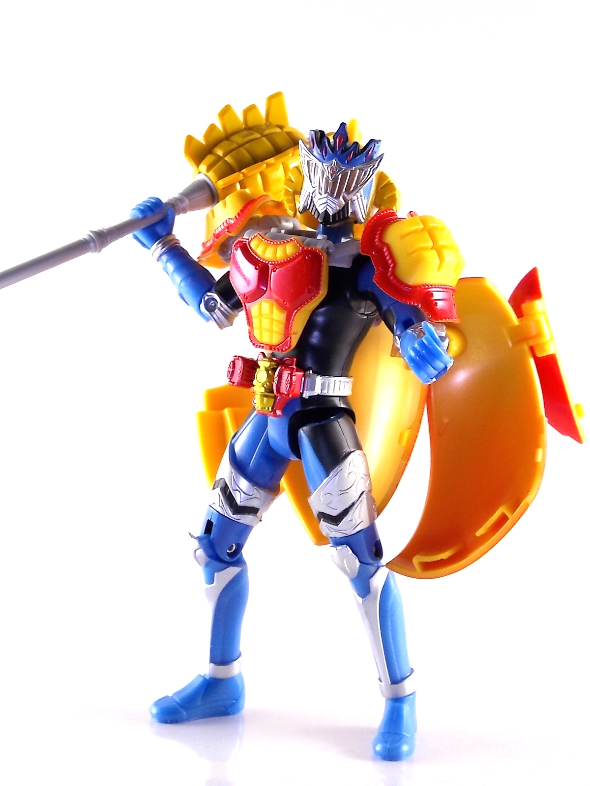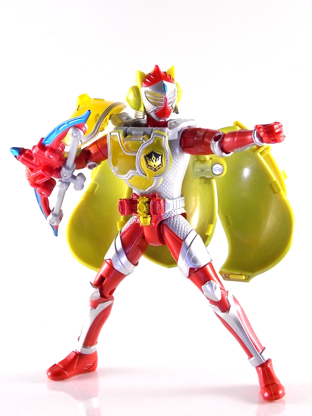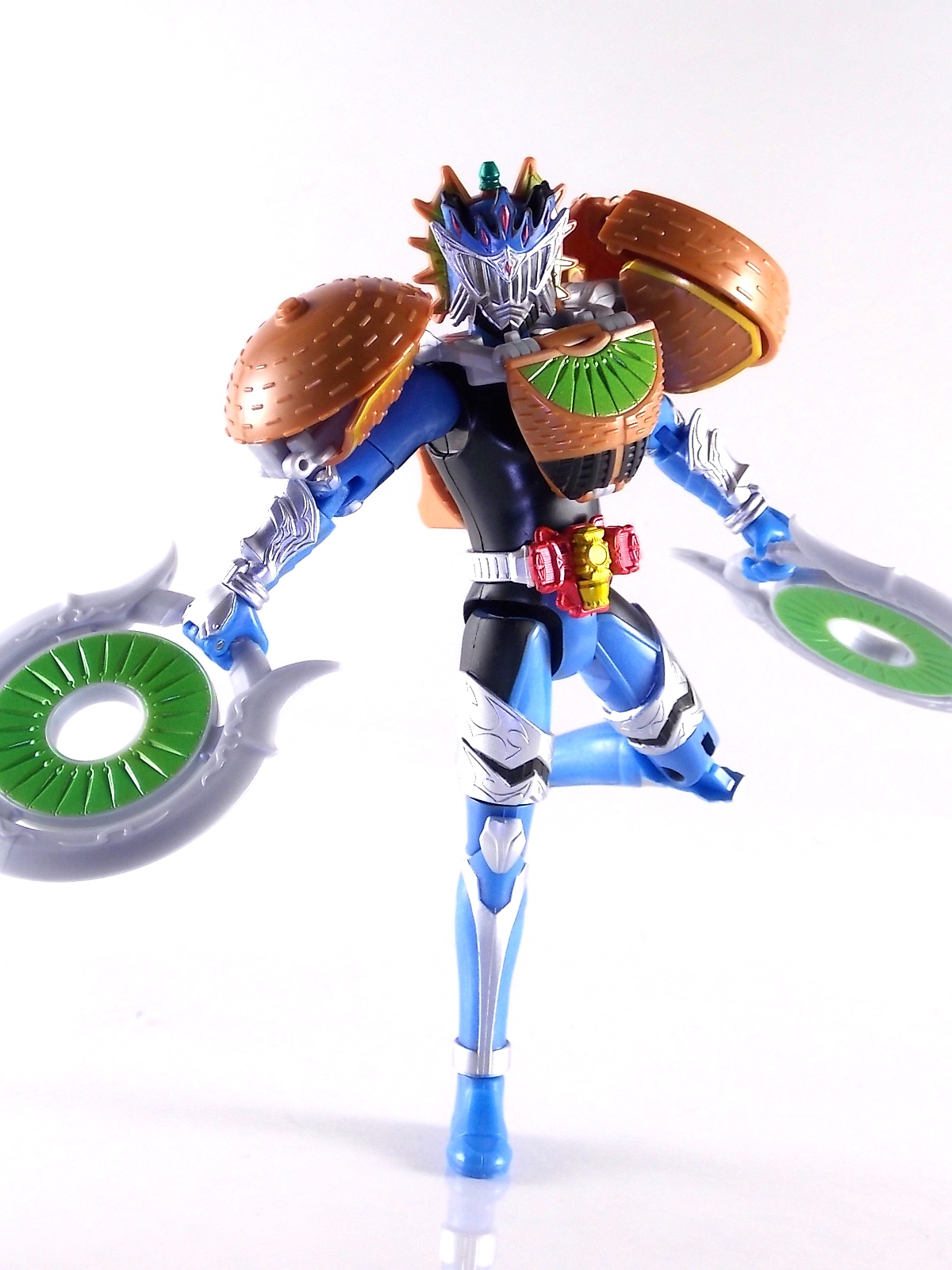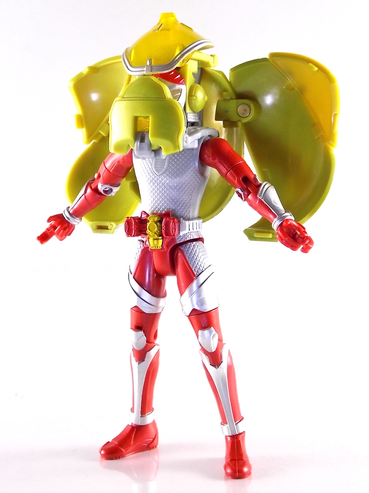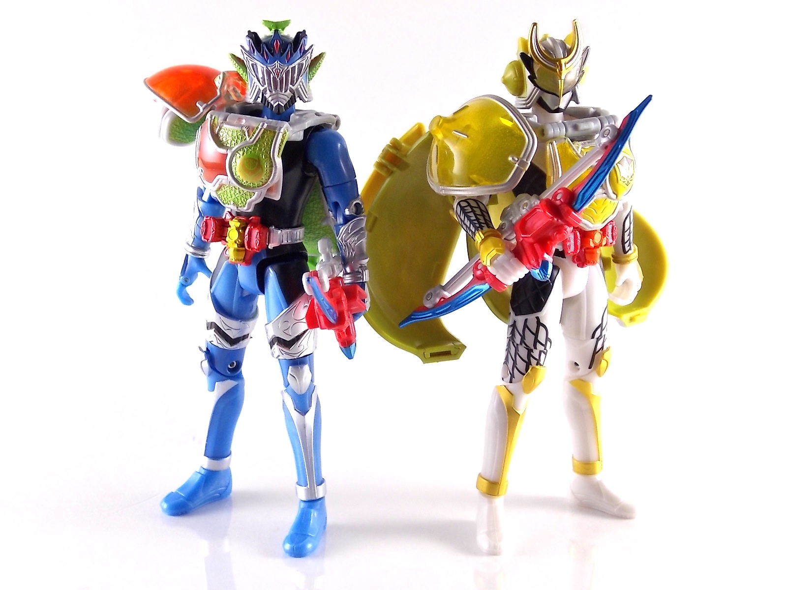 Arms Change Kamen Rider Duke was just released mere weeks ago. Timed perfectly to his rise back to prominence in the Kamen Rider Gaim series. Seen very elusively up to this point in the show, Duke is shaping up as quite the nice villain. But let's see how this figure shapes up shall we? **Post #2 Contains Additional images ***Post #3 Contains a Baron Lemon Energy Arms Custom Tutorial Arms Change Energy/Kamen Rider Duke is the 12th release in this highly popular line following the release of AC11 Kachidoki Arms Gaim. Duke is of course one of only two Energy Riders available at retail. The two remaining new generation riders, Marika & Sigurd, will be released as a Bandai Premium 2-pack. Duke is packaged in the now standard Arms Change box and plastic shell and includes his Lemon Energy Arms and the customary Sonic Arrow accessory. At a base body level Duke is the same sculpt as Baron. Whether intentional from the outset or not this is pretty damn awesome considering Baron's eventual use of the Lemon Energy Arms. Though that suit in the show was a quickly thrown together piece using spare parts, the sharing of a basic body hear makes it seem almost prophetic. Some of the textures from Baron's body have been removed in favor of more smooth surfaces on Duke. And the paint appear to be a bit more lavish and bright. The baby blue Duke is primarily cast in is especially gorgeous. The head is of course new, and oddly, much larger than the other AC's. Duke simply put has a big wide head. Onto the actual Lemon Energy Arms. At first glance most people assumed based on it's transformation that these Arms were just a remold of Mango Arms. However that was a very incorrect assumption. The mistake is easy to make considering the near identical transformation these two share. The way the shell opens, the cape pieces fold back and out, and even the way the helmet/visor stores. But they simply aren't the same at all. Lemon Energy is an entirely new mold. When combined with Duke the Lemon Arms look fantastic. However Duke's beautiful coloring lends itself well to most Arms, but he shines brightest with his Lemon. Luckily Lemon Arms also look good on just about every other rider as well, especially on Gaim, Zangetsu, and Ryugen. This figure also seems to be an improvement on the line from a QC perspective. Much more work was put into it's paint apps than any of the others. The joints are a bit tighter, the paint crisper, and the Sonic Arrows bow action feature is much stronger on this guy. Once again Bandai of japan has knocked it out of the park with Arms change! Up next in our series of Arms Change gallery is the first of the Bandai Premium Exclusives. ACPB01 Bujin Gaim Blood Orange Arms!