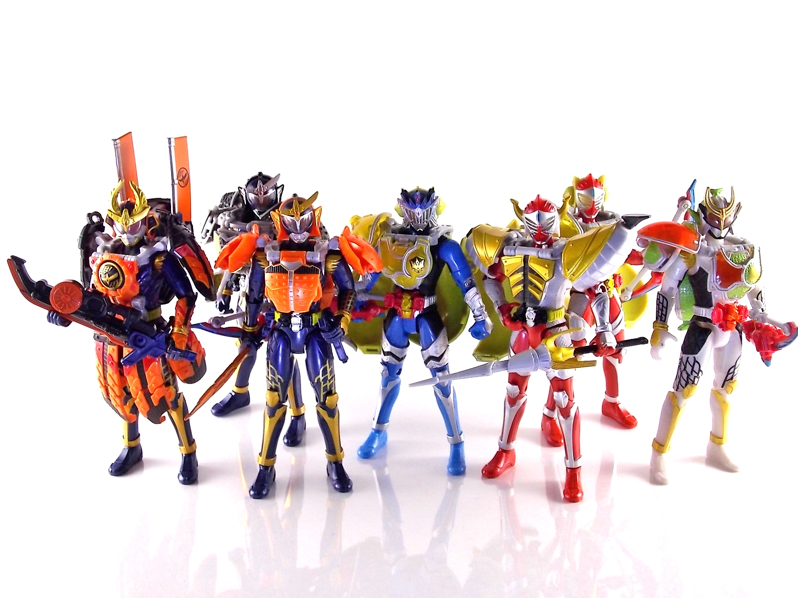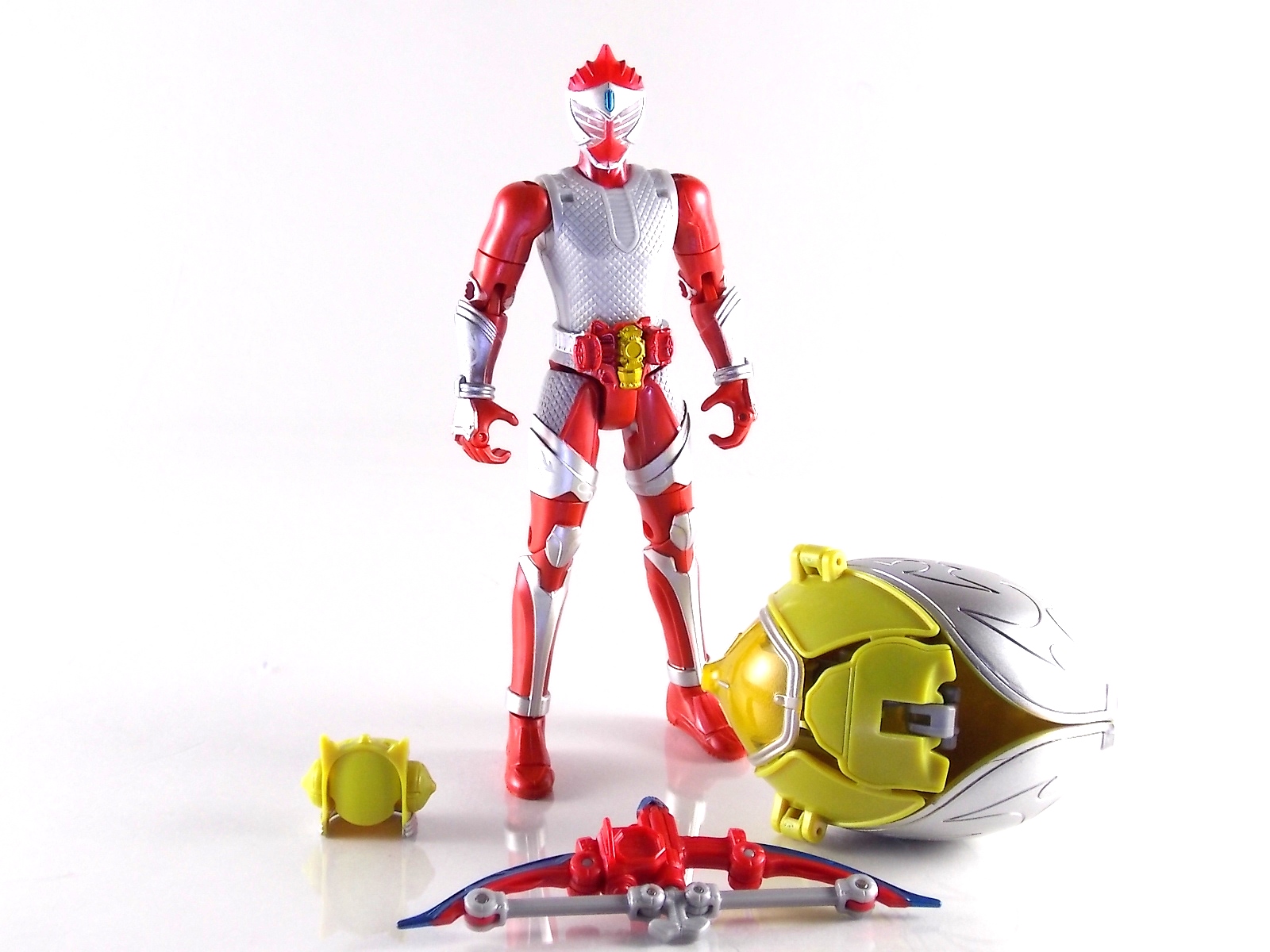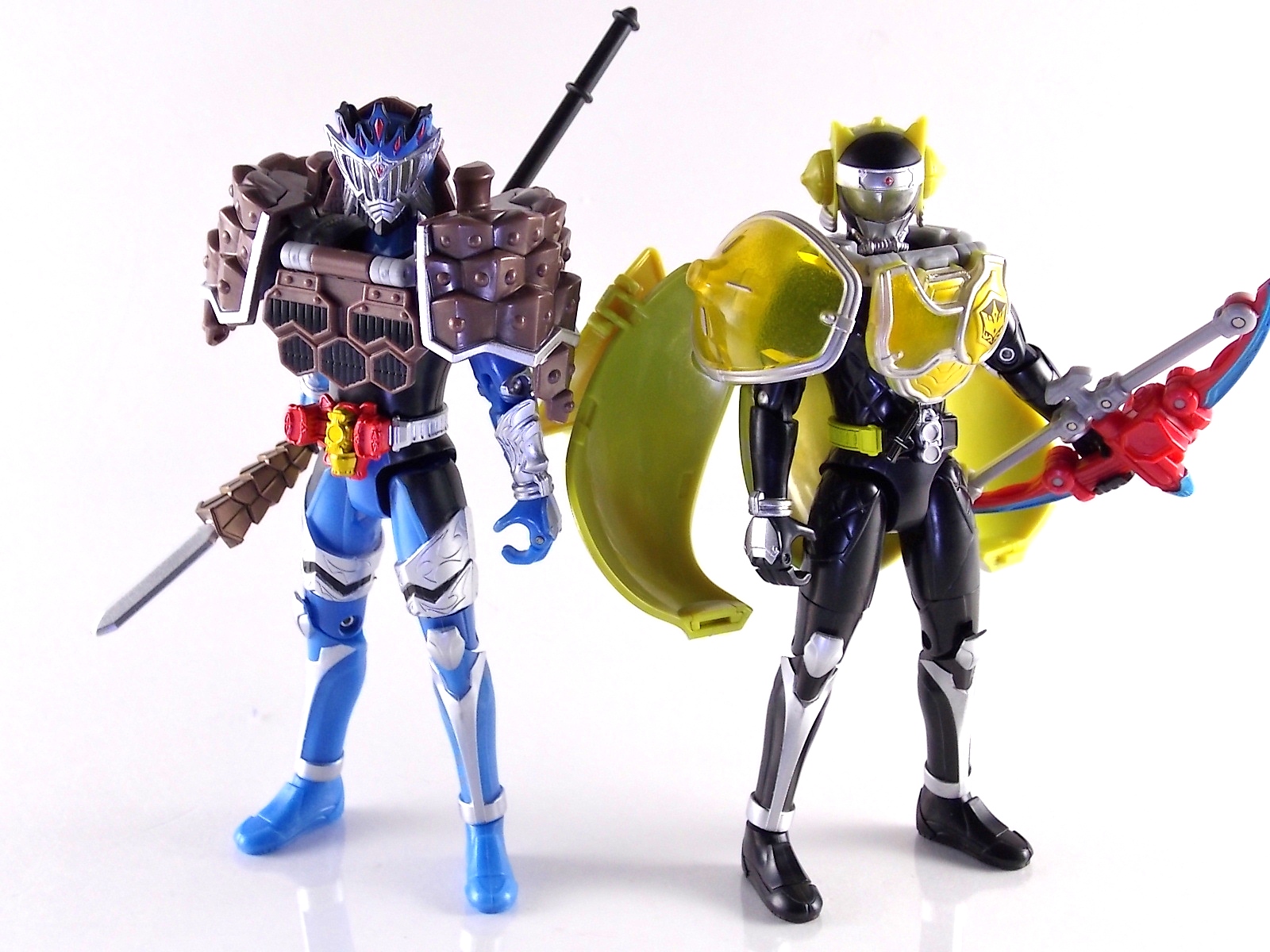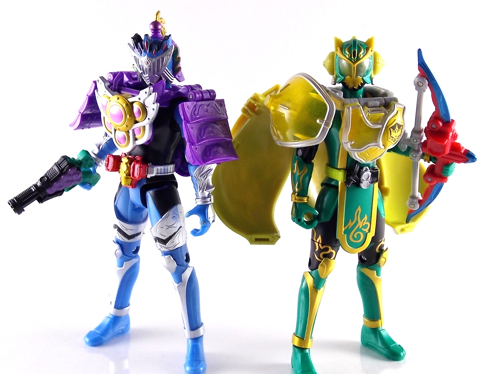 Arms Change Kamen Rider Duke was just released mere weeks ago. Timed perfectly to his rise back to prominence in the Kamen Rider Gaim series. Seen very elusively up to this point in the show, Duke is shaping up as quite the nice villain. But let's see how this figure shapes up shall we? **Post #2 Contains Additional images ***Post #3 Contains a Baron Lemon Energy Arms Custom Tutorial Arms Change Energy/Kamen Rider Duke is the 12th release in this highly popular line following the release of AC11 Kachidoki Arms Gaim. Duke is of course one of only two Energy Riders available at retail. The two remaining new generation riders, Marika & Sigurd, will be released as a Bandai Premium 2-pack. Duke is packaged in the now standard Arms Change box and plastic shell and includes his Lemon Energy Arms and the customary Sonic Arrow accessory. At a base body level Duke is the same sculpt as Baron. Whether intentional from the outset or not this is pretty damn awesome considering Baron's eventual use of the Lemon Energy Arms. Though that suit in the show was a quickly thrown together piece using spare parts, the sharing of a basic body hear makes it seem almost prophetic. Some of the textures from Baron's body have been removed in favor of more smooth surfaces on Duke. And the paint appear to be a bit more lavish and bright. The baby blue Duke is primarily cast in is especially gorgeous. The head is of course new, and oddly, much larger than the other AC's. Duke simply put has a big wide head. Onto the actual Lemon Energy Arms. At first glance most people assumed based on it's transformation that these Arms were just a remold of Mango Arms. However that was a very incorrect assumption. The mistake is easy to make considering the near identical transformation these two share. The way the shell opens, the cape pieces fold back and out, and even the way the helmet/visor stores. But they simply aren't the same at all. Lemon Energy is an entirely new mold. When combined with Duke the Lemon Arms look fantastic. However Duke's beautiful coloring lends itself well to most Arms, but he shines brightest with his Lemon. Luckily Lemon Arms also look good on just about every other rider as well, especially on Gaim, Zangetsu, and Ryugen. This figure also seems to be an improvement on the line from a QC perspective. Much more work was put into it's paint apps than any of the others. The joints are a bit tighter, the paint crisper, and the Sonic Arrows bow action feature is much stronger on this guy. Once again Bandai of japan has knocked it out of the park with Arms change! Up next in our series of Arms Change gallery is the first of the Bandai Premium Exclusives. ACPB01 Bujin Gaim Blood Orange Arms!