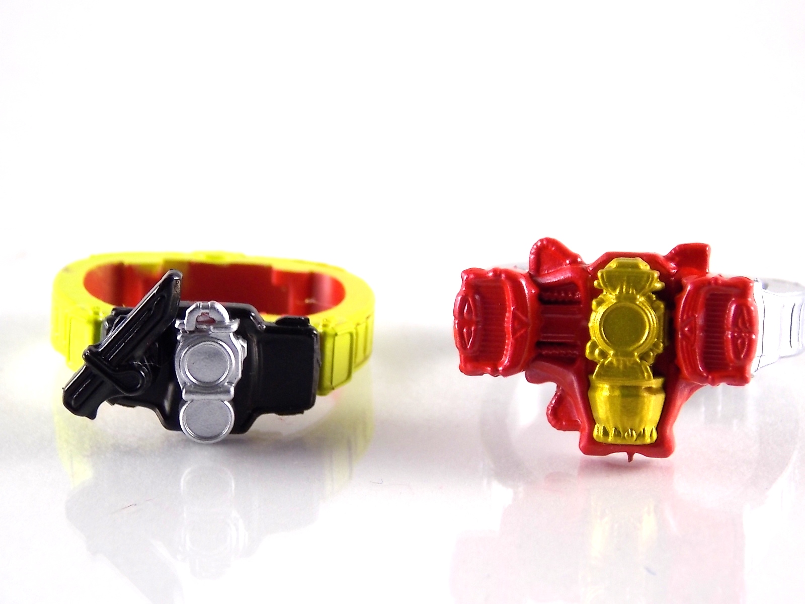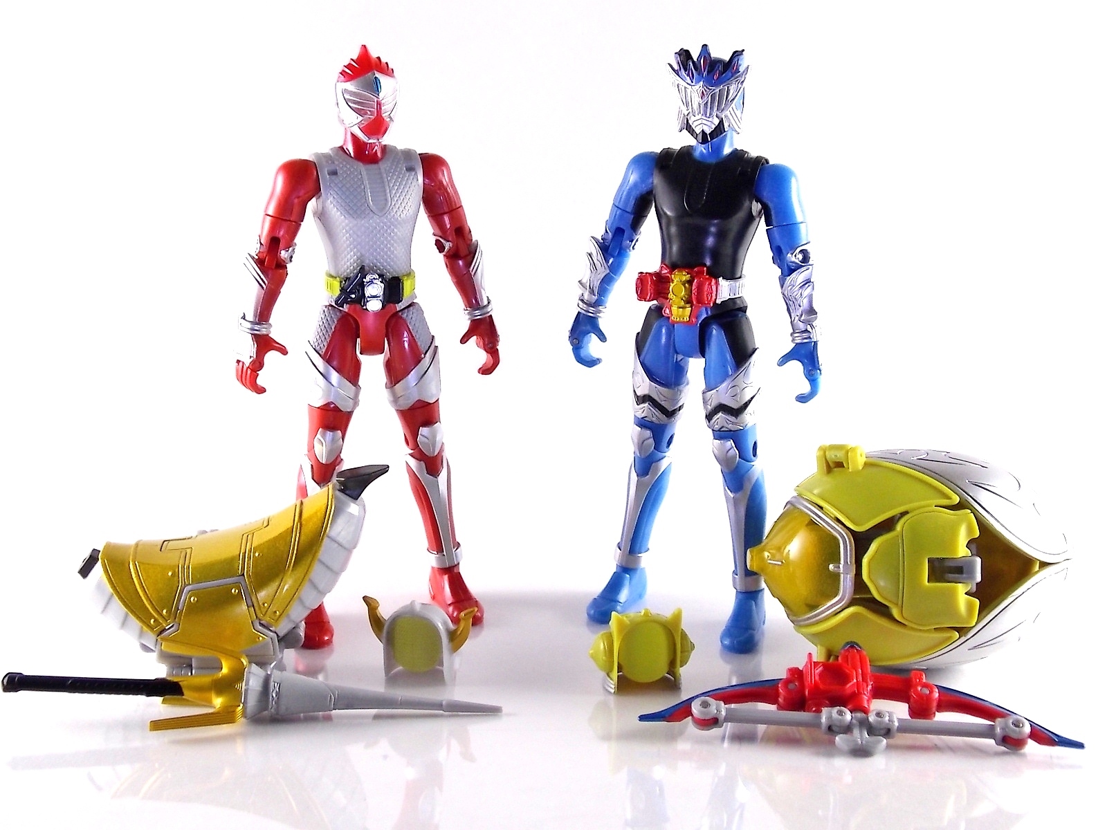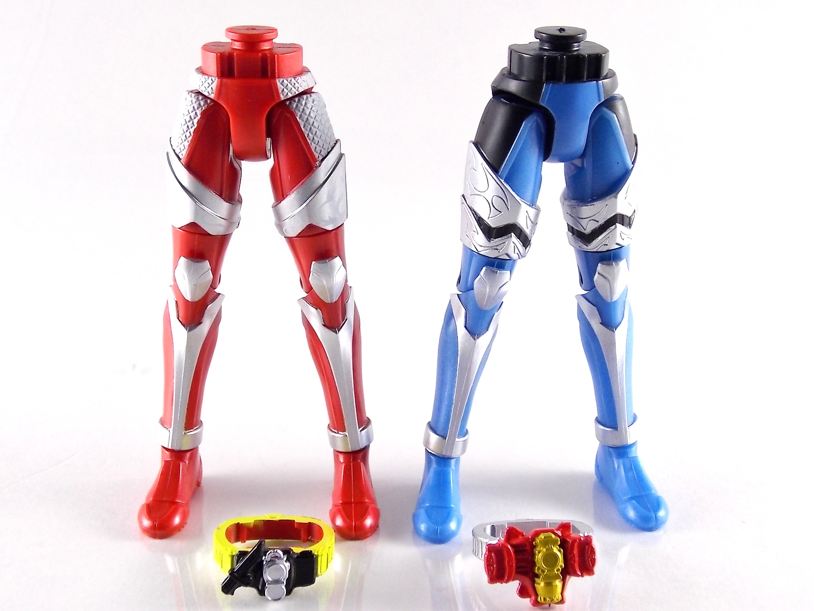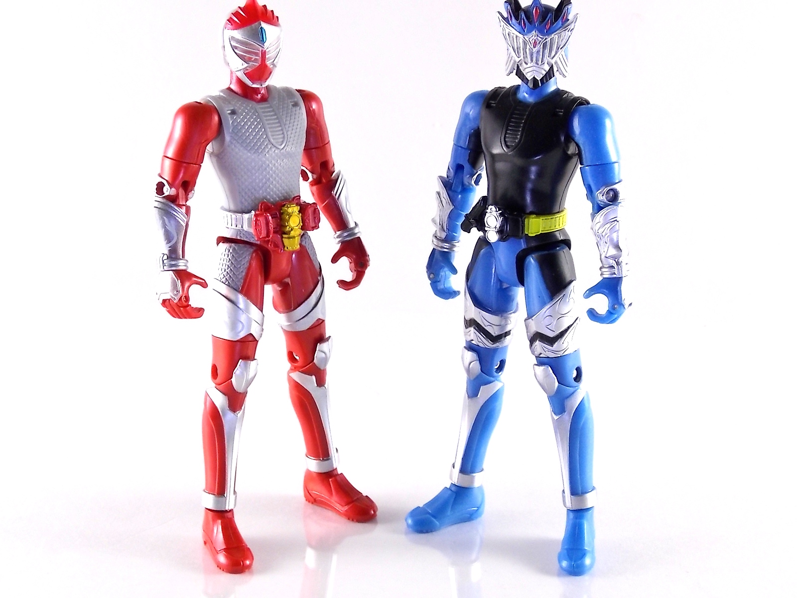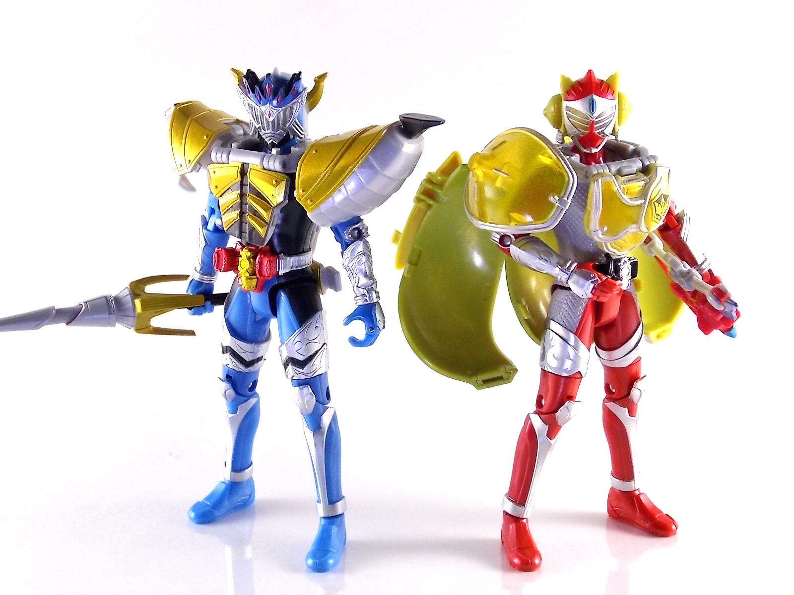 These images show you the quick and easy way you can custom up a Baron Lemon Energy Arms. And how you can use the spare parts leftover to make a pretty sweet Duke custom. Simply remove the 4 screws on the back plates of both Baron & Duke. Then remove their belts and swap. This is really easy considering these are just soft rubbery accessories. Though they are molded differently from one another so it'll be a snug fit to put either's belt on the opposite figure. Then reassemble and pop Lemon Arms onto Baron. Boom! you have your very own Arms Change Kamen Rider Baron Lemon Energy Arms. Side note. Duke's Lemon Arms feature his personal insignia on the chest. In show Baron's chest features his traditional Team Baron logo. Here the only way to recreate that on the toy would be to have a custom printed decal sized for the chest, or to skillfully paint the symbol on. Otherwise you just made yourself a cheap and easy banana lemon rider! Of not is that the AC Duke hodgepode you'll have leftover actually looks pretty damn solid with the Banana Arms and Sengoku Driver. You can basically use him as a spiffy dummy body for any of your extra Arms.