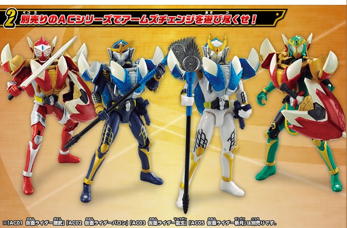 They could do this- ACPB 06- Kurokage Trooper & Kurokage Shin ACPB 07- Gaim Yami & Gaim Fresh Orange Arms ACPB 08- Fifteen, Decade Arms, Gaim Arms, Ichigo Arms ACPB 09- Baron Lemon Energy Arms |