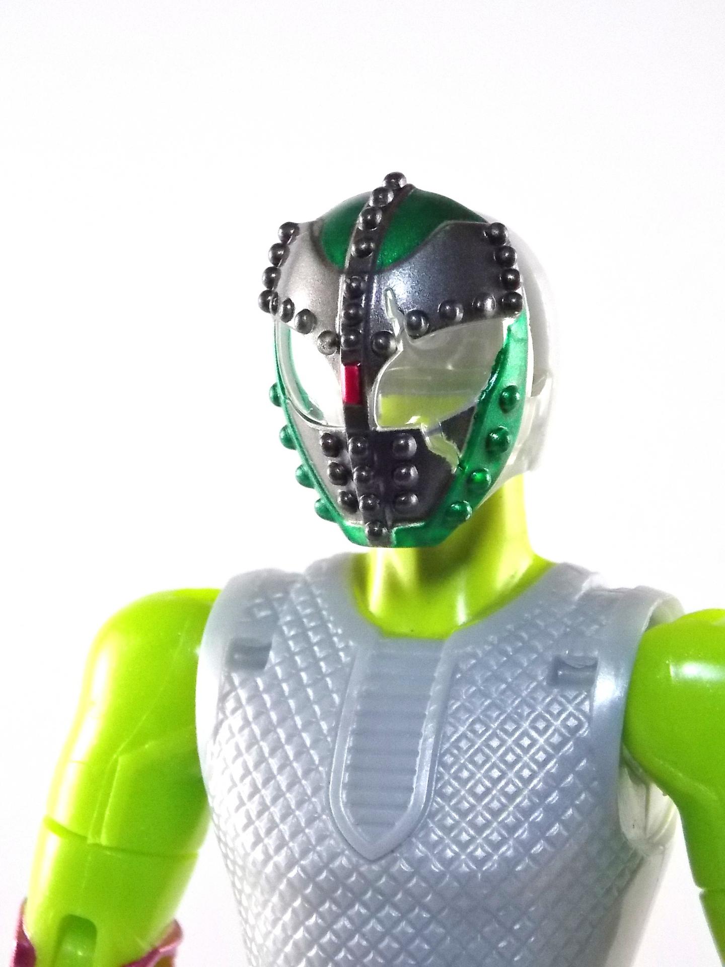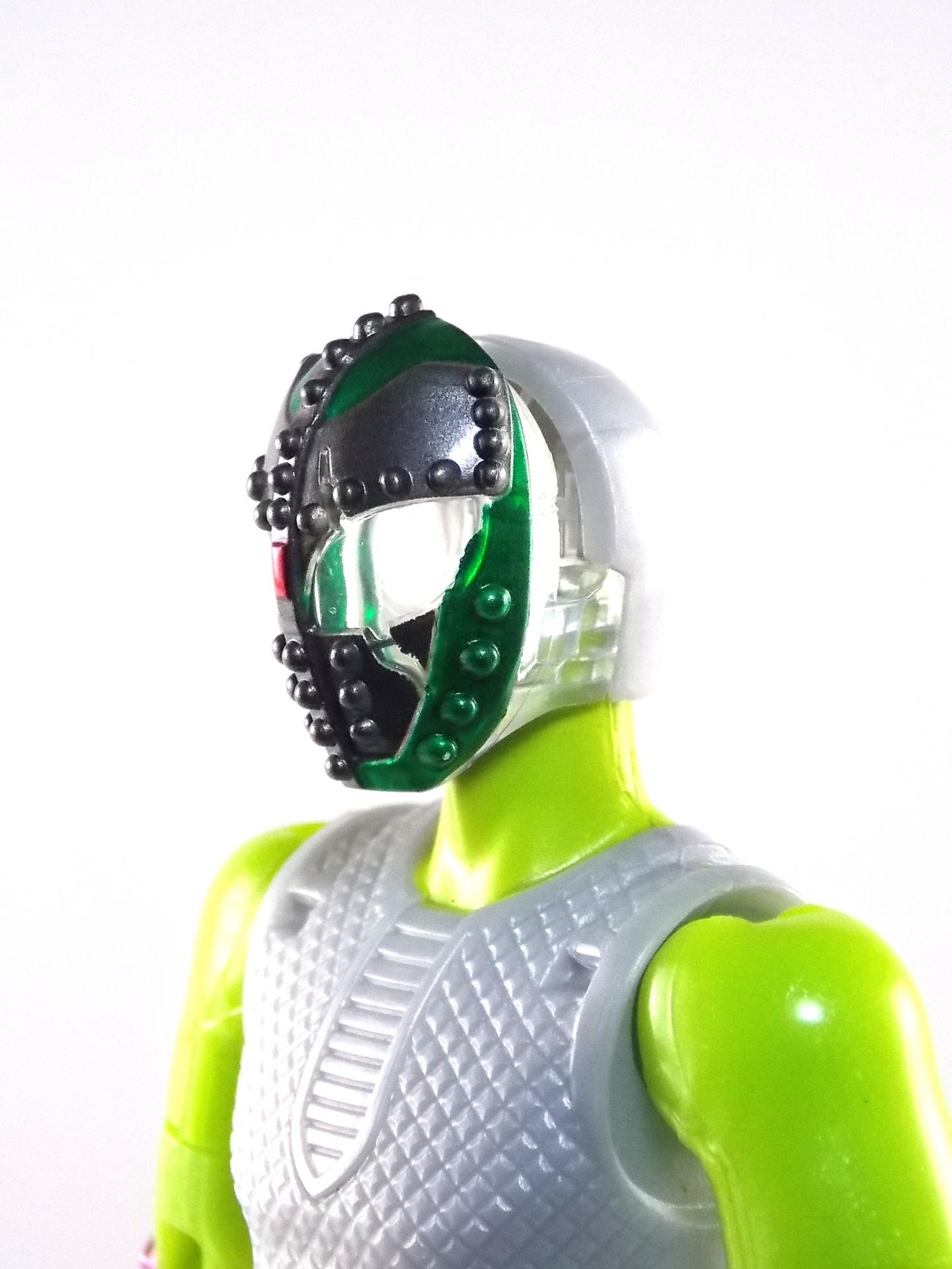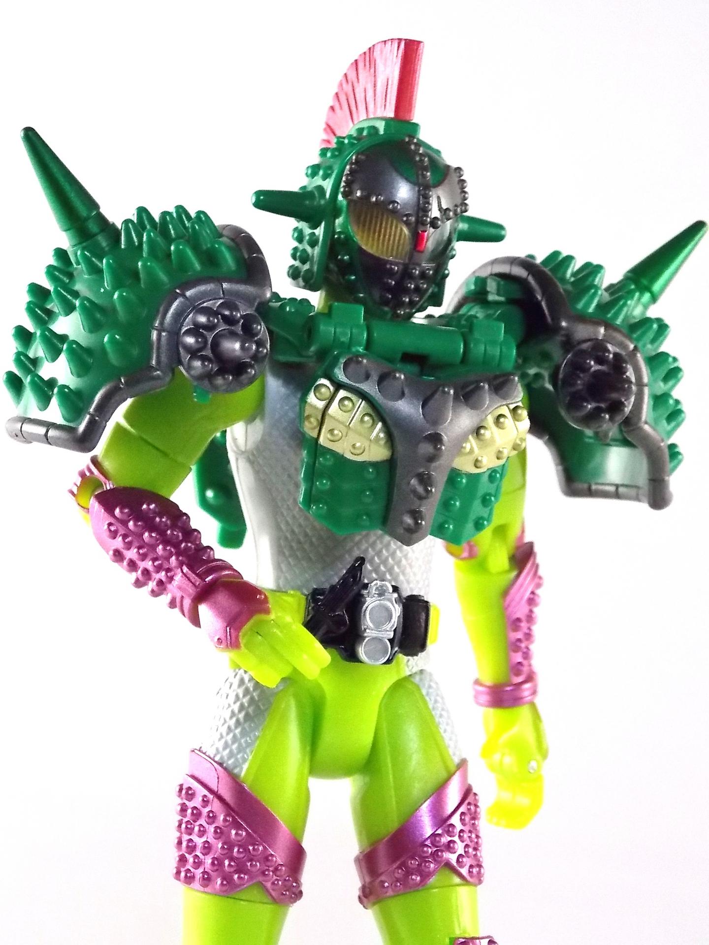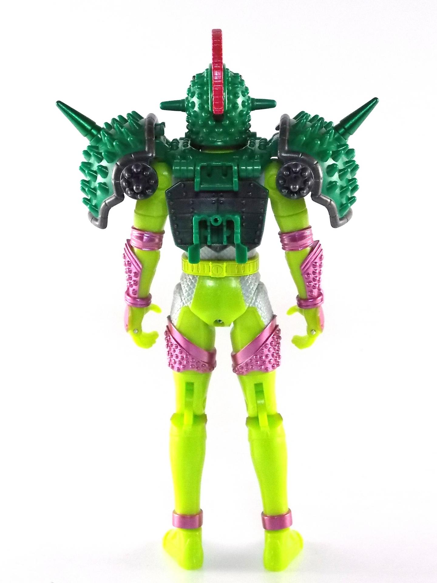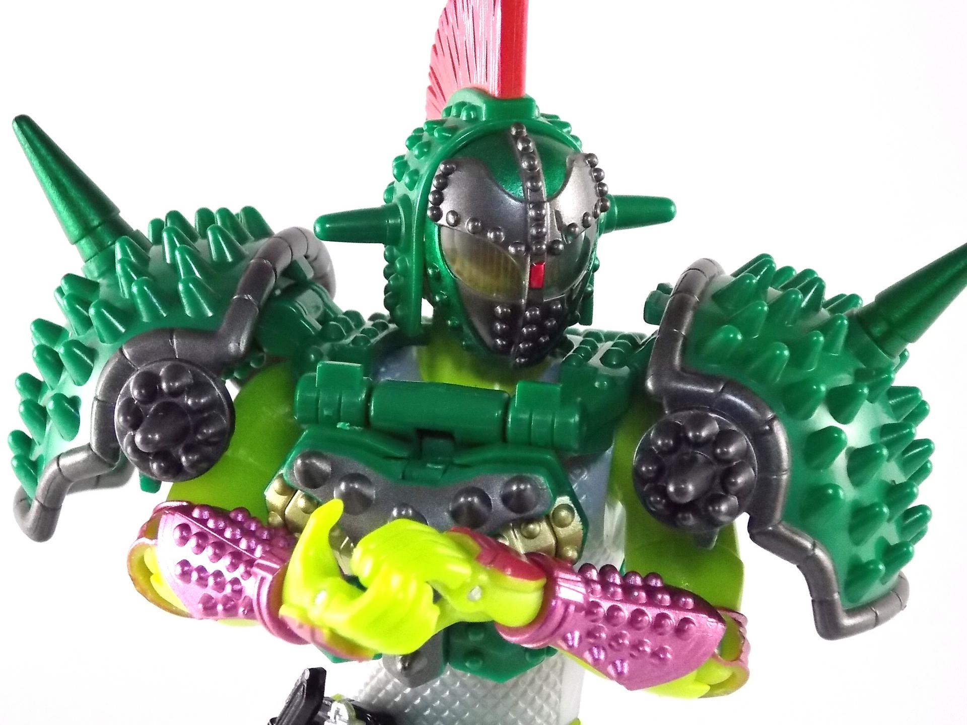 The only complaint I have with Bravo, is with the color scheme of his base body. The dark green color on his face is the same as Durian Arms, indicating Bravo was never meant to use other Arms in the show. The result is that none of the other armors look really good on him in my opinion. That said, as a result of said color scheme, the figure really looks good with the intended Durian Arms. |