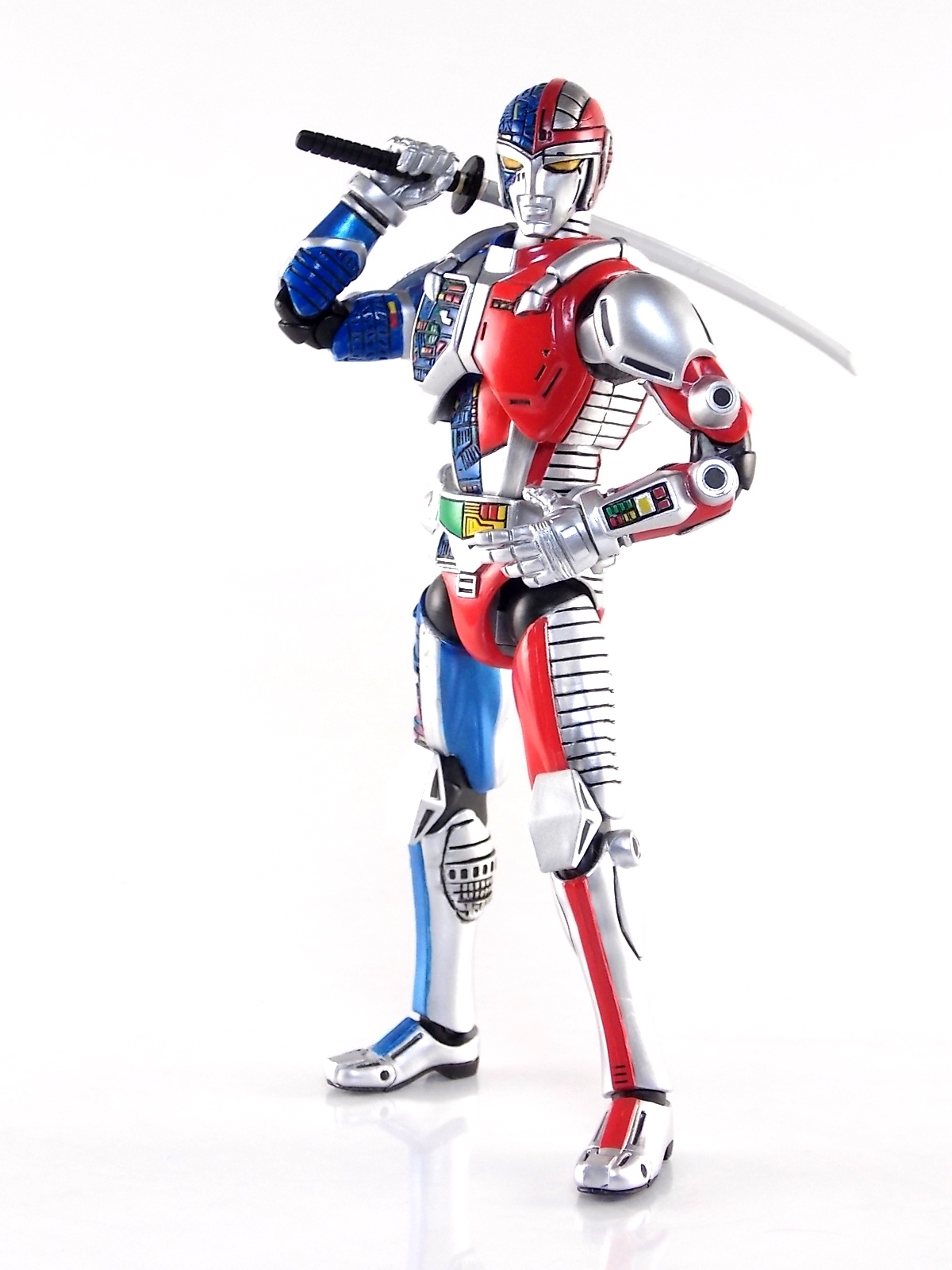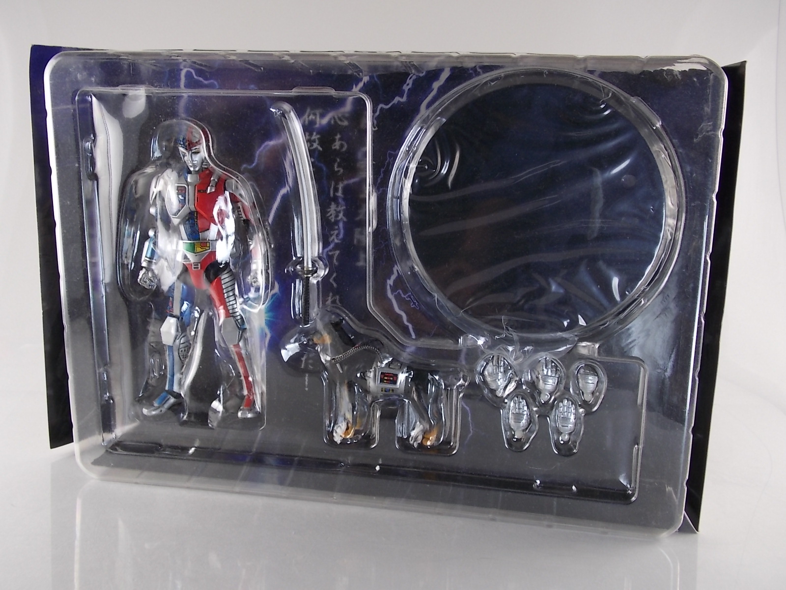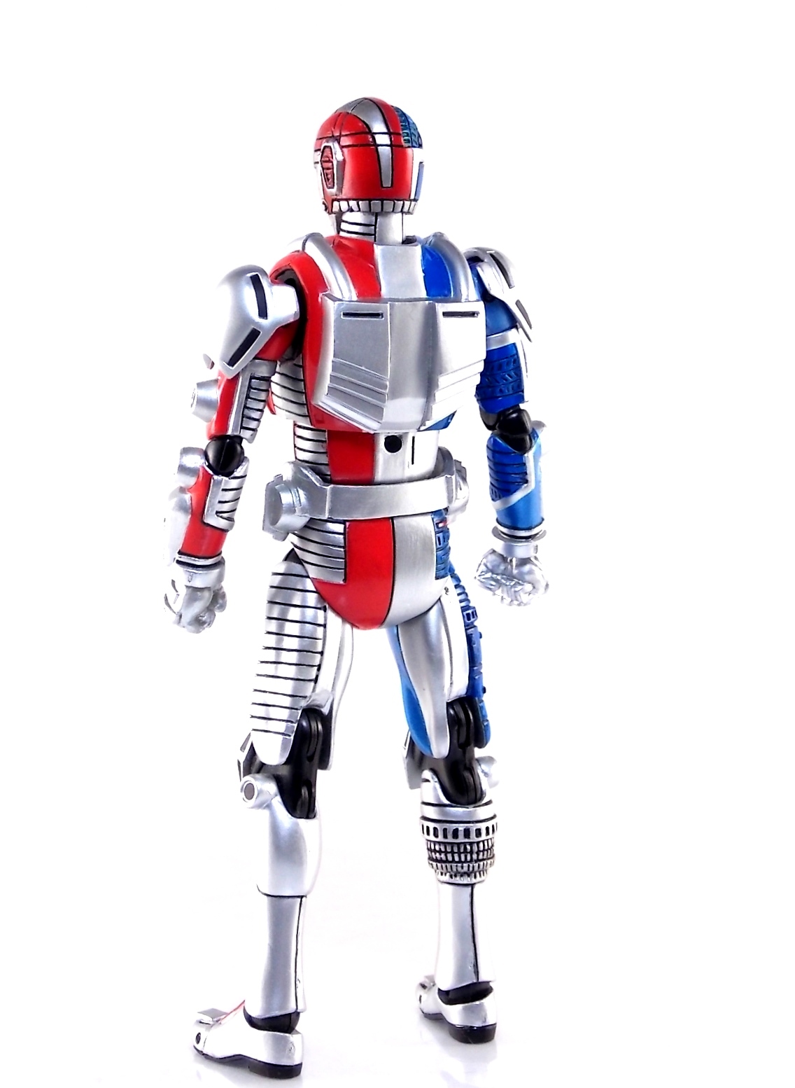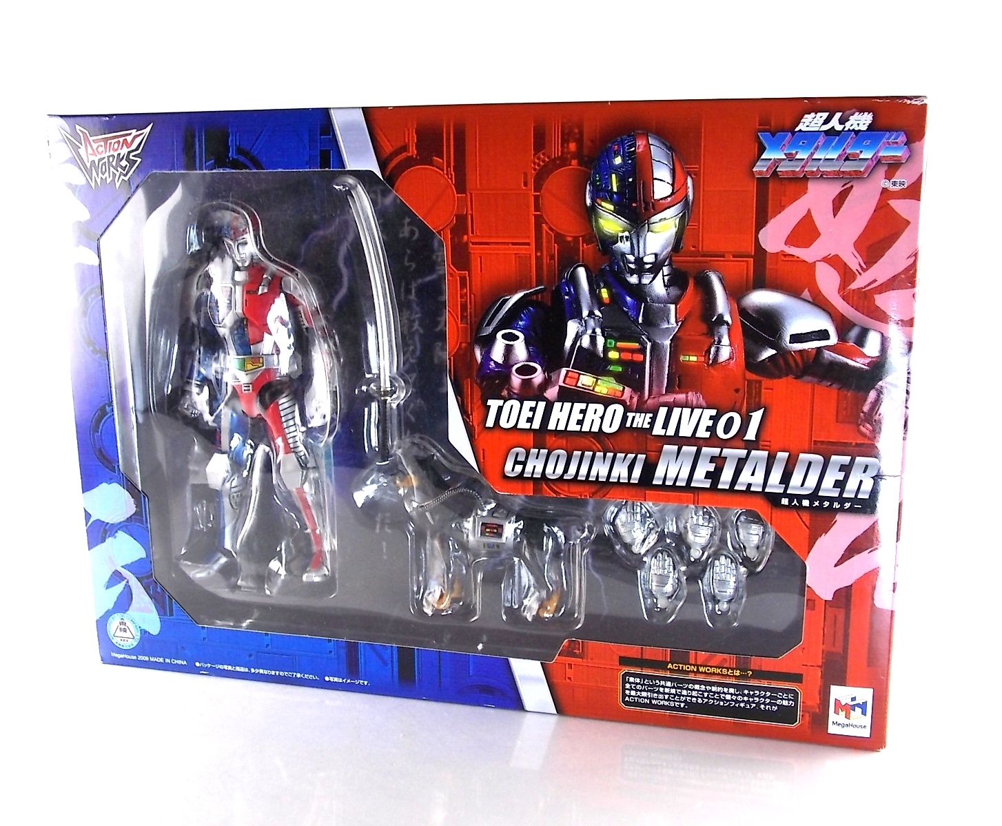 Metalder footage was used for the character Ryan Steele primarily in season 1 here in the US. But since Metalder is the shortest of the Metal heroes shows, a mere 39 episodes, season 2 began utilizing Shaider footage for Ryan's new upgraded form. Despite quite a bit of fan support here in the US VR hasn't gotten a ton of love over the years though. Especially in the figure department. Much like anything that isn't Power Rangers it's been cast to the wayside a bit. But a few years back there was just enough residual love for Chojinki Metalder left in Japan to produce this figure, Action Works Metalder! Action Works was a toy line competitive to S.H. Figuarts in design at least. Since the two focused on different genres they didn't compete in quite the same way you'd think. Sort of borrowing elements from Bandai's SHF line, Action Works were produced by Megahouse. That is until Megahouse was acquired by Bandai Of Japan. Until they were acquire this line had become a home of sorts for high end Metal Heroes releases including the 3 Space Sheriffs as well as Metalder and even Winspector. But Metalder was the first metal hero released by the company as Toei Hero The Live 01, and even by today's standards, this figure rocks. Here's why. Packaging For starters Action Works came in much larger style boxes than S.H. Figuarts of today do. These releases were more of one offs each time rather than part of an overarching merchandise line. Metalder is the 2nd largest in the packaging department, only being outclassed by the massive Winspector 3-pack. But it's a glorious box evocative of the figure inside with plenty of nice stock photos and a great insert piece for the back of the inner package. Main Figure As I mentioned before Action Works are sort of like figuarts but they were actually better than the first couple years of Figuarts offerings in terms of design and accessory count. These figures were wonderfully sculpted, generously articulated, and included tons of accessories (more on that in a minute). As you can see from the images below Metalder looks damn nice. It really captures the actual character quite well. Now I know there are some glaring black joints there but you have to remember that this figure is from 2009. And yet it still holds up nicely with today's S.H. Figuarts. Joint aesthetics aside they're meaningfully placed. Metalder can pull off some nicely dynamic poses including his most signature ones. Though some Action Works Metalders have become loose over time this one is still in fine working order. A very nice additional feature here is the intentional ability to remove Metalders arm at the bicep for him to hold it as a weapon. That's right folks, in show Metalder has literally beaten enemies to death with his dismembered arm and the toy faithfully replicates it. Automatically goes in the win column. If the articulation wasn't enough to sell you just look at the paint and intricate detailing on this guy. It's just incredible that a toy like this has been around since the early days of S.H. Figuarts and sometimes we still don't get modern SHF's with this level of detail. For those wondering Metalder's 2-tone appearance was meant as an homage to one of Shotaro Ishinimori's earliest creations, Kikaider! The red/blue split design is no coincidence at all, this guy is a blatant homage, right down to him being a robot with a human form rather than a "hensin hero". He even has a motorcycle with detachable side car and plays Jazz Saxophone for fun! Accessories As with all Action Works figures, Metalder comes with everything he could honestly need. Included here are: 5 - additional hands for various action poses. It should be noted that this type of hand has the ball joint attached to the hand itself rather than to the wrist peg allowing for a greater range of movement. Honestly I love this hand system but I can see where it's probably more of a gamble breakage wise, though I've yet to encounter such a problem. 1 - Action Works display base. No these aren't as fancy as modern Tamashii stages but they get the job done and peg directly into the figure. The only downside is that they aren't quite tall enough to leave the figure in a static standing pose when plugged in. They really only work for action shots. 1 - Katana. A seldom used but specific weapon of Metalder's. Including weapons like this is something I greatly appreciate. It may not be something he uses every episode or even more than a hand full of times, but I love having it. Sidenote, the Space Sheriffs released in this line came with multiple energized and standard versions of each of their Laser Blades. 1 - Springer! That's right, Metalder comes with a robot dog, not to be confused with that pesky Transformer! Springer was Metalder's trusty older brother. Built by their creator before Metalder, Springer guards the Silver Caucus base where Metalder operates from. He can even speak human language! Jeb the dog from VR Troopers was based on Springer though he wasn't cybernetic. Though this Springer figure isn't articulated, it's wonderful detailed bonus ton include with Metalder. Final Thoughts If you can't tell, I love this figure. I've owned a few Action Works releasese over the years and this one is by far my favorite right now. For figures released during the early days of the S.H. Figuarts line, Action Works do not disappoint. I've vocalized my disappointment so far with the poor QC of the Space Sheriffs released in the SHF line as they just don't hold up as nicely as their older counterparts. I love Action Works Metalder to pieces. If an SHF was announced I'm not entirely sure I'd need to buy it unless it at least came with everything seen here. But as the SHF line brings more Metal Heroes into the fold like the forthcoming Blue & Black Beet there's always a chance for a Metalder release. In any case if you can find Action Works Metalder I HIGHLY recommend him. He not only is an excellent toy but he fits in perfectly with y