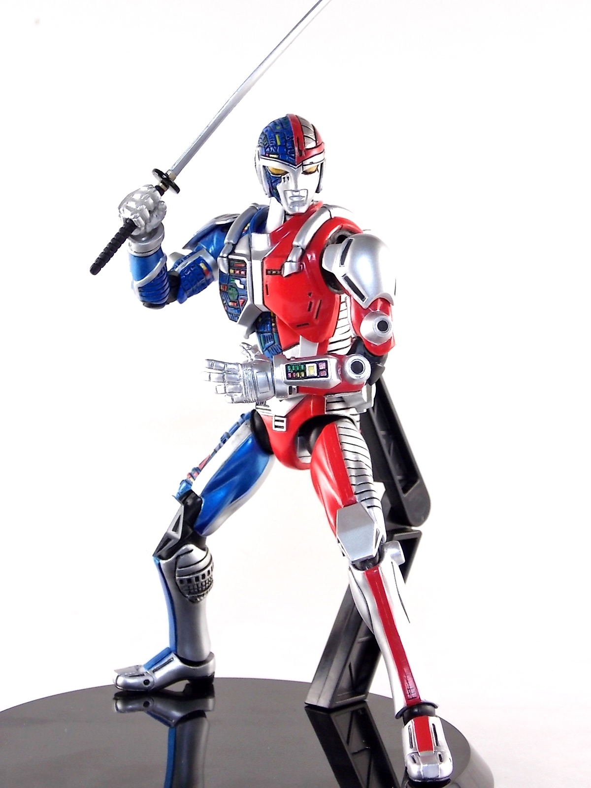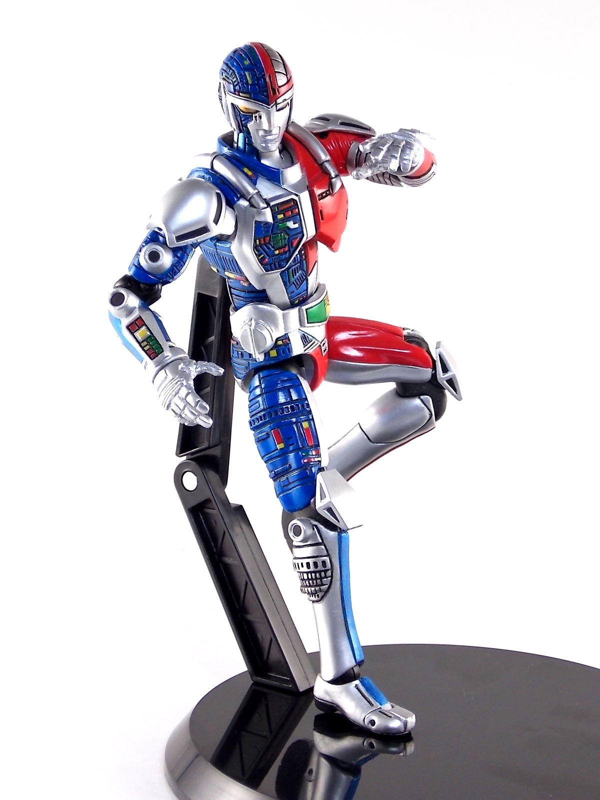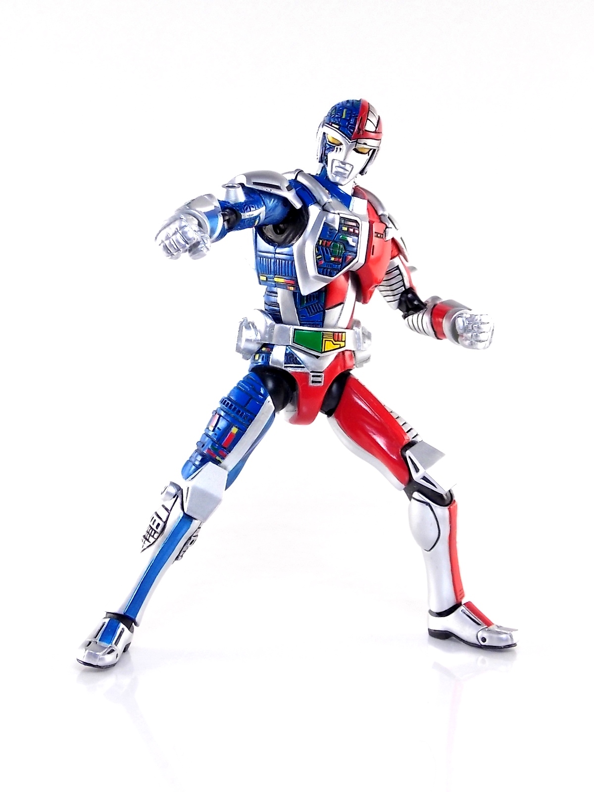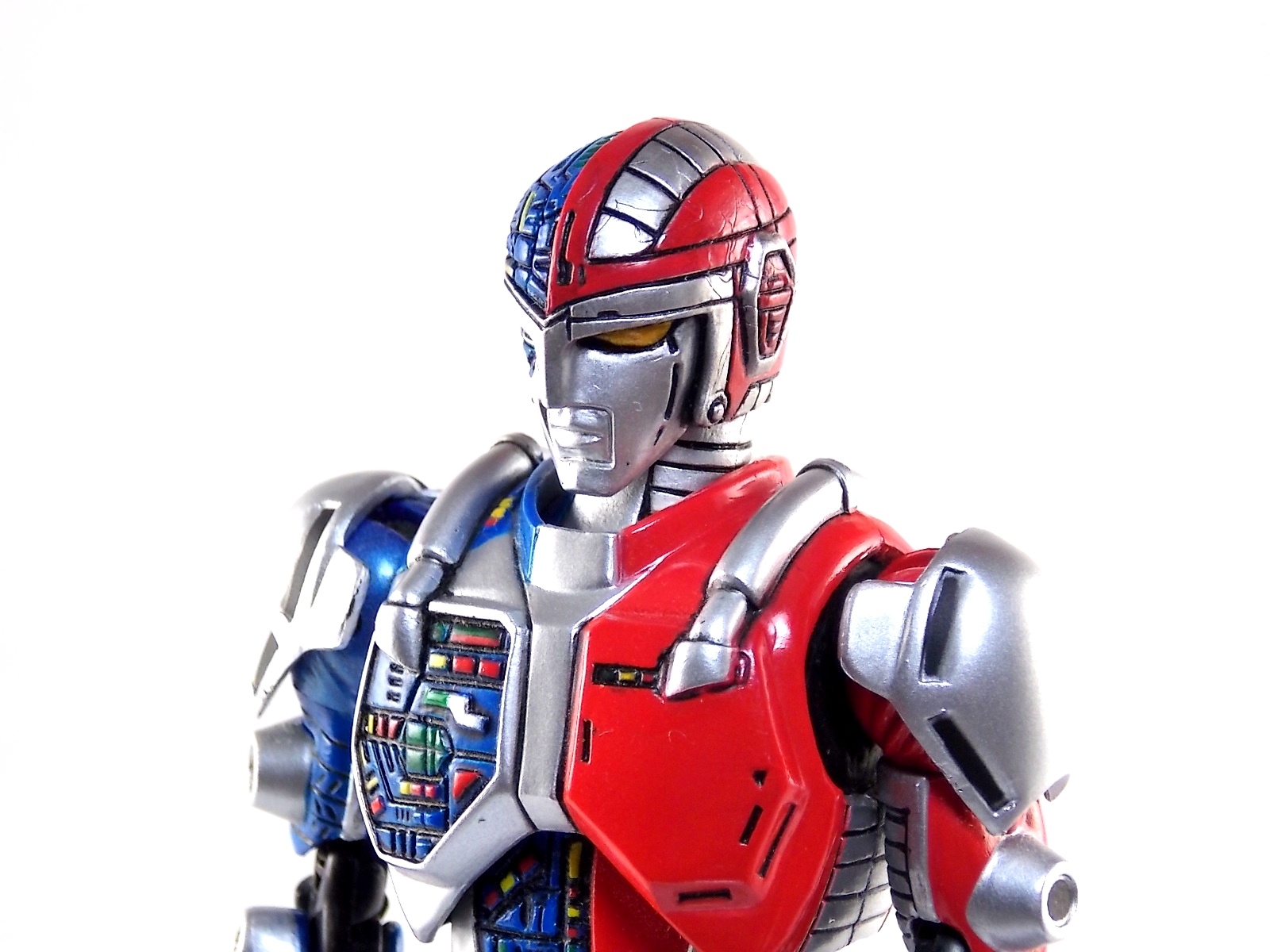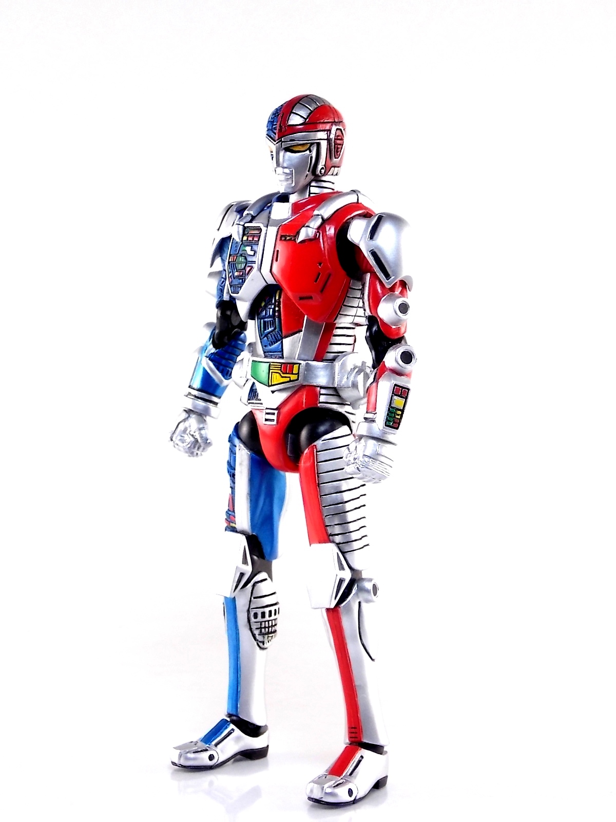 Metalder footage was used for the character Ryan Steele primarily in season 1 here in the US. But since Metalder is the shortest of the Metal heroes shows, a mere 39 episodes, season 2 began utilizing Shaider footage for Ryan's new upgraded form. Despite quite a bit of fan support here in the US VR hasn't gotten a ton of love over the years though. Especially in the figure department. Much like anything that isn't Power Rangers it's been cast to the wayside a bit. But a few years back there was just enough residual love for Chojinki Metalder left in Japan to produce this figure, Action Works Metalder! Action Works was a toy line competitive to S.H. Figuarts in design at least. Since the two focused on different genres they didn't compete in quite the same way you'd think. Sort of borrowing elements from Bandai's SHF line, Action Works were produced by Megahouse. That is until Megahouse was acquired by Bandai Of Japan. Until they were acquire this line had become a home of sorts for high end Metal Heroes releases including the 3 Space Sheriffs as well as Metalder and even Winspector. But Metalder was the first metal hero released by the company as Toei Hero The Live 01, and even by today's standards, this figure rocks. Here's why. Packaging For starters Action Works came in much larger style boxes than S.H. Figuarts of today do. These releases were more of one offs each time rather than part of an overarching merchandise line. Metalder is the 2nd largest in the packaging department, only being outclassed by the massive Winspector 3-pack. But it's a glorious box evocative of the figure inside with plenty of nice stock photos and a great insert piece for the back of the inner package. Main Figure As I mentioned before Action Works are sort of like figuarts but they were actually better than the first couple years of Figuarts offerings in terms of design and accessory count. These figures were wonderfully sculpted, generously articulated, and included tons of accessories (more on that in a minute). As you can see from the images below Metalder looks damn nice. It really captures the actual character quite well. Now I know there are some glaring black joints there but you have to remember that this figure is from 2009. And yet it still holds up nicely with today's S.H. Figuarts. Joint aesthetics aside they're meaningfully placed. Metalder can pull off some nicely dynamic poses including his most signature ones. Though some Action Works Metalders have become loose over time this one is still in fine working order. A very nice additional feature here is the intentional ability to remove Metalders arm at the bicep for him to hold it as a weapon. That's right folks, in show Metalder has literally beaten enemies to death with his dismembered arm and the toy faithfully replicates it. Automatically goes in the win column. If the articulation wasn't enough to sell you just look at the paint and intricate detailing on this guy. It's just incredible that a toy like this has been around since the early days of S.H. Figuarts and sometimes we still don't get modern SHF's with this level of detail. For those wondering Metalder's 2-tone appearance was meant as an homage to one of Shotaro Ishinimori's earliest creations, Kikaider! The red/blue split design is no coincidence at all, this guy is a blatant homage, right down to him being a robot with a human form rather than a "hensin hero". He even has a motorcycle with detachable side car and plays Jazz Saxophone for fun! Accessories As with all Action Works figures, Metalder comes with everything he could honestly need. Included here are: 5 - additional hands for various action poses. It should be noted that this type of hand has the ball joint attached to the hand itself rather than to the wrist peg allowing for a greater range of movement. Honestly I love this hand system but I can see where it's probably more of a gamble breakage wise, though I've yet to encounter such a problem. 1 - Action Works display base. No these aren't as fancy as modern Tamashii stages but they get the job done and peg directly into the figure. The only downside is that they aren't quite tall enough to leave the figure in a static standing pose when plugged in. They really only work for action shots. 1 - Katana. A seldom used but specific weapon of Metalder's. Including weapons like this is something I greatly appreciate. It may not be something he uses every episode or even more than a hand full of times, but I love having it. Sidenote, the Space Sheriffs released in this line came with multiple energized and standard versions of each of their Laser Blades. 1 - Springer! That's right, Metalder comes with a robot dog, not to be confused with that pesky Transformer! Springer was Metalder's trusty older brother. Built by their creator before Metalder, Springer guards the Silver Caucus base where Metalder operates from. He can even speak human language! Jeb the dog from VR Troopers was based on Springer though he wasn't cybernetic. Though this Springer figure isn't articulated, it's wonderful detailed bonus ton include with Metalder. Final Thoughts If you can't tell, I love this figure. I've owned a few Action Works releasese over the years and this one is by far my favorite right now. For figures released during the early days of the S.H. Figuarts line, Action Works do not disappoint. I've vocalized my disappointment so far with the poor QC of the Space Sheriffs released in the SHF line as they just don't hold up as nicely as their older counterparts. I love Action Works Metalder to pieces. If an SHF was announced I'm not entirely sure I'd need to buy it unless it at least came with everything seen here. But as the SHF line brings more Metal Heroes into the fold like the forthcoming Blue & Black Beet there's always a chance for a Metalder release. In any case if you can find Action Works Metalder I HIGHLY recommend him. He not only is an excellent toy but he fits in perfectly with y