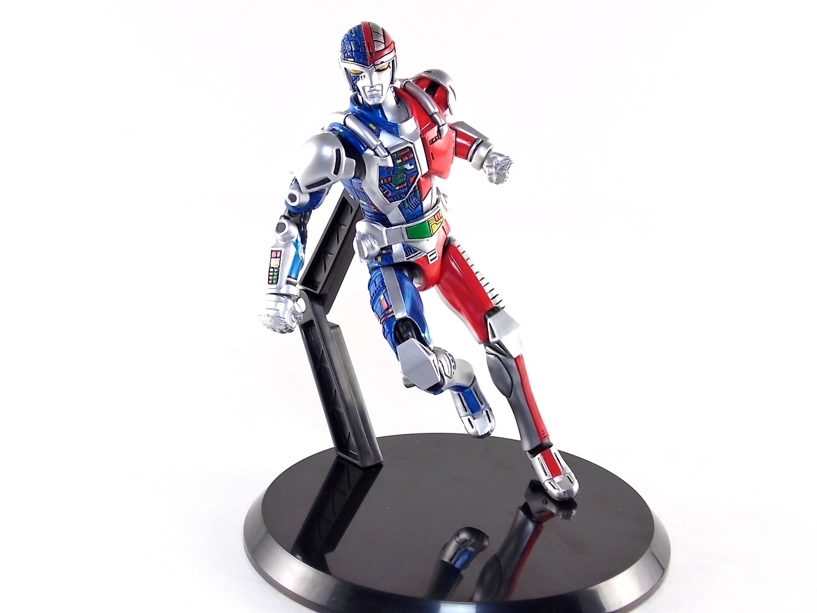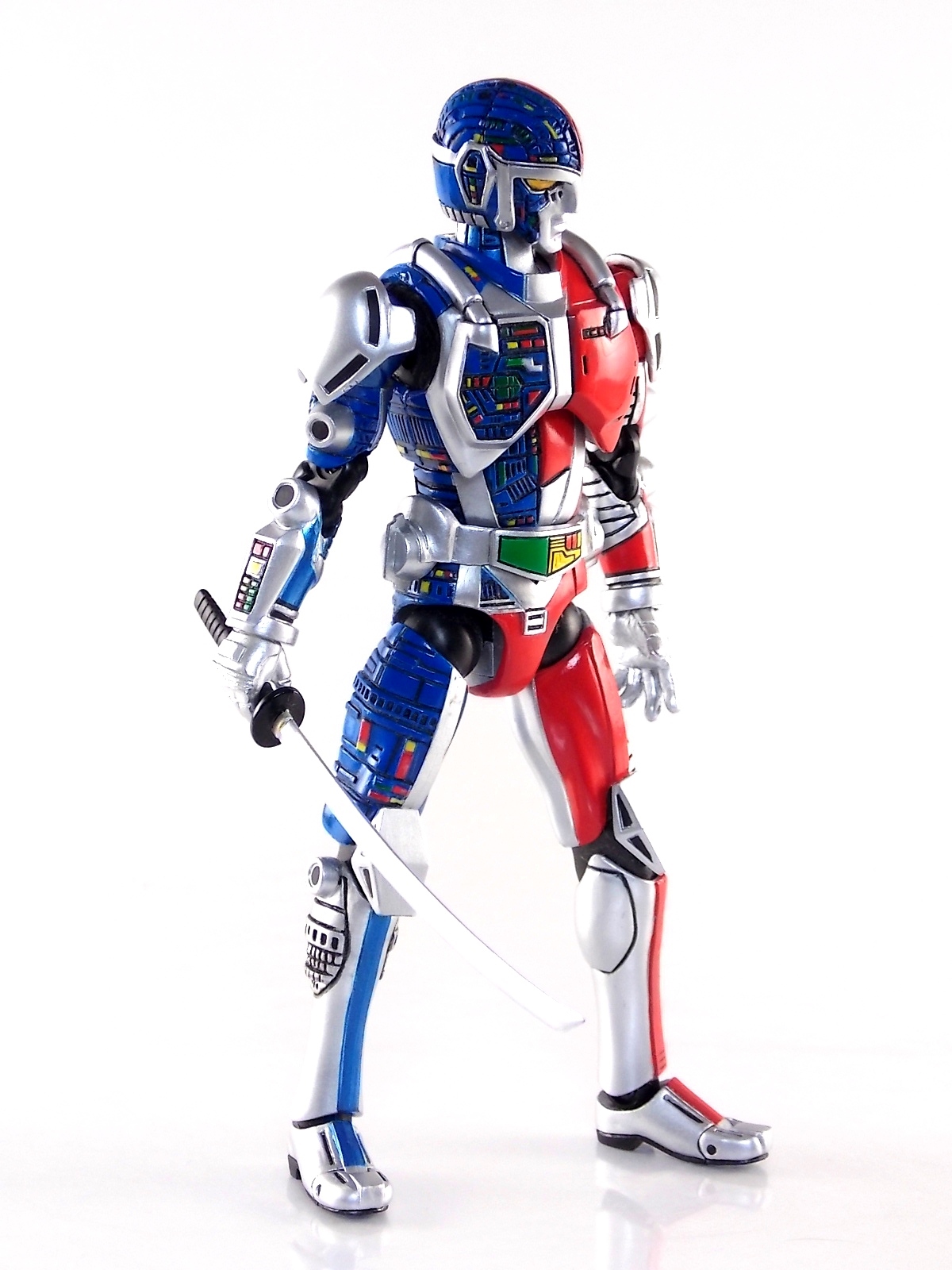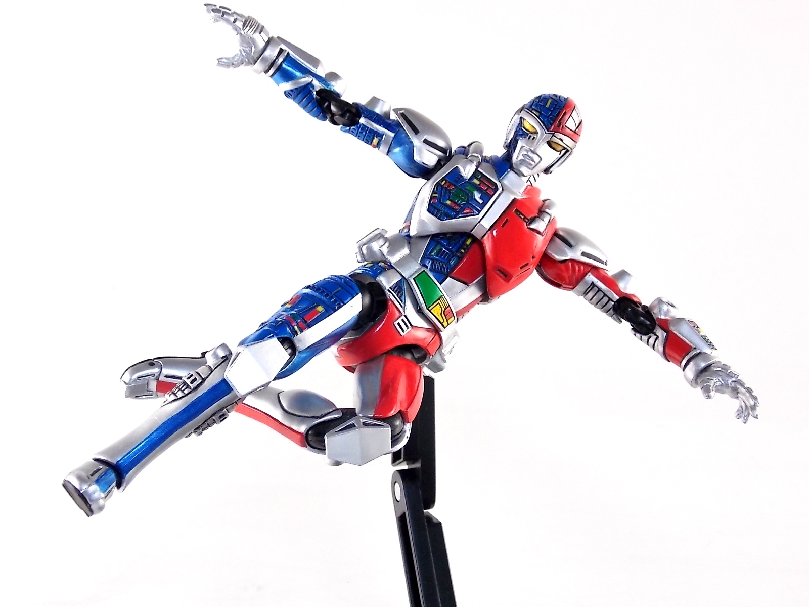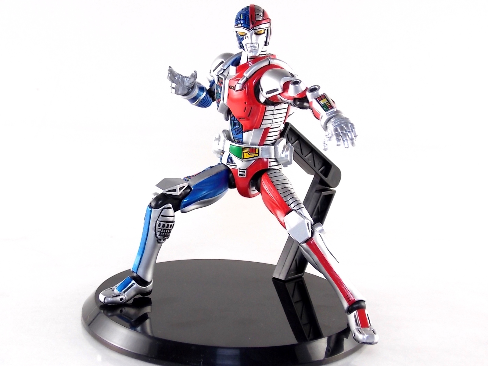 Metalder footage was used for the character Ryan Steele primarily in season 1 here in the US. But since Metalder is the shortest of the Metal heroes shows, a mere 39 episodes, season 2 began utilizing Shaider footage for Ryan's new upgraded form. Despite quite a bit of fan support here in the US VR hasn't gotten a ton of love over the years though. Especially in the figure department. Much like anything that isn't Power Rangers it's been cast to the wayside a bit. But a few years back there was just enough residual love for Chojinki Metalder left in Japan to produce this figure, Action Works Metalder! Action Works was a toy line competitive to S.H. Figuarts in design at least. Since the two focused on different genres they didn't compete in quite the same way you'd think. Sort of borrowing elements from Bandai's SHF line, Action Works were produced by Megahouse. That is until Megahouse was acquired by Bandai Of Japan. Until they were acquire this line had become a home of sorts for high end Metal Heroes releases including the 3 Space Sheriffs as well as Metalder and even Winspector. But Metalder was the first metal hero released by the company as Toei Hero The Live 01, and even by today's standards, this figure rocks. Here's why. Packaging For starters Action Works came in much larger style boxes than S.H. Figuarts of today do. These releases were more of one offs each time rather than part of an overarching merchandise line. Metalder is the 2nd largest in the packaging department, only being outclassed by the massive Winspector 3-pack. But it's a glorious box evocative of the figure inside with plenty of nice stock photos and a great insert piece for the back of the inner package. Main Figure As I mentioned before Action Works are sort of like figuarts but they were actually better than the first couple years of Figuarts offerings in terms of design and accessory count. These figures were wonderfully sculpted, generously articulated, and included tons of accessories (more on that in a minute). As you can see from the images below Metalder looks damn nice. It really captures the actual character quite well. Now I know there are some glaring black joints there but you have to remember that this figure is from 2009. And yet it still holds up nicely with today's S.H. Figuarts. Joint aesthetics aside they're meaningfully placed. Metalder can pull off some nicely dynamic poses including his most signature ones. Though some Action Works Metalders have become loose over time this one is still in fine working order. A very nice additional feature here is the intentional ability to remove Metalders arm at the bicep for him to hold it as a weapon. That's right folks, in show Metalder has literally beaten enemies to death with his dismembered arm and the toy faithfully replicates it. Automatically goes in the win column. If the articulation wasn't enough to sell you just look at the paint and intricate detailing on this guy. It's just incredible that a toy like this has been around since the early days of S.H. Figuarts and sometimes we still don't get modern SHF's with this level of detail. For those wondering Metalder's 2-tone appearance was meant as an homage to one of Shotaro Ishinimori's earliest creations, Kikaider! The red/blue split design is no coincidence at all, this guy is a blatant homage, right down to him being a robot with a human form rather than a "hensin hero". He even has a motorcycle with detachable side car and plays Jazz Saxophone for fun! Accessories As with all Action Works figures, Metalder comes with everything he could honestly need. Included here are: 5 - additional hands for various action poses. It should be noted that this type of hand has the ball joint attached to the hand itself rather than to the wrist peg allowing for a greater range of movement. Honestly I love this hand system but I can see where it's probably more of a gamble breakage wise, though I've yet to encounter such a problem. 1 - Action Works display base. No these aren't as fancy as modern Tamashii stages but they get the job done and peg directly into the figure. The only downside is that they aren't quite tall enough to leave the figure in a static standing pose when plugged in. They really only work for action shots. 1 - Katana. A seldom used but specific weapon of Metalder's. Including weapons like this is something I greatly appreciate. It may not be something he uses every episode or even more than a hand full of times, but I love having it. Sidenote, the Space Sheriffs released in this line came with multiple energized and standard versions of each of their Laser Blades. 1 - Springer! That's right, Metalder comes with a robot dog, not to be confused with that pesky Transformer! Springer was Metalder's trusty older brother. Built by their creator before Metalder, Springer guards the Silver Caucus base where Metalder operates from. He can even speak human language! Jeb the dog from VR Troopers was based on Springer though he wasn't cybernetic. Though this Springer figure isn't articulated, it's wonderful detailed bonus ton include with Metalder. Final Thoughts If you can't tell, I love this figure. I've owned a few Action Works releasese over the years and this one is by far my favorite right now. For figures released during the early days of the S.H. Figuarts line, Action Works do not disappoint. I've vocalized my disappointment so far with the poor QC of the Space Sheriffs released in the SHF line as they just don't hold up as nicely as their older counterparts. I love Action Works Metalder to pieces. If an SHF was announced I'm not entirely sure I'd need to buy it unless it at least came with everything seen here. But as the SHF line brings more Metal Heroes into the fold like the forthcoming Blue & Black Beet there's always a chance for a Metalder release. In any case if you can find Action Works Metalder I HIGHLY recommend him. He not only is an excellent toy but he fits in perfectly with y