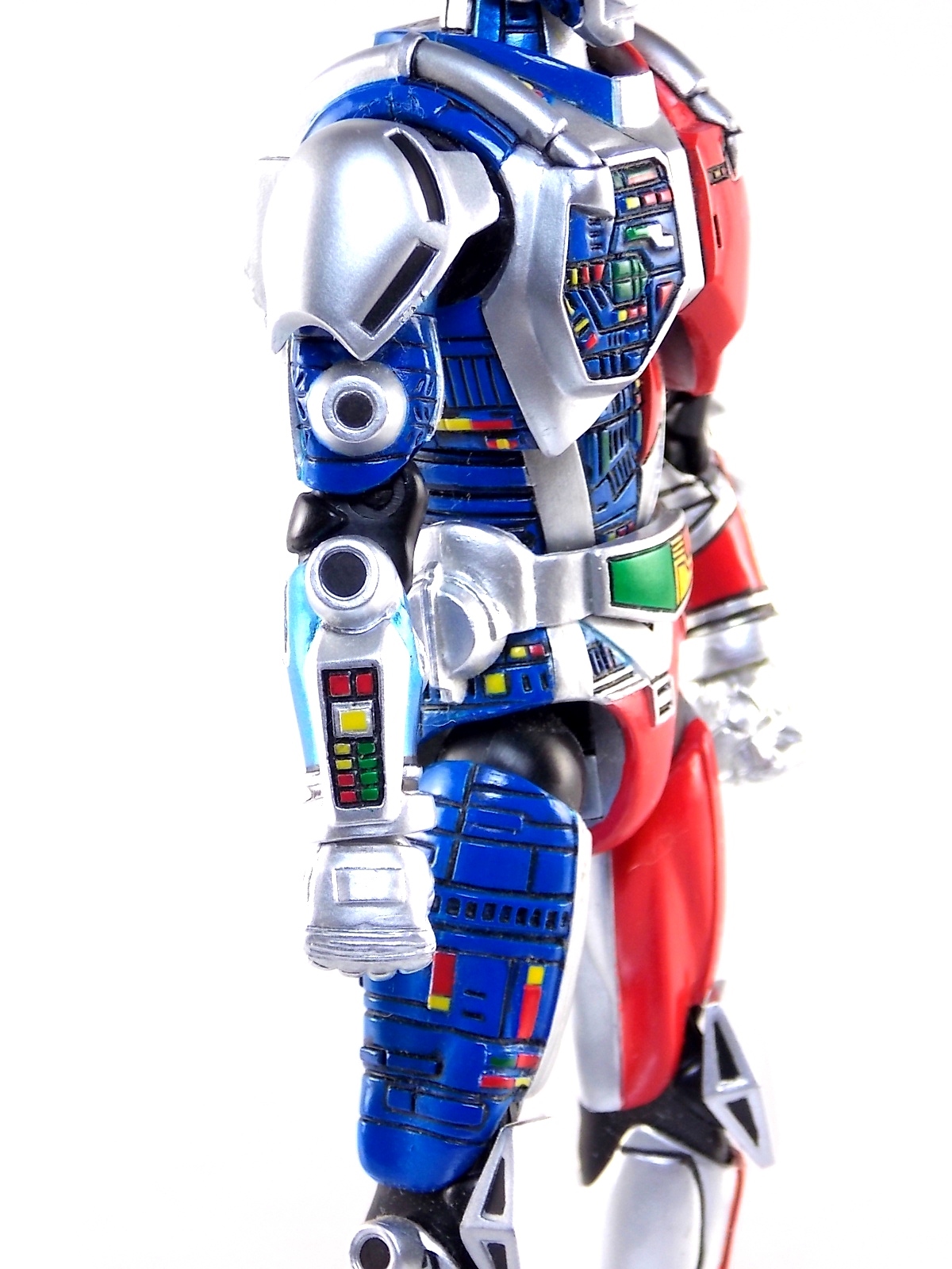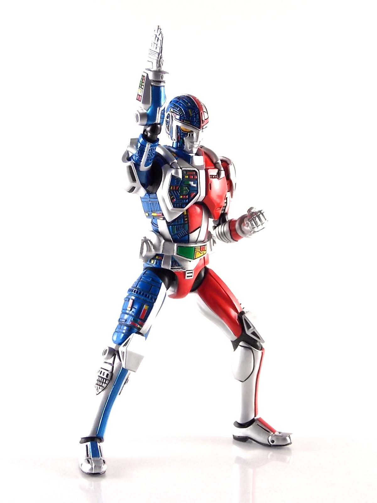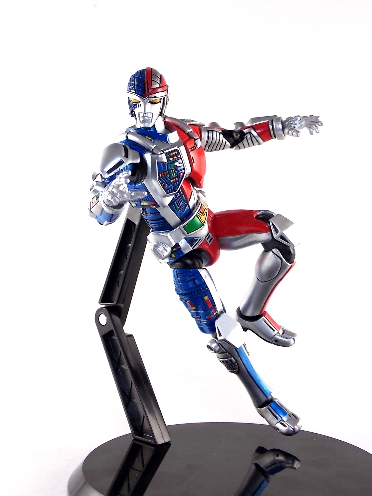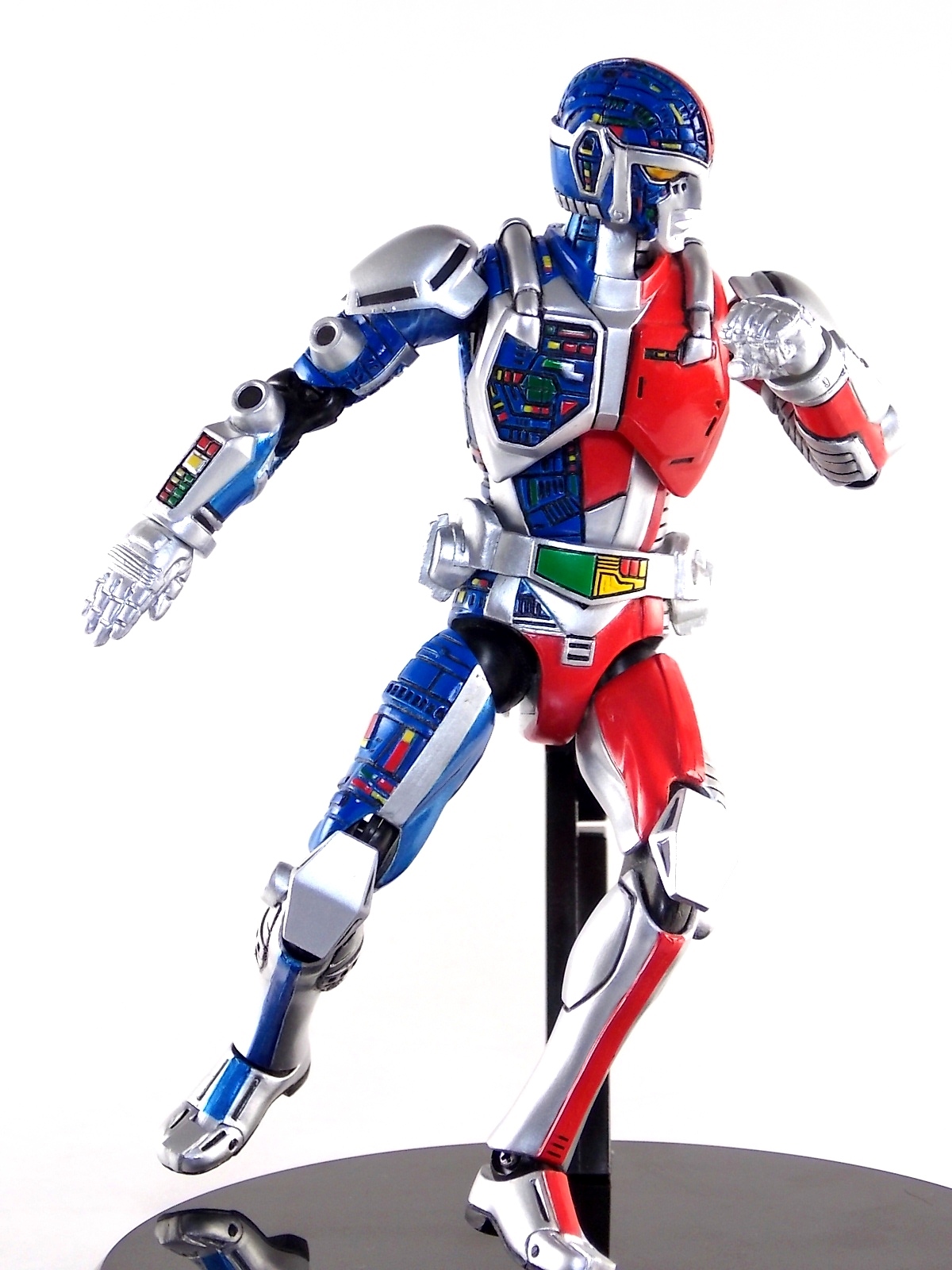 Metalder footage was used for the character Ryan Steele primarily in season 1 here in the US. But since Metalder is the shortest of the Metal heroes shows, a mere 39 episodes, season 2 began utilizing Shaider footage for Ryan's new upgraded form. Despite quite a bit of fan support here in the US VR hasn't gotten a ton of love over the years though. Especially in the figure department. Much like anything that isn't Power Rangers it's been cast to the wayside a bit. But a few years back there was just enough residual love for Chojinki Metalder left in Japan to produce this figure, Action Works Metalder! Action Works was a toy line competitive to S.H. Figuarts in design at least. Since the two focused on different genres they didn't compete in quite the same way you'd think. Sort of borrowing elements from Bandai's SHF line, Action Works were produced by Megahouse. That is until Megahouse was acquired by Bandai Of Japan. Until they were acquire this line had become a home of sorts for high end Metal Heroes releases including the 3 Space Sheriffs as well as Metalder and even Winspector. But Metalder was the first metal hero released by the company as Toei Hero The Live 01, and even by today's standards, this figure rocks. Here's why. Packaging For starters Action Works came in much larger style boxes than S.H. Figuarts of today do. These releases were more of one offs each time rather than part of an overarching merchandise line. Metalder is the 2nd largest in the packaging department, only being outclassed by the massive Winspector 3-pack. But it's a glorious box evocative of the figure inside with plenty of nice stock photos and a great insert piece for the back of the inner package. Main Figure As I mentioned before Action Works are sort of like figuarts but they were actually better than the first couple years of Figuarts offerings in terms of design and accessory count. These figures were wonderfully sculpted, generously articulated, and included tons of accessories (more on that in a minute). As you can see from the images below Metalder looks damn nice. It really captures the actual character quite well. Now I know there are some glaring black joints there but you have to remember that this figure is from 2009. And yet it still holds up nicely with today's S.H. Figuarts. Joint aesthetics aside they're meaningfully placed. Metalder can pull off some nicely dynamic poses including his most signature ones. Though some Action Works Metalders have become loose over time this one is still in fine working order. A very nice additional feature here is the intentional ability to remove Metalders arm at the bicep for him to hold it as a weapon. That's right folks, in show Metalder has literally beaten enemies to death with his dismembered arm and the toy faithfully replicates it. Automatically goes in the win column. If the articulation wasn't enough to sell you just look at the paint and intricate detailing on this guy. It's just incredible that a toy like this has been around since the early days of S.H. Figuarts and sometimes we still don't get modern SHF's with this level of detail. For those wondering Metalder's 2-tone appearance was meant as an homage to one of Shotaro Ishinimori's earliest creations, Kikaider! The red/blue split design is no coincidence at all, this guy is a blatant homage, right down to him being a robot with a human form rather than a "hensin hero". He even has a motorcycle with detachable side car and plays Jazz Saxophone for fun! Accessories As with all Action Works figures, Metalder comes with everything he could honestly need. Included here are: 5 - additional hands for various action poses. It should be noted that this type of hand has the ball joint attached to the hand itself rather than to the wrist peg allowing for a greater range of movement. Honestly I love this hand system but I can see where it's probably more of a gamble breakage wise, though I've yet to encounter such a problem. 1 - Action Works display base. No these aren't as fancy as modern Tamashii stages but they get the job done and peg directly into the figure. The only downside is that they aren't quite tall enough to leave the figure in a static standing pose when plugged in. They really only work for action shots. 1 - Katana. A seldom used but specific weapon of Metalder's. Including weapons like this is something I greatly appreciate. It may not be something he uses every episode or even more than a hand full of times, but I love having it. Sidenote, the Space Sheriffs released in this line came with multiple energized and standard versions of each of their Laser Blades. 1 - Springer! That's right, Metalder comes with a robot dog, not to be confused with that pesky Transformer! Springer was Metalder's trusty older brother. Built by their creator before Metalder, Springer guards the Silver Caucus base where Metalder operates from. He can even speak human language! Jeb the dog from VR Troopers was based on Springer though he wasn't cybernetic. Though this Springer figure isn't articulated, it's wonderful detailed bonus ton include with Metalder. Final Thoughts If you can't tell, I love this figure. I've owned a few Action Works releasese over the years and this one is by far my favorite right now. For figures released during the early days of the S.H. Figuarts line, Action Works do not disappoint. I've vocalized my disappointment so far with the poor QC of the Space Sheriffs released in the SHF line as they just don't hold up as nicely as their older counterparts. I love Action Works Metalder to pieces. If an SHF was announced I'm not entirely sure I'd need to buy it unless it at least came with everything seen here. But as the SHF line brings more Metal Heroes into the fold like the forthcoming Blue & Black Beet there's always a chance for a Metalder release. In any case if you can find Action Works Metalder I HIGHLY recommend him. He not only is an excellent toy but he fits in perfectly with y