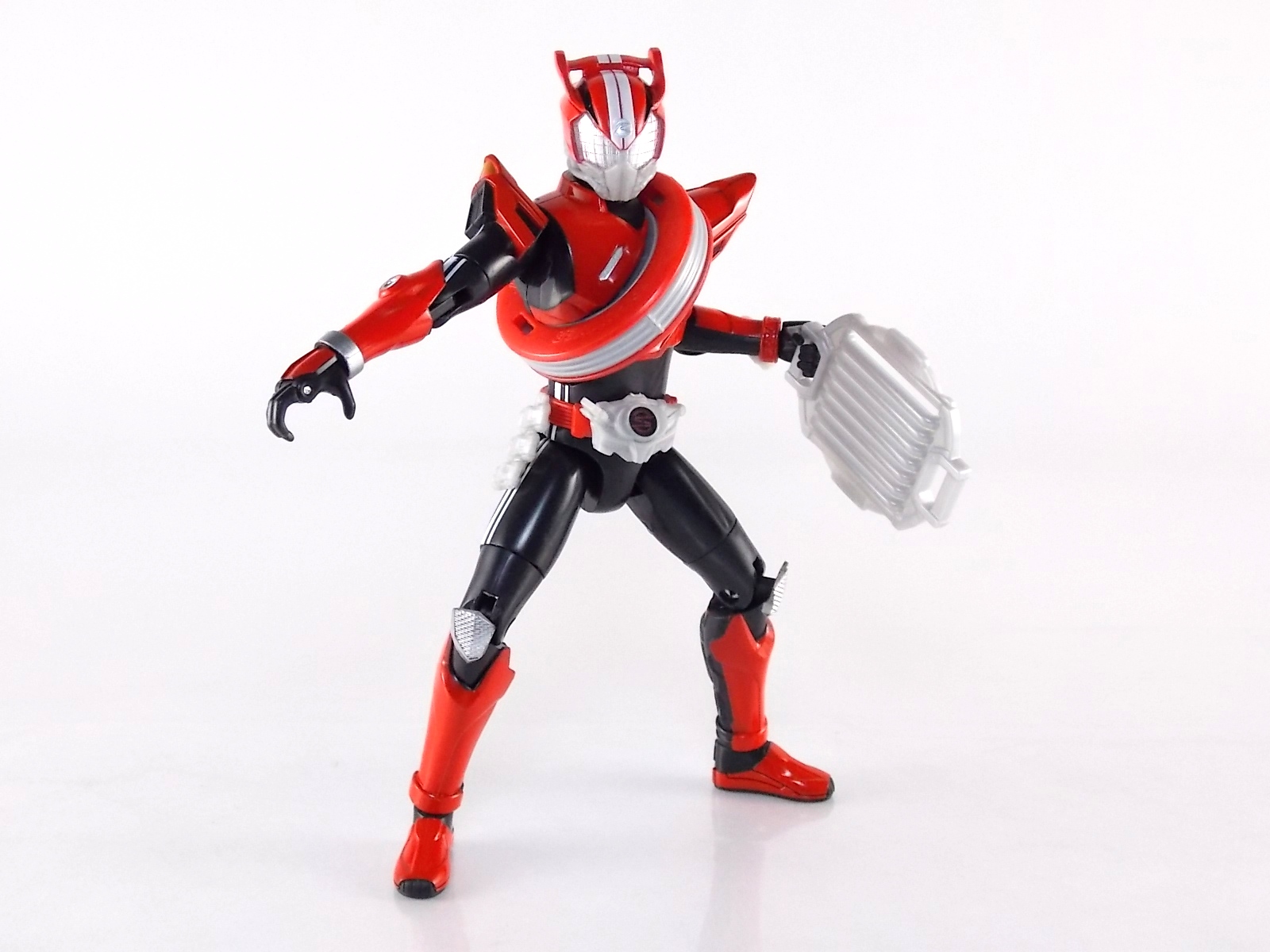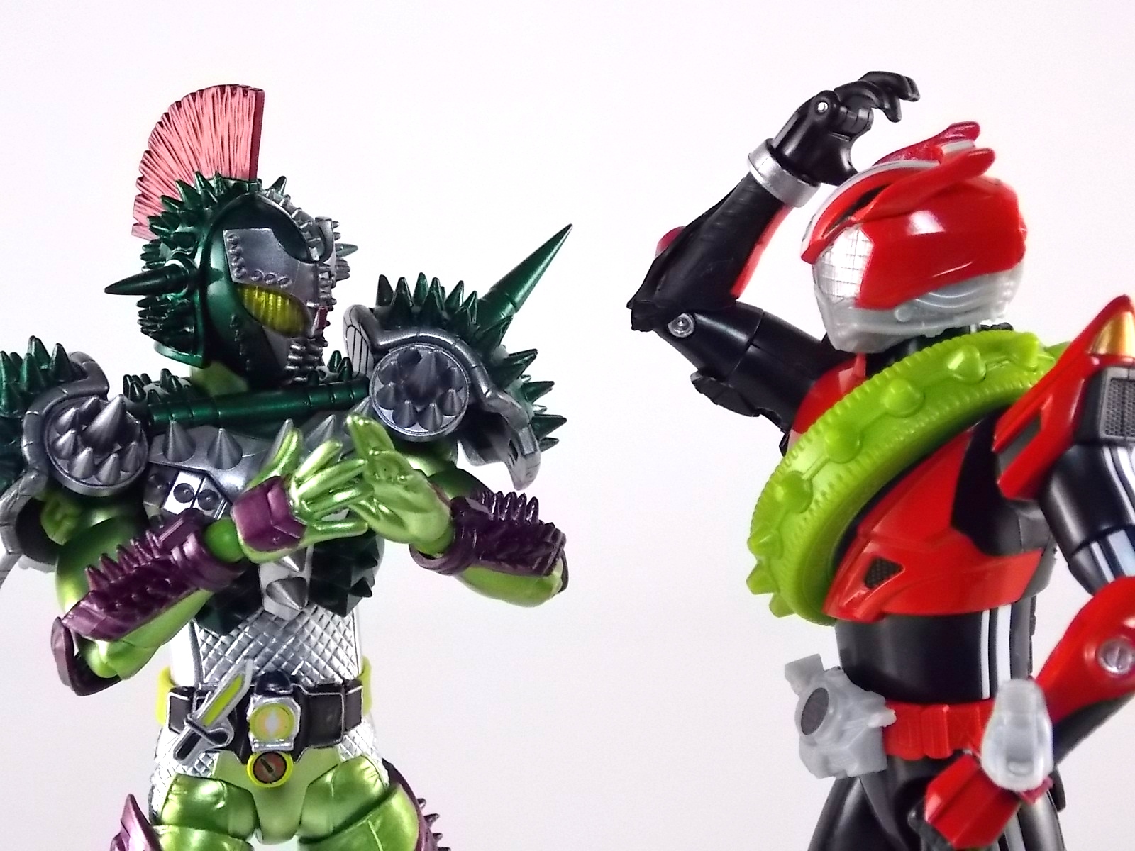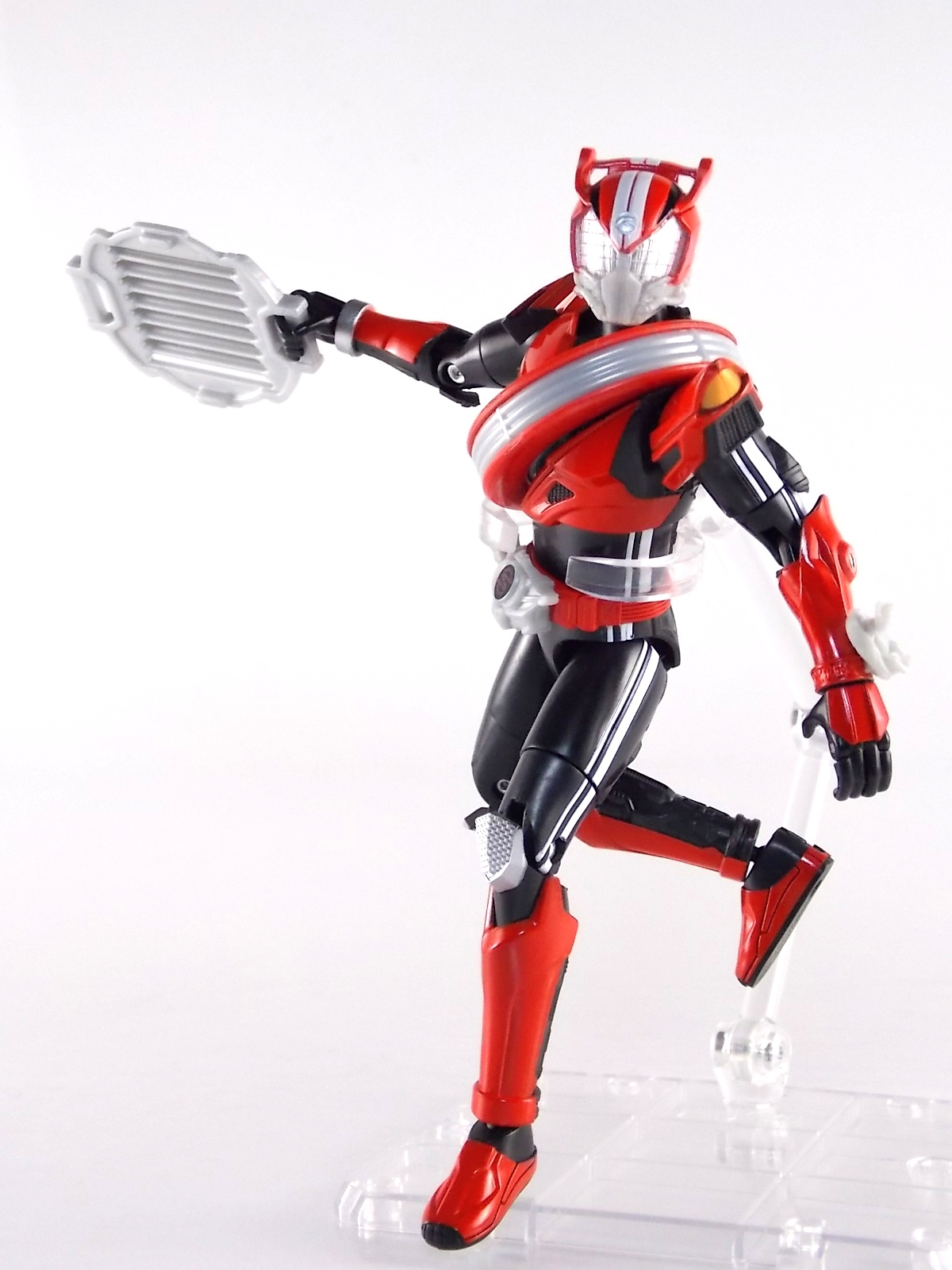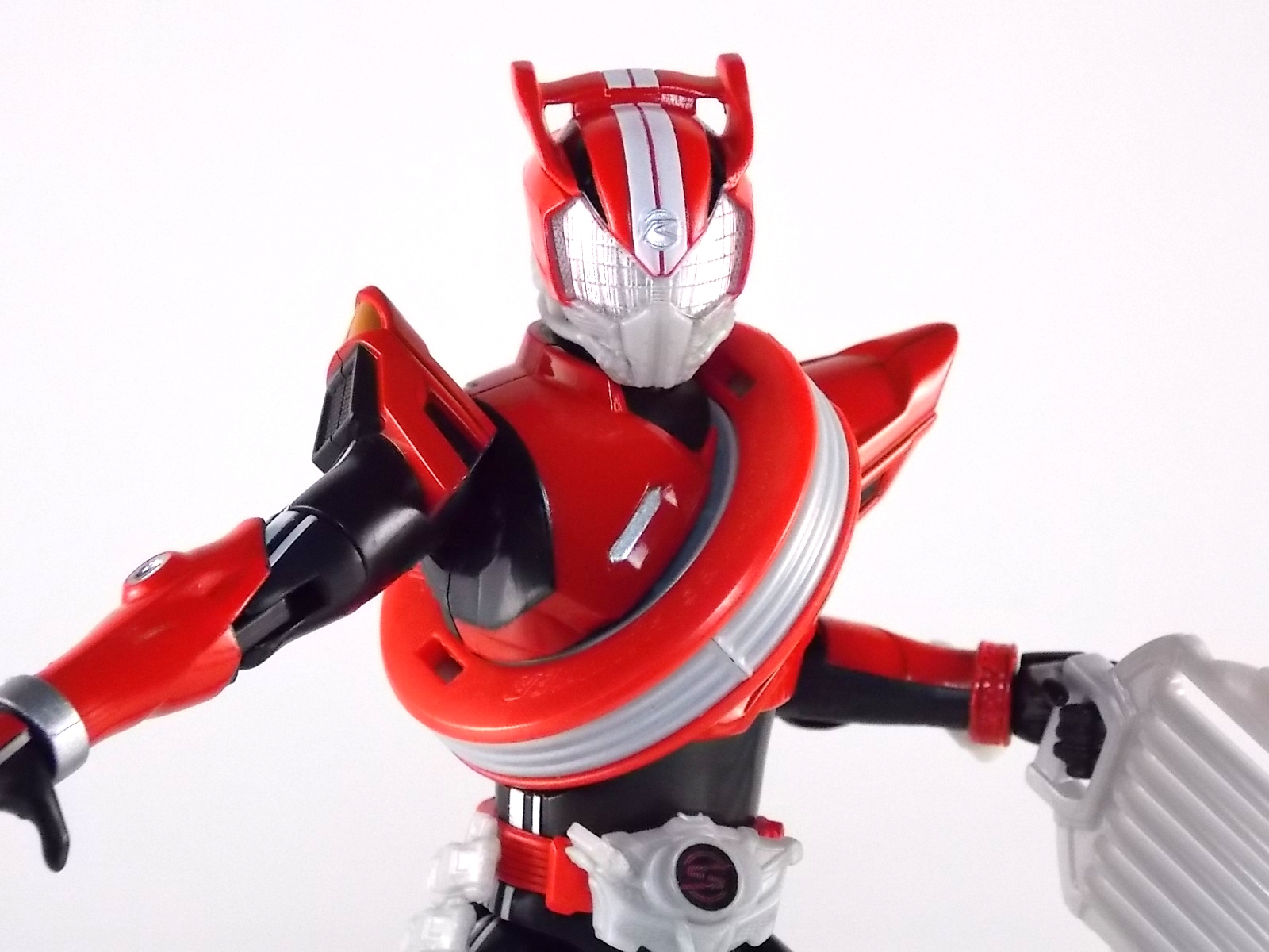 TokuNation returns to start your engine again! Following the very well received inaugural release in this toyline, TK-01 Drive Type Speed, Bandai has just released TK-02! This Tire set features 3 of Drive's handy Tires for different situations. Funky Spike, Just Hunter, & Mad Monster! **Be sure to head over to our front page (or down below) and check my good pal Baltmatrix's video review of this set! Packaging Nothing new to report here since Drives release. The mass retail toylines don't tend to have the fancy bells and whistles of Bandai's collector lines but they get the job done. Yet again this box is very similar to that of an Arms Change albeit much slimmer as the Tires aren't nearly as cumbersome as Arms were. This will be a fairly short and simple review. As this set doesn't really include a figure but just accessories for one. Funky Spike Here we have quite the generic Tire. Funky Spike is easily the one dud in the line thus far. It's a fairly basic dully sculpted tire with what can generously be called spikes on it's outer edge. Frankly it does nothing. Use it as you see fit but it doesn't do anything of significance. Justice Hunter A step in the right direction. Justice Hunter reminds me a bit of a white walled tire on a classic muscle car. The tread's interesting on this one and the colors match Drive's default form quite well. Pegged onto the side of the tire is a grill like weapon called the Justice Cage. Meant to be a blunt weapon for beating Roidmudes the toy is pretty basic. Just an added accessory for more play value. Of course in the show it can become a large person sized cage but there's no way to replicate that in toy form. Massive Monster By far the most interesting tire in this set, or in fact the line thus far, is Massive Monster. Much like Justice Hunter, Monster has an accessory attached to it. Or rather is encased in one giant awesome accessory. Sculpted into the scaly green face of a monster. Remove the two green monster halves encasing the tire and you have the actual Massive Monster, an awesomely sculpted purple tire with a wicked little monster face on it. The two halves, literally just called Monster, make for a pair of almost Gekirin type weapons and can be used for biting attacks. This is by far the neatest tire in the set with the most creativity. Final Thoughts Clearly this set is really only a necessity if you own TK-01 Drive already. Without him the tires won't serve much purpose, unless you have DX Tridoron. Though the TK-02 set requires Drive himself, it's a relatively rewarding set. I'm satisfied with my purchase for Massive Monster alone. Though the other included tires leave much to be desired I've walked (or rather drivem) away happy.
