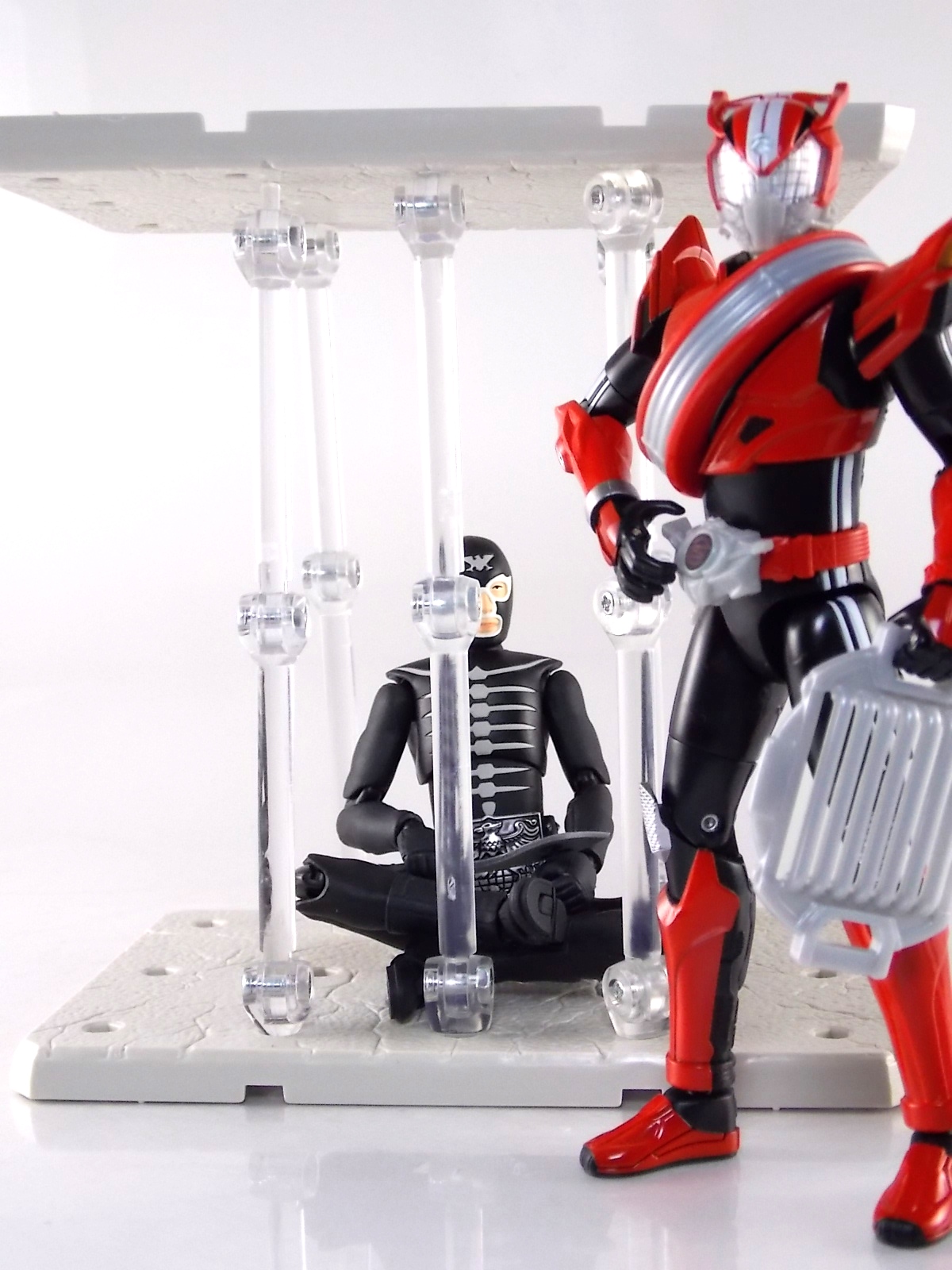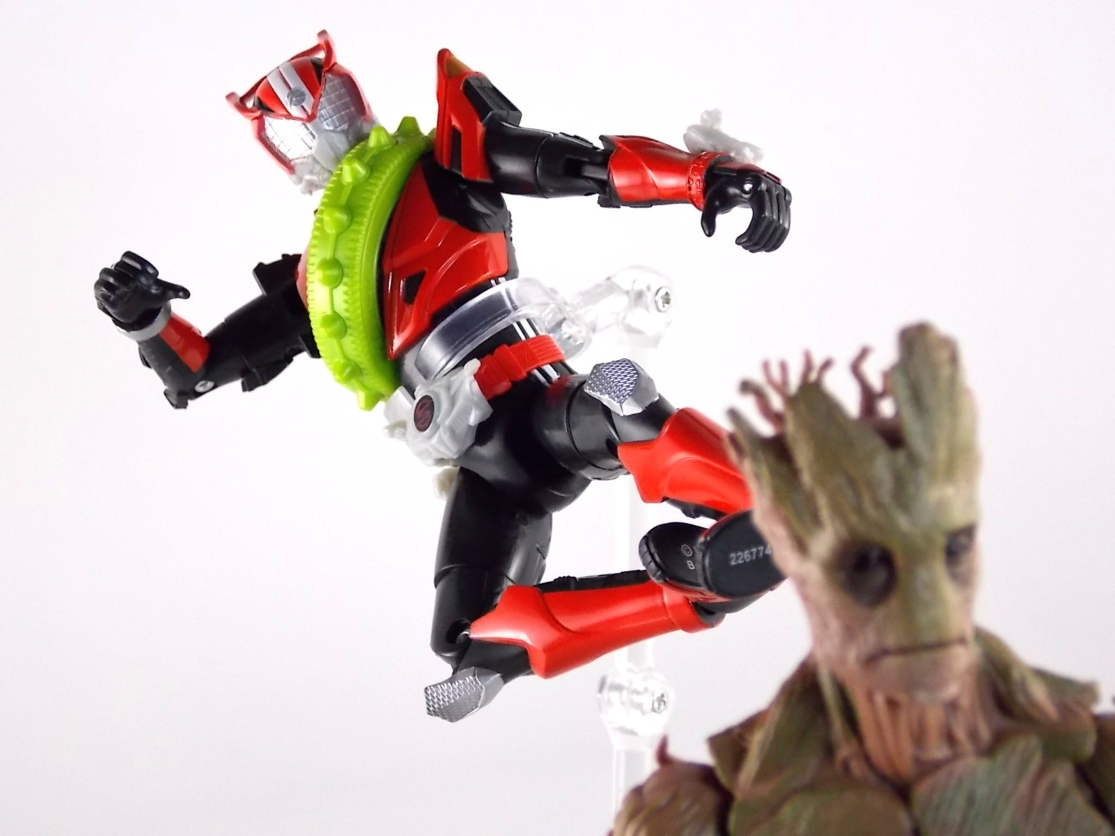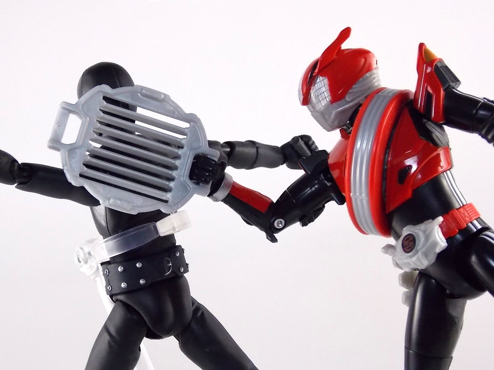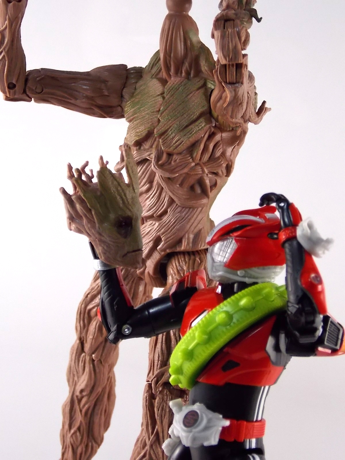 TokuNation returns to start your engine again! Following the very well received inaugural release in this toyline, TK-01 Drive Type Speed, Bandai has just released TK-02! This Tire set features 3 of Drive's handy Tires for different situations. Funky Spike, Just Hunter, & Mad Monster! **Be sure to head over to our front page (or down below) and check my good pal Baltmatrix's video review of this set! Packaging Nothing new to report here since Drives release. The mass retail toylines don't tend to have the fancy bells and whistles of Bandai's collector lines but they get the job done. Yet again this box is very similar to that of an Arms Change albeit much slimmer as the Tires aren't nearly as cumbersome as Arms were. This will be a fairly short and simple review. As this set doesn't really include a figure but just accessories for one. Funky Spike Here we have quite the generic Tire. Funky Spike is easily the one dud in the line thus far. It's a fairly basic dully sculpted tire with what can generously be called spikes on it's outer edge. Frankly it does nothing. Use it as you see fit but it doesn't do anything of significance. Justice Hunter A step in the right direction. Justice Hunter reminds me a bit of a white walled tire on a classic muscle car. The tread's interesting on this one and the colors match Drive's default form quite well. Pegged onto the side of the tire is a grill like weapon called the Justice Cage. Meant to be a blunt weapon for beating Roidmudes the toy is pretty basic. Just an added accessory for more play value. Of course in the show it can become a large person sized cage but there's no way to replicate that in toy form. Massive Monster By far the most interesting tire in this set, or in fact the line thus far, is Massive Monster. Much like Justice Hunter, Monster has an accessory attached to it. Or rather is encased in one giant awesome accessory. Sculpted into the scaly green face of a monster. Remove the two green monster halves encasing the tire and you have the actual Massive Monster, an awesomely sculpted purple tire with a wicked little monster face on it. The two halves, literally just called Monster, make for a pair of almost Gekirin type weapons and can be used for biting attacks. This is by far the neatest tire in the set with the most creativity. Final Thoughts Clearly this set is really only a necessity if you own TK-01 Drive already. Without him the tires won't serve much purpose, unless you have DX Tridoron. Though the TK-02 set requires Drive himself, it's a relatively rewarding set. I'm satisfied with my purchase for Massive Monster alone. Though the other included tires leave much to be desired I've walked (or rather drivem) away happy.
