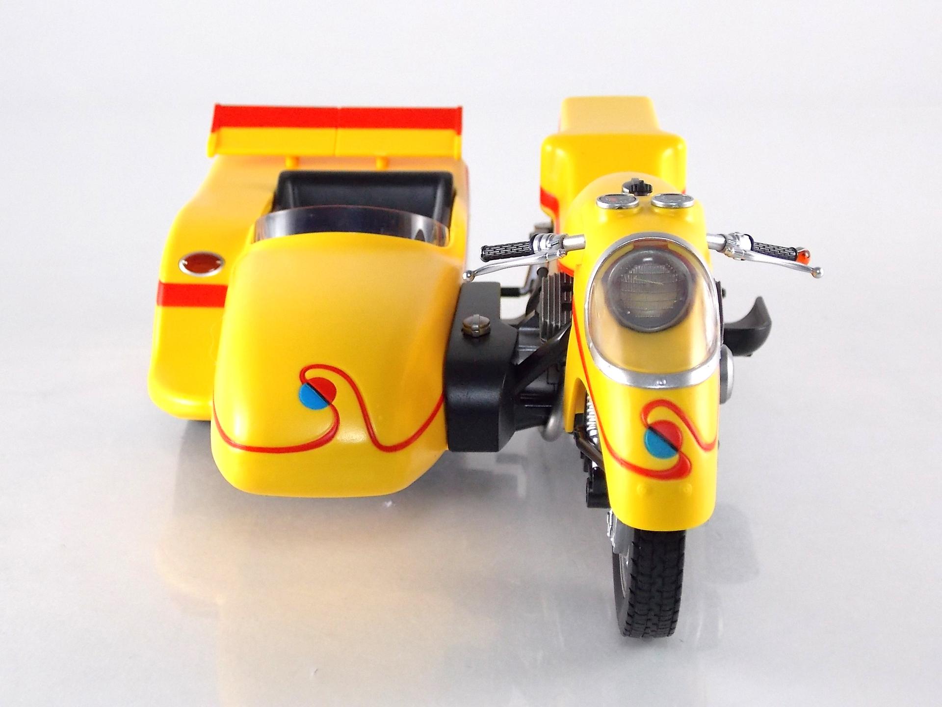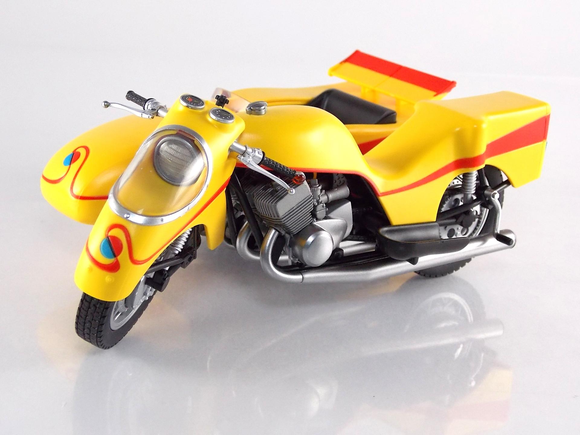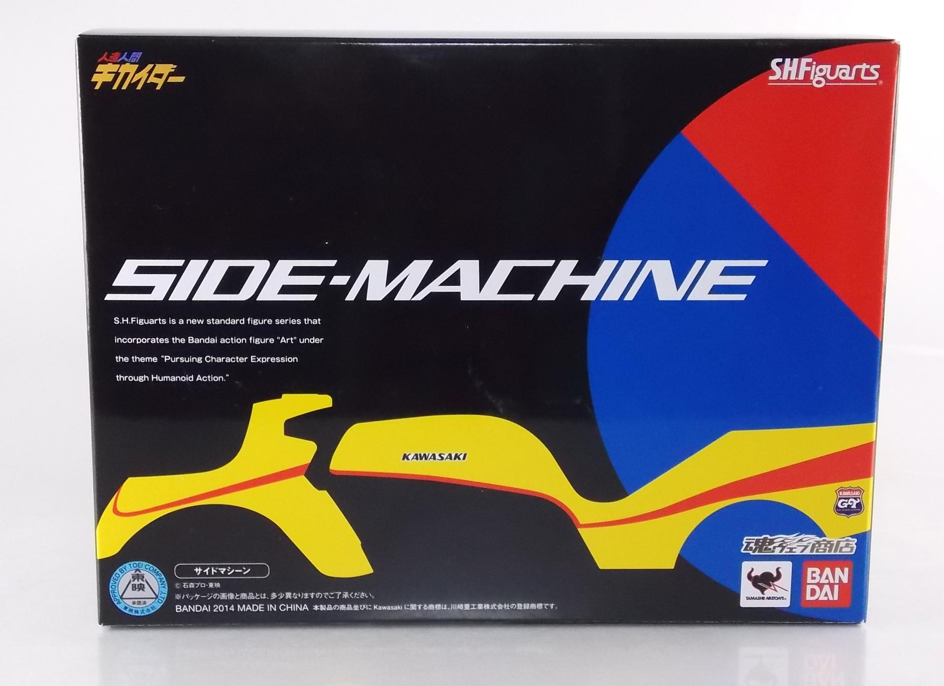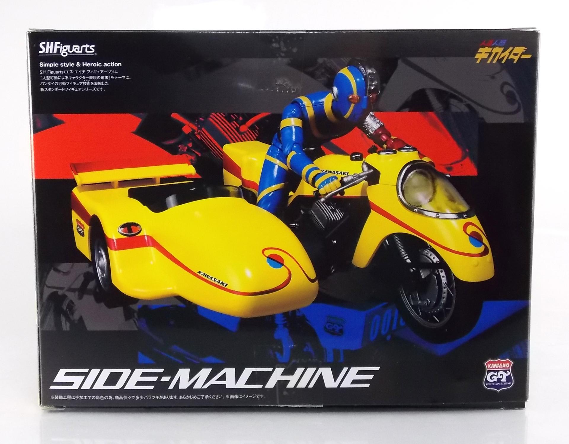 Packaging Continuing the trend set by S.H. Figuarts Kikaider & Hakaider, Side Machine likewise features an excellent minimalistic type of box art. It's incredible how this such simply executed artwork has worked for the Kikader line so far, I'm sure the upcoming White Crow & Kikaider 01 will also carry this style forward. I think at this point though Side Machine is my favorite of the current releases. And of course the box is much larger than the other 2, mostly because Side Machine is a massive bike, though Kikaider & Hakaider do have rather tiny boxes as far as Figuarts go. Main Figure Straight out of the box S.H. Figuarts Side Machine is ready to go, no assembly required. And as with vehicles released previously in the S.H. Figuarts line, Side Machine is gorgeous. I think at this point Side Machine is hand's down my favorite SHF bike ever. Kamen Rider bikes have been where it's at for so long now, but Side Machine just looks incredible. It's a complete breath of fresh air. The detailing is absolutely out of the park. For a toy based on a vehicle from 1972 this thing looks even more technologically superior than most rider machines do. Frankly the Figurat looks better than the bike used on set. The engine detailing is some of my favorite in the line, but where Side machine really looks sharp is actually on the handlebars. The gauges to be specific. Though they're decals and not paint apps, their quality reminds me very much of Kamen Rider Gaim Orange Arms which uses decals to great effect for small details. Overall the sculpt is just so sharp and accurate though. My one complaint might be that it's a bit hard to get Kikaider into a riding pose on Side machine. Kikaider has some range of motion issues that can make it a bit difficult, but fiddle with him enough and you'll find a position to settle on. I'd level the same nitpick at the sidecar only because certain figures with wider hips or skirt armor may not be able to fit into it. Kikaider himself has decent trouble fitting into the side car. By the way before the question's asked the side car is not removable, nor really does it need to be. Accessories Short and sweet, Side Machine includes only 2 things: 2 - replacement handlebars. Like almost all rider bikes that have come before it, 2 additional handlebars identical to those already attached are included. 1 - set of licensed Kawasaki decals! This is perhaps the greatest accessory you could ever hope for with this release. This is of course relevant because the Side Machine, and therefore the actual prop used on the set, was based on a Kawasaki GT 500 Mach III! These licensed emblems allow you to give this machine that real world flare if you so choose. I truly did not expect a bonus like this. I'm not likely to use them, but their inclusion is top notch. Final Thoughts Based on the merits of just the figure itself, S.H. Figuarts Side Machine may seem like an easy pass if you aren't a Kikaider collector like myself. However if you are, it is a MUST own. A gorgeously detailed vehicle, Side Machine is easily one of the best if not the best bike in the S.H. Figuarts line. More than any other released so far I feel it really lives up to it's real world counterpart. We'll be back in a next month with a Hakaider vehicle gallery, S.H. Figuarts White Crow!