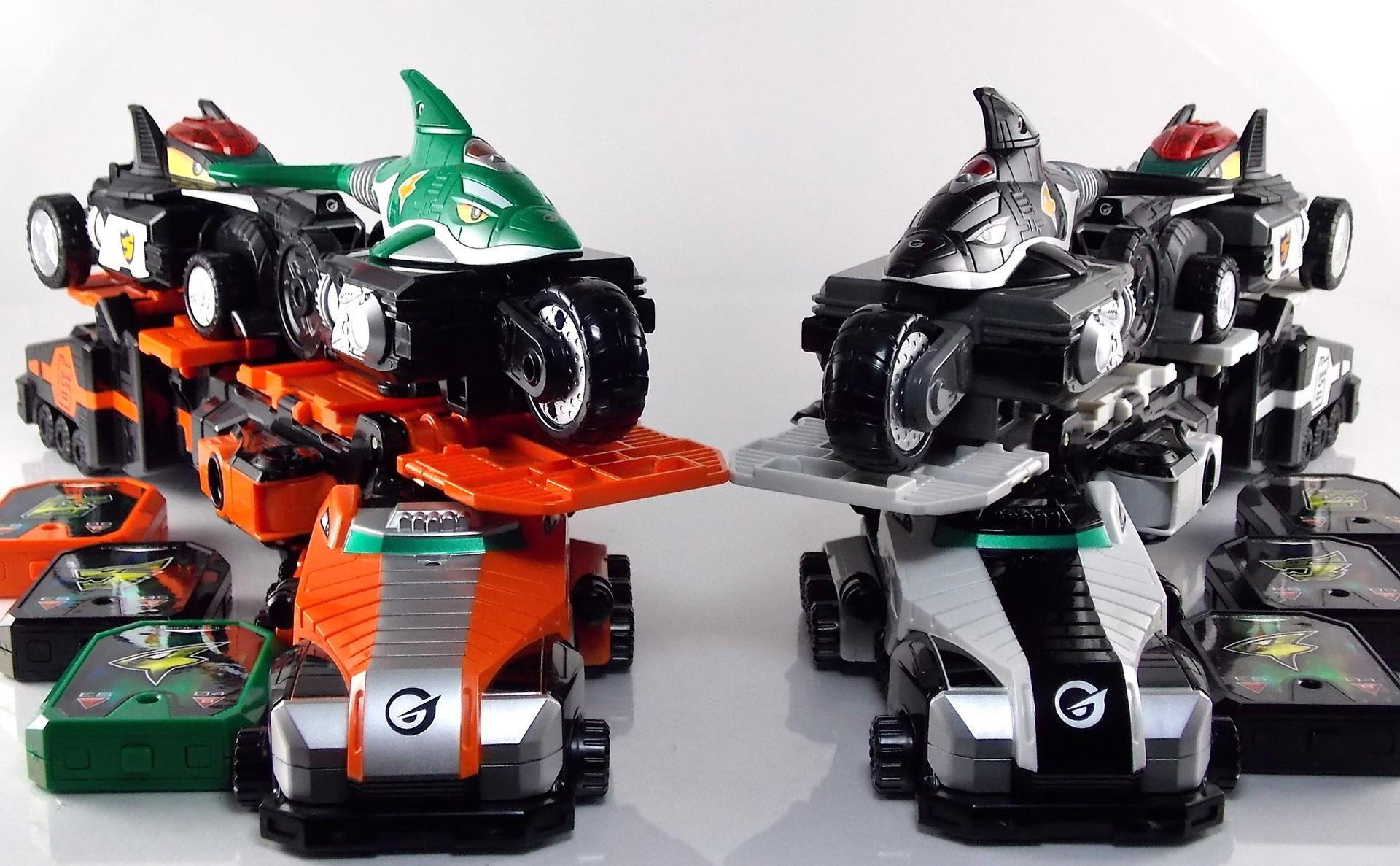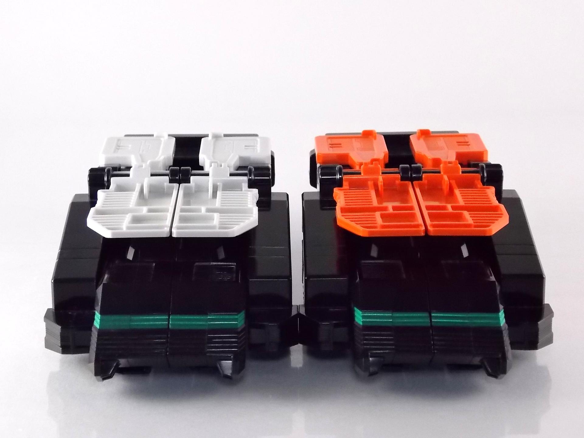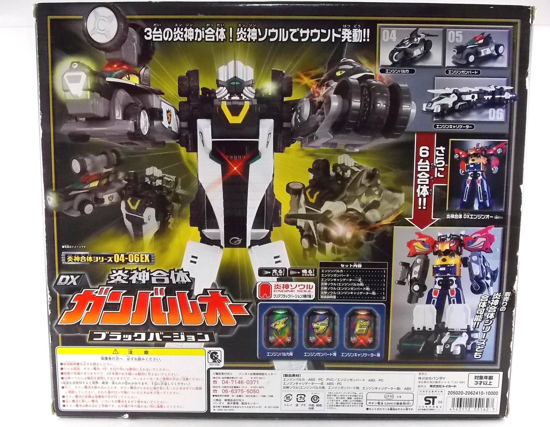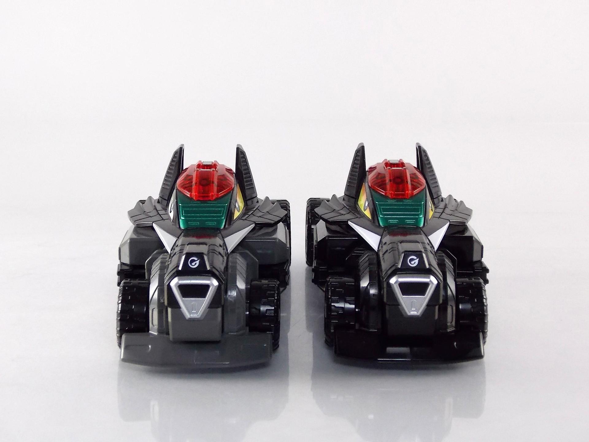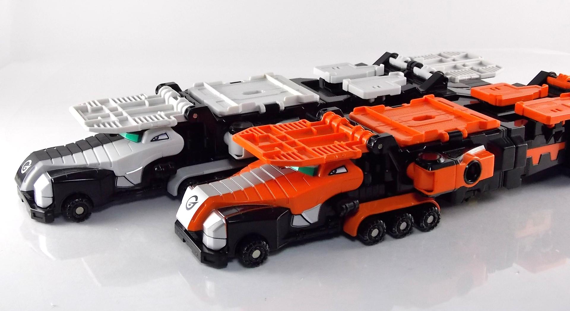 TokuNation is proud to present a long long overdue gallery. Rounding out our COMPLETE series of Engine Sentai Go-Onger DX mecha at last, we bring to you the DX Police Deco Gunbir-Oh! You may recall last year that for the entire month of July we took a look back at the entire Go-Onger toyline and posted galleries for each set and their various combinations. The elusive Toy Dreams Project Police Deco Gunbir-Oh was the final piece of the puzzle I'd been unable to attain until very very recently. Thankfully though I can finally share a full gallery of this wonderful set with the community! It should be noted that as a Toy Dreams Project release this is an entirely toy exclusive coloration. It's solely unique to this toy and has no basis in any show related material. Like basically all Toy Dreams Project releases. Packaging As a special release, Police Gunbir-Oh differs from the standard DX Gunbiroh in that it was sold as a complete 3-piece boxed set. The components of Gunbir Oh were originally sold in 3 individual boxes. As a limited Toy Dreams Project release it's only natural that these figures would be boxed together for sale. The box obviously has a bit more flare to it thanks to it featuring this new deco of Gunbir-Oh as well. It even advertises the altered G6 combination you can make with Engine Oh which is impressive. Birca DX Birca was originally in a mostly bright green color scheme with black for accents. For Police Deco Birca black has flipped from his base to replace all the green, while the base retains a flat gray color. The eyes have also been changed from bright yellow to white with blue pupils. The silver detailing and #4 emblem, as well as all 3 tires are largely unchanged. The Birca Engine Soul has also been changed to an opaque black plastic with a more "sparkly" foil like label on it. Gunpherd The least changed of the 3, Police Deco Gunpherd is only distinguishable from the original because of the gray used for his base. Otherwise it's nearly identical to the original DX Gunpherd. It's kind of understandable though as Gunpherd is already a police car and had the appropriate colors to begin with. It's a similar situation to the Gaohunter Blue Moon release with the mostly unchanged Gao Wolf & Hammerhead. The Gunpherd Engine Soul has also been changed to an opaque black plastic with a more "sparkly" foil like label on it. Carrygator DX Carrygator was a bright orange car carrying alligator robot. Now he's a sleek black & white Police Deco car carrying robot? Yeah alligator car carriers are still a little out there no matter what color they're in. By far this one looks the best of the trio. And oddly it has the easiest color swap. All of Carrygator's orange plastics and paint apps have been swapped for white. And since the basic figure is black with green accents already, boom you have a police gator that looks pretty damn snazzy. It really outshines the standard Carrygator. The Carrygator Engine Soul has also been changed to an opaque black plastic with a more "sparkly" foil like label on it. Gunbir-Oh & Combinations When all combined Police Deco Gunbir-Oh actually succeeds in being a far more cohesive looking robo than the standard version. These colors lend themselves very well to the individual vehicles as is but the combined form is incredibly appealing. The combined forms with the various other Engines benefit from this color change to an extent as well. The one form I was most excited to create with this set involved the DX Engine Dai Shogun. Though it isn't really an official combo nothing else would be either involving Police Gunbir-Oh either. Either way I think it's befitting that 2 repaints of Go-Onger mecha that aren't normally supposed to be combined with anthing, look pretty damn snazy together. It's by far my favorite thing to do with this set. But you can also still create the Engine Oh G6, G9. & G12 with this set as there are no mold differences with it, only color. And while the G6 combo looks fine, and perhaps G9, by the time you get to 12 all of the Police Deco parts are on the feet and don't mesh with anything else sadly. Final Thoughts At the end of the day DX Police Deco Gunbir-Oh is by far a superfluous thing to own. It's gorgeous in these colors don't get me wrong, I'm thrilled personally to have it. But you have to be a huge Go-Onger fan to seek this one out as it's a toy exclusive coloration. Worse yet is that in most cases it's prohibitively expensive, ranging as high as $150-200 on the aftermarket. I love this thing, more than regular Gunbir-Oh by far, but it's definitely for the ultimate Go-Onger collectors.