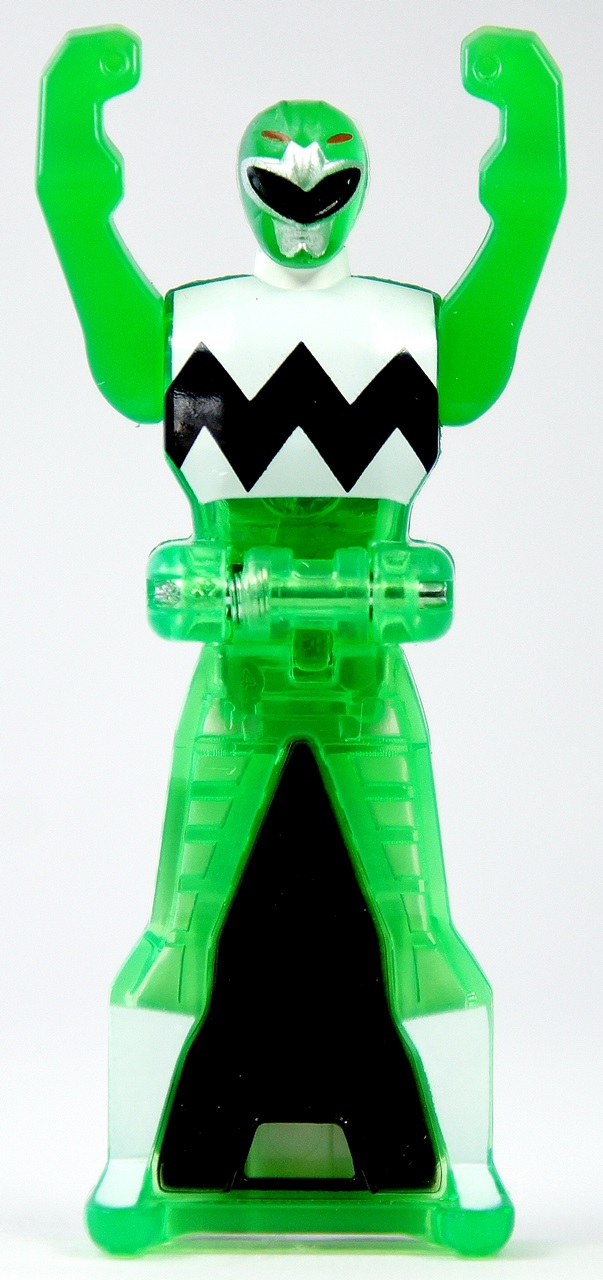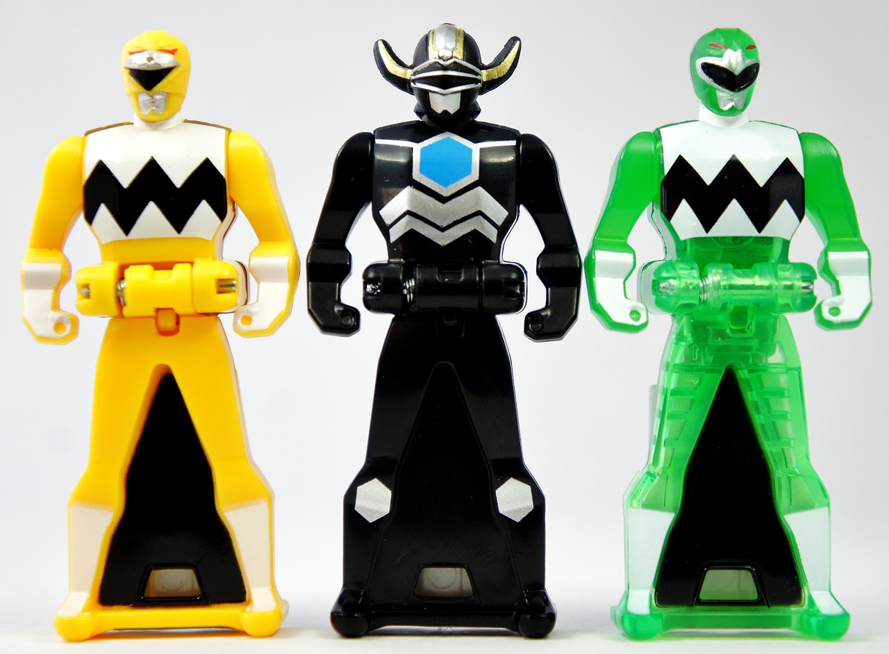 This key pack features previously unreleased Ranger Keys from the Power Rangers Lost Galaxy team - specifically the Yellow Ranger and the Magna Defender. It also comes with a translucent Green Ranger. As seems the norm, there is no Lost Galaxy Pink Ranger in this set, meaning instead that you're getting a second version of the Green Ranger. There is no word on whether or not the Lost Galaxy Pink Ranger, who holds a very special place in the hearts of the fans because of the character's rich story during the Lost Galaxy season, will ever be released. The number one reason I wanted this pack in the first place is because of the inclusion of the Magna Defender key, which was one of my favorite characters from Power Rangers Lost Galaxy. I'm pleased to report that the key doesn't disappoint. Featuring a slightly larger head than the other Ranger Keys, and with his horns actually sticking out a bit more than you've seen on any other Ranger Key, I really believe that he alone is the stand out in this group of Ranger Keys. While the translucent Green Ranger looks kind of cool, it's kind of boring ... plus you've probably already got a translucent Mighty Morphin Green Ranger, and the only difference here is the head, stickers, and lack of sparkles. It just doesn't grab you like the translucent Operation Overdrive Red Ranger Key did from the previous pack. And the Yellow Ranger? She's just a mess ... she's incredibly unstable in terms of a key, the head is another case of "...oh GOD!", and the plastic, like the other yellow keys, feels unfinished on the head and the back. Now, whether this is part of the fact that these keys may not be final product versions is unknown - let's hope they get some polish by the time they hit stores. Other than that ... they're Ranger Keys! There's not much to add to them. For those curious, the keys, when used with the Power Rangers Super Megaforce Legendary Morpher, say the following phrases: Magna Defender: "Lost Galaxy!" (a second turn does the classic communicator beep) Yellow Ranger: "Lost Galaxy!" (a second turn does the classic communicator beep) Green Ranger: "Lost Galaxy!" (a second turn does the classic communicator beep) THE GOOD!