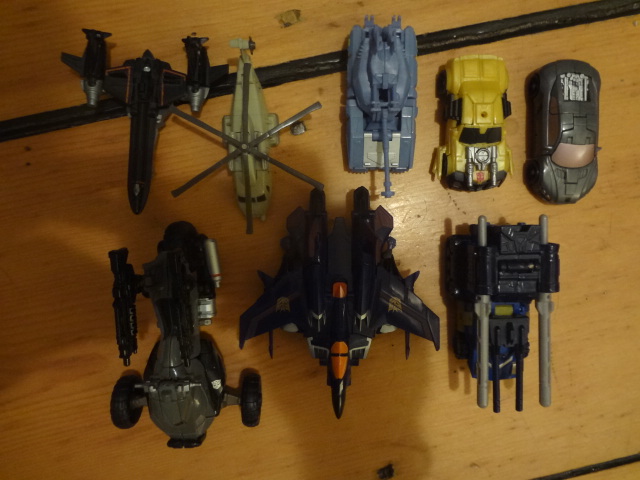 So I've decided to sell off some of my TF collection, among other things. All of these have been displayed, lightly played with, and are usually complete with instructions and the like. Some have their packaging, but none are sealed. -I only ship to the 48 states that are not Alaska and Hawaii -PayPal only. -Prices do NOT include shipping. -Feel free to PM me with any further questions. Transformers TFSS 2.0 Figures All figures were used only for display, so they're in like new condition. These were made-to-order, so they aren't the easiest thing to get on the aftermarket. Barricade SOLD Rewind and Eject - $65 Opened Transformers - $25 for the lot These are figures that are used, but I still have the packaging for. Can be shipped loose. Soundwave WILL be shipped loose, due to the bubble being in worse condition than I remembered. Beast Hunters Shockwave - SOLD Generations Blitzwing - $13 Megatron (Powerizer) - SOLD GDO Swerve - $10 Optimus Prime (Powerizer) - SOLD Beast Hunters Soundwave - $8 (shipped loose because of packaging condition) Loose Transformers All are complete unless said otherwise, and used to varying degrees. PM if you want specifics. First Edition Bumblebee - $10 Universe Tankor - $10 Universe Galvatron - $12 ROTF Soundwave - $8 ROTF Voyager Rachet - $10 ROTF Mixmaster - SOLD TFA dlx Optimus SOLD TFA Snarl (blue paint removed from eyes to make light piping work) - $8 TFA Prowl (very loose waist, could be tightened) - $8 HFTD red Rampage SOLD DOTM dlx Ratchet SOLD Animated Lockdown (tab between arms is broken, but it affects neither mode) - $10 Generations Blurr - SOLD '07 Movie Voyager Starscream (stress mark on wing) - $13 Universe Bruticus (very obscure, great alternative to Cybertron Scourge) - $15 PCC Crankcase w/ Destrons - $15 Custom Cannon Bunblebee (Base figure is from TRU 3-pack. Variations consist of desert-themed battle damage and a new head w/ mask deployed. I modded it into a convertible, which considerably slims down the backpack.) - $10 Generations Scourge (displayed only, like new) - $15 FoC Jazz (displayed only, like new) -$5 TFA Jetfire/Jetstorm - SOLD Megatron with Blastwave trailer (broken hand, otherwise complete) - $15 TFP Ultra Magnus (Cyberverse, weapon peg from other figure broken off in arm port) - $8 HA Backfire (complete, but driver not pictured) - $13 Cybertron Brushguard (key and missile Inc) - $5 Cybertron Scattorshot (loose elbows, complete) - $5 RoTF Tankor - $7 BH legion Bumblebee (like new) - $4 Small Figure Lot - $20 These are all figures that are heavily played with, so lots of loose joints and a couple broken tabs. Included are: -activators Grimlock (auto-transfom works fine, loose joints everywhere) -activators Thunder cracker (auto-transform works fine, broken tab on leg, loose tailfins and neck) -Midnighter XR4 (generally tight joints, but there's a broken tab on the leg) -RotF legends Jetfire (loose shoulders) -RotF legends Sideways (loose knees) -movie legends Desert Blackout (loose legs) -Spychanger Hoist (OK joints, but no gun) Hero Factory - $20 for the lot All are complete and in great condition with canisters/bags included. Rocka (Breakout ver.) - $10 Surge 2.0 - $6 Stormer 2.0 (no manual, can be downloaded off lego.com) - $6