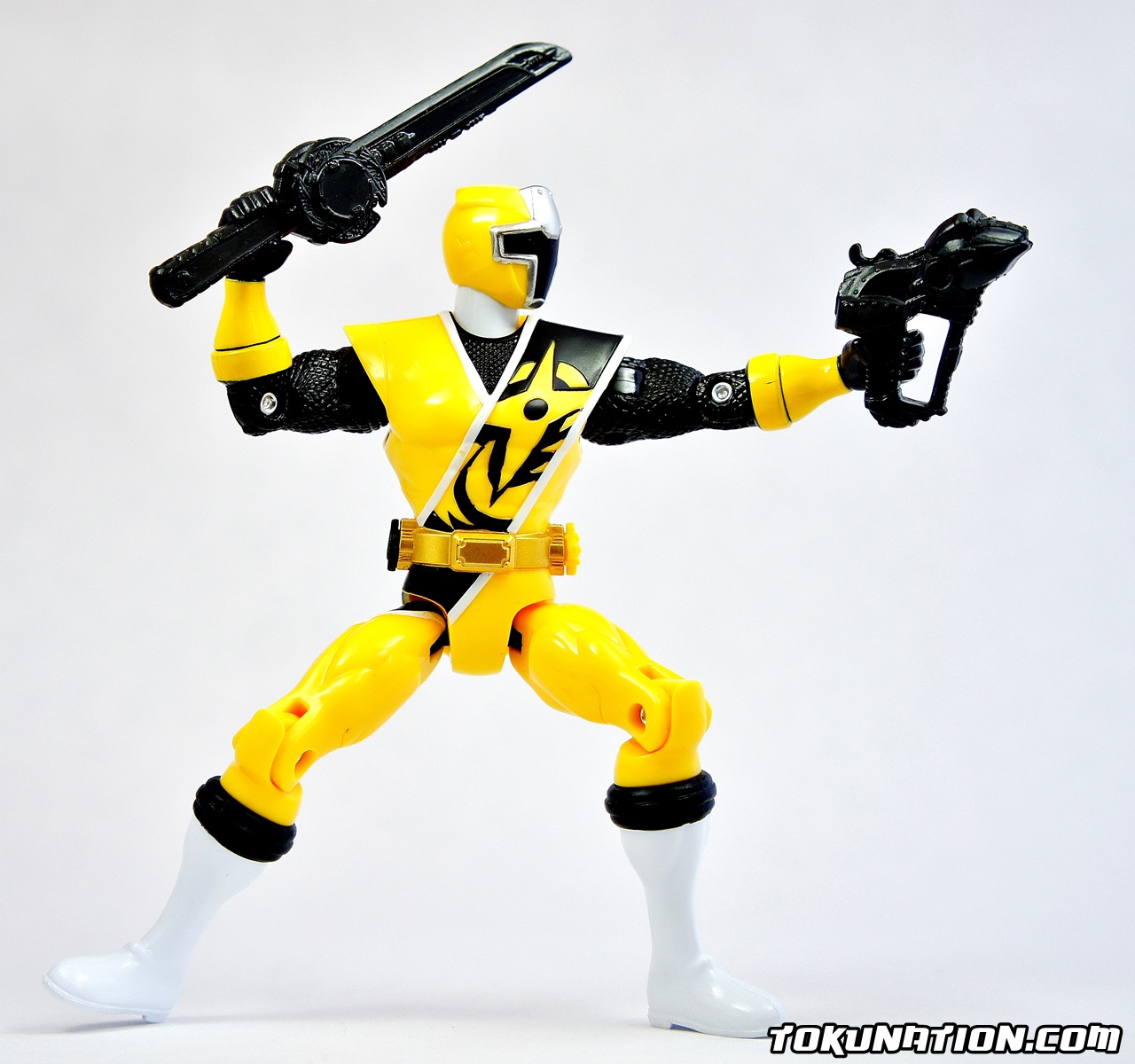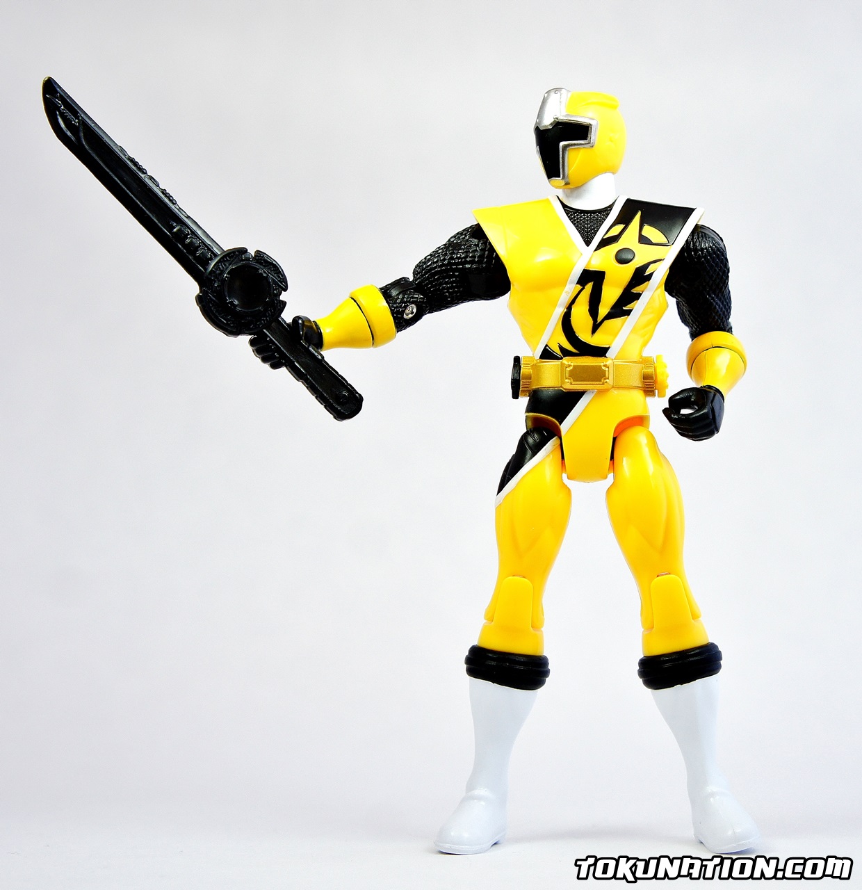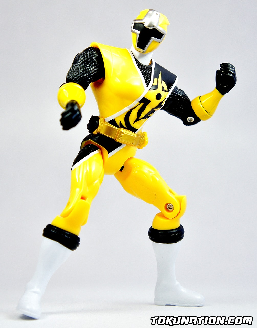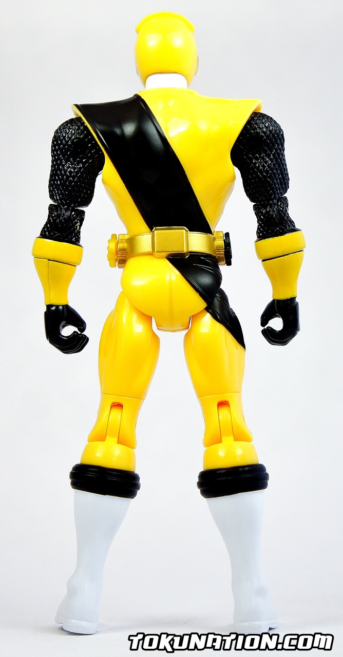 This review will be short as we are actually running out of things to talk about in terms of the actual figure as it is the same as the other two releases, just with a new head, a new shuriken, and yellow paint. The Figure The standard Bandai of America 15 points of articulation. The only difference aside from the paint is a different head sculpt (see picture) and a different shuriken on the belt (see picture). I have to admit though - the yellow paint on Ki Ninger gives him a much more "pop" feel to him. He's my favorite of the group because the yellow and black color scheme meshes much better than the red and black or the blue and black. The Accessories You get the usual soft, unpainted black plastic Ninja Ichibantou, Gamagama Gun, and the Karakuri Hengen is in its claw form. Much like with the release of Aka Ninger and Ao Ninger, the soft plastic and strange handle makes holding the Karakuri Hengen awkward. It should be noted that the hands on these figures are made of softer plastic than the rest of the figure. My thought is that it allows the fingers to be moved in order to hold the weapons. Unfortunately it also means that they will be more likely to move around or fall out entirely on their own - you can only have these figures hold the Ninja Ichibantou in two ways because having the hilt be sideways will allow it to fall out of the figure's grasp. The Final Verdict As stated before - if you want a head start on what could very well be Power Rangers 2017, by all means pick these up. If you prefer a more show-accurate version, I'd say hold on and hope that we get some S.H. Figuarts representations of these characters in the future. Otherwise, the vinyl figures are also a good option. If you're in to customizing figures, the unpainted accessories should be a lot of fun for you. For what equates out to about $10 a figure you can easily justify reasons to buy them. But if you're on the fence with these figures, and you're a typical collector of Bandai Japan products, you will be sorely disappointed by this offering of the Ninnin Action line.