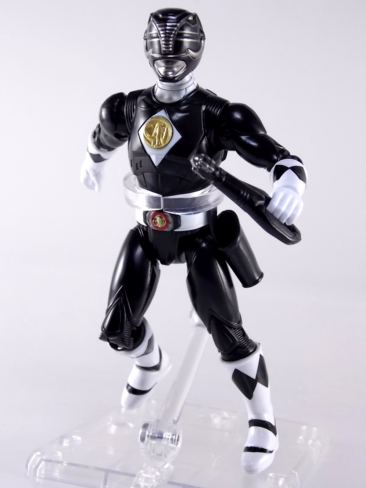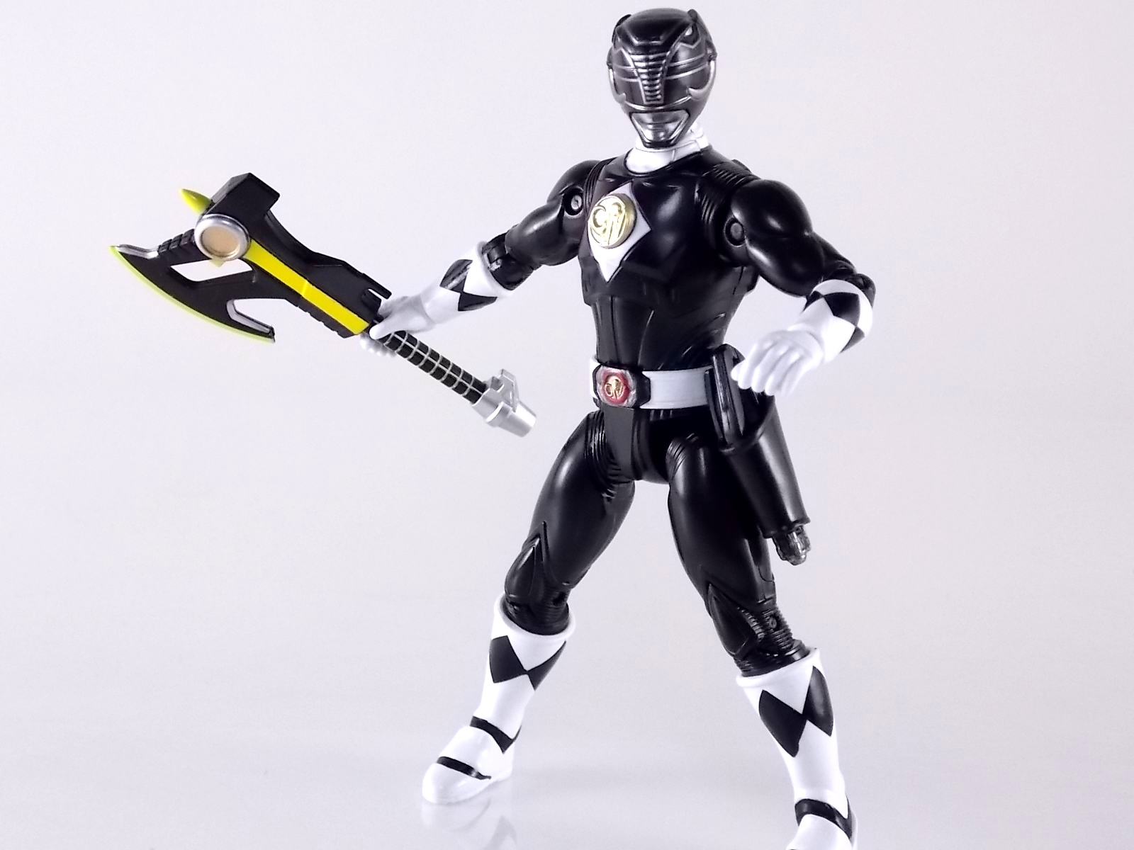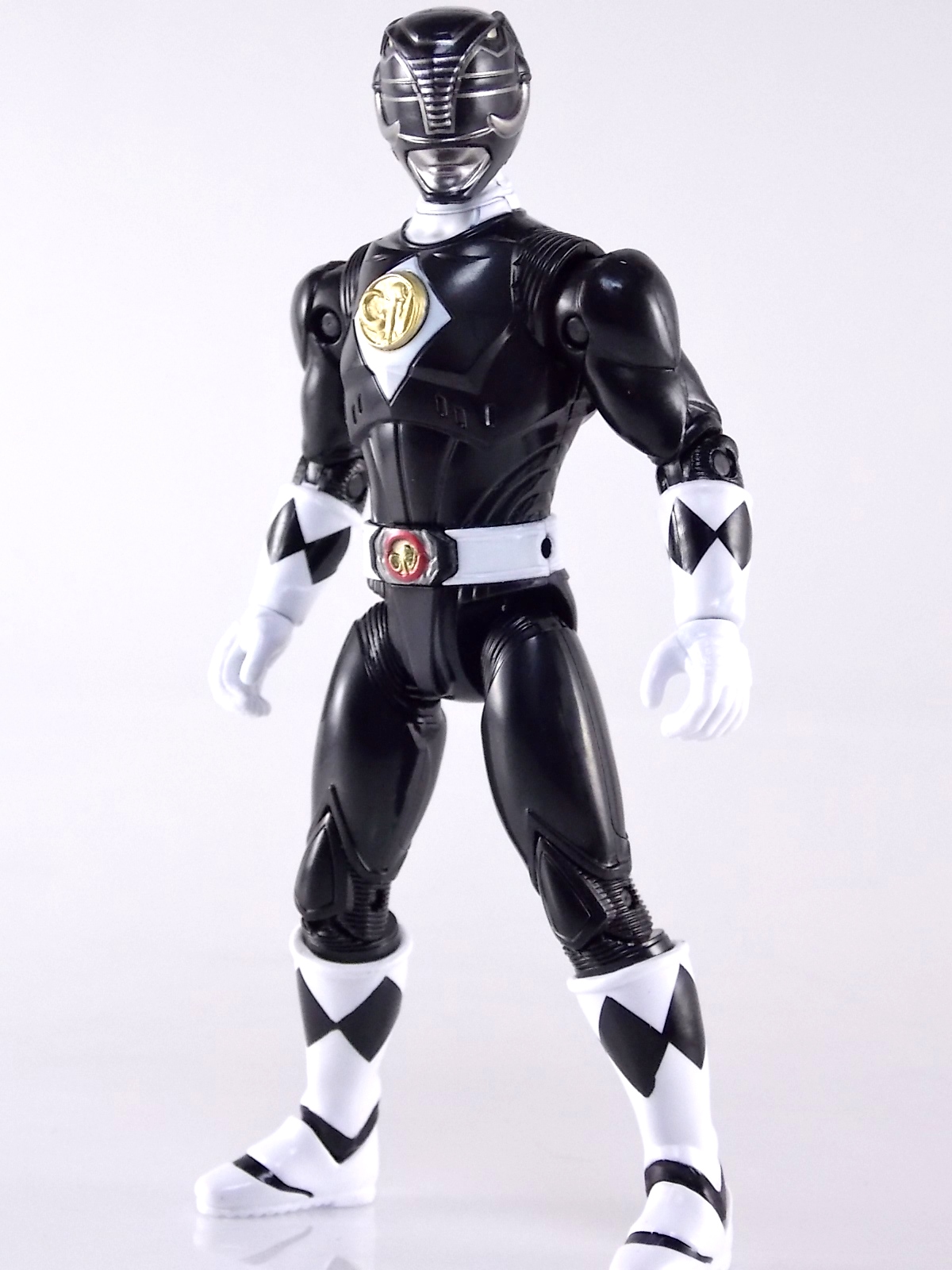TokuNation is continuing it's trip down memory lane with 1995 film Mighty Morphin Power Rangers: The Movie! And the second figure we're in this series of galleries is the 5" Legacy Movie Black Ranger! Packaging If you haven't picked up a Power Rangers Legacy figure by now, the Movie Black Ranger follows the same basic formula. Packaged in a triangular box Bandai has done the best job they could at evoking the look of the vintage toys from the original movie toyline. Just as with the Legacy Mighty Morphin TV themed figures this box perfectly replicates the look of the movie toys, right down to the more bare bones black & white colors. It may look a little more drab but it's still a great package. Included on the front of the box is a call out to the 1995 film and to further that connection on the back is a brief description of the films plot. Even going so far as to mention Ivan Ooze & Dulcea. A brief bio about the Black Ranger (Adam) is also given. Oddly the bio only makes mention of his Frog Ninjazord, when technically speaking these figures are based on the rangers pre-ninja based suits from early into the film. The rangers received the ninja zords/powers after losing their original powers. Though the Mastodon and other dino zords were never seen in the film, Adam calls out "Mastodon!" to morph in the initial fight, and the Mastodon coin is still present both on his belt and chest on this figure. An oddity but not necessarily a detriment depending on how picky you are. Figure As far as 5" figures go the Movie Black Ranger offers a bit more than the standard fare. To start you should know that this line of 5" Movie figures is literally the first time ever that the actual movie designs have been put into figure form. The original toys were mere metallic repaints of the TV show toys in movie packaging. But this figure is the real deal. From a sculpt and detail perspective alone this figure is leagues beyond the generally simple toys of the normal Power Rangers retail lines. Where those 5" figures feel flat and artificially roided out, the movie rangers are covered in armored technological detailing that really goes a long way to replicating the look of the actual costume. Since these suits were more armor than spandex they had a lot of detail to them, so I'm pleased that the toy has managed to capture that. Though the finer details are pretty bad. The morpher/belt area and chest emblem have incredibly soft details. They just aren't properly sculpted. and look like they're made of butter or something. The head is also a little bit off to me, a little fuzzy and undefined. Sadly the same can be said for the gray paint apps on the head. On the articulation front the figure has much of what we've come to expect. Hips that swing forward/back & side to side. Knees & shin swivels with surprisingly decent rocker ankles. No waist joint sadly. The arms however are as bad as I've come to expect generally. Simple shoulders that move forward & back and can't properly stretch out to allow the arm a full range of up/down movement. This is mostly due to the sculpted in shoulder pads, but it keeps the arms from getting into dynamic poses. Elbow articulation is limited to a 90 degree angle only, and the wrists while on ball joints don't have much clearance to make use of them, they also pop off. A lot. The arms are kind of frustrating to me though as a whole. A simple bicep swivel could have made them so much more dynamic. The head is on a fairly decent ball joint that allows for a good bit of tilting in all the primary directions too. I honestly didn't expect it to be as decent as it is. If only it had a little more clearance in the back. Also a peg hole is built into the left side of the belt area to accommodate the included accessories, or a similar one from another 5" Ranger figure. While I don't own the 5" Legacy MMPR TV Black Ranger to compare this figure too, I did have the S.H. Figuarts Mammoth Ranger on hand for a general comparison. Accessories 1 - holster. Used for the included weapon accessory 1 - Power Blaster/Blade Blaster. This is an odd one. While this item most certainly is in the film, in fact the 5 core rangers each have one holstered in the movie, none of them are ever used or seen outside the holster. Though the name Power Blaster has been given to the unused weapon, it's apparent that it's very much meant to be the film version of the TV shows Blade Blaster. The sculpt is a bit soft but whats worse is there are only minimal paint apps on the tip of the blade. Nothing elsr. Just a cheap piece of softly sculpted plastic. Sadly that's it. The Movie Black Ranger comes with nothing else at all. I really expected at least the Power Axe to be included as some sort of bonus to justify the supposed collector nature of this figure and it's price. While it may never have been seen in the film, the Blade/Power Blasters were never used either despite their appearance. And the weapon could easily have just been a repack form the Legacy 5" TV figure. As with the Movie Red Rangers' lack of an additional accessory I expected better. But in the case of this figure which comes with nothing else at all I'm truly disappointed. For the characters who didn't use special power ups in the film they should have included something, even a repacked weapon to make them worth while. Final Thoughts Like I said in the Movie Red Ranger review, I love that original movie. Terrible characters, plot, CG and all. The suit designs have never been properly put into toy form and that's what propelled my purchases here. While I already thought the Red Ranger was overpriced at $16.99, the Legacy 5" Movie Black Ranger is even more so. It's a nigh identical figure with one less accessory and an already lite accessory count but for the same price. Despite my general love for the Black Ranger it's a tough pill to swallow.